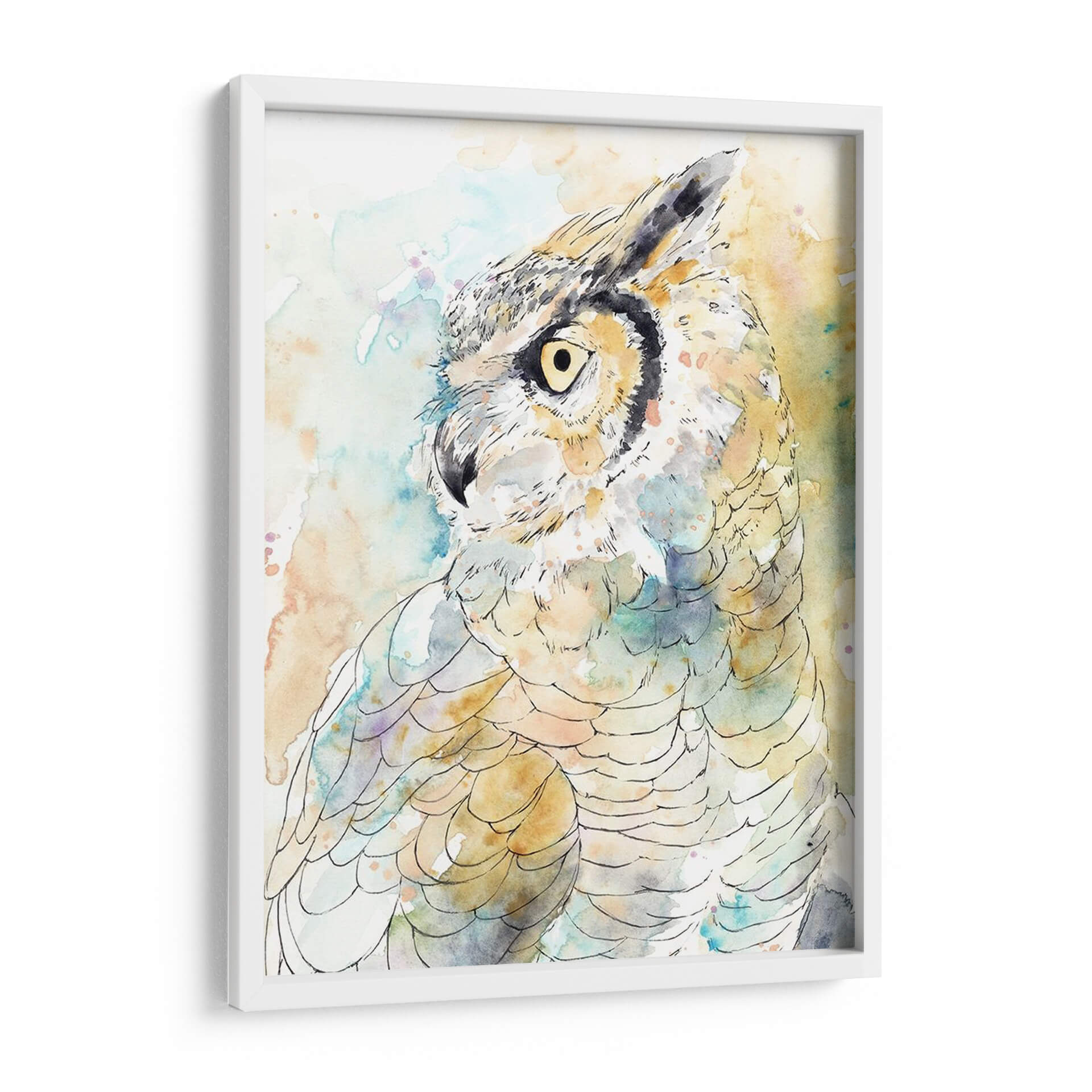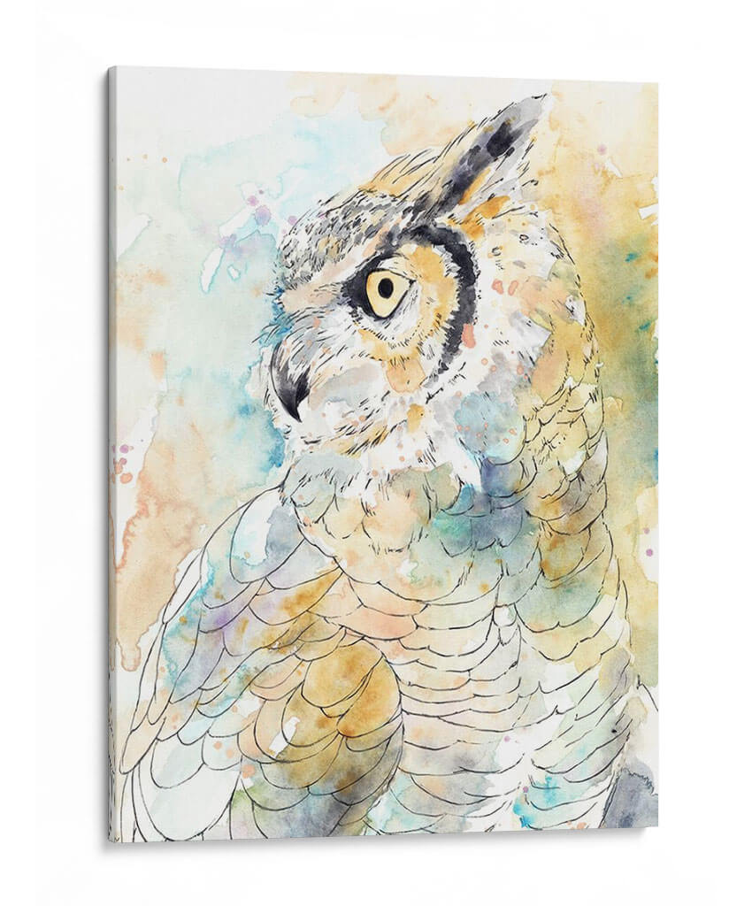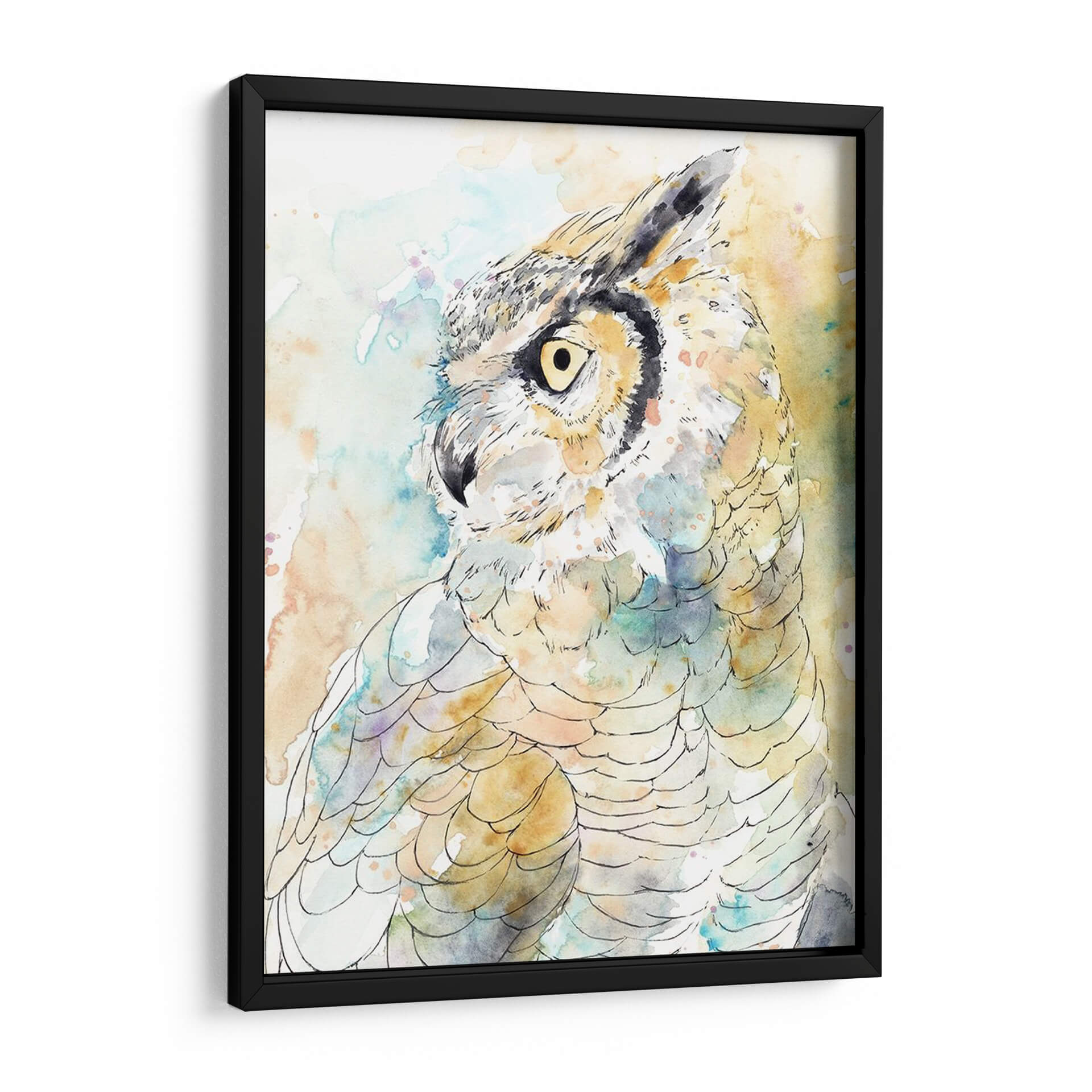 Sumérgete en la mirada penetrante de nuestro cuadro decorativo 'Búho Majestuoso I', una obra de arte inspirada en la acuarela que captura la esencia de estas enigmáticas criaturas nocturnas. El artista Jacob Green nos presenta un retrato detallado de un búho, con un enfoque en sus penetrantes ojos amarillos que parecen observar el mundo con sabiduría ancestral. La técnica de acuarela se manifiesta en manchas de color suaves y etéreas que fluyen en el fondo, creando una atmósfera onírica y serena. Los tonos cálidos de ocre y ámbar se entrelazan con toques de azul y verde pálido, aportando profundidad y vitalidad a la composición. Las líneas finas y definidas que delinean las plumas del búho contrastan con la fluidez del fondo, otorgando a la pieza un equilibrio visual cautivador. Este cuadro decorativo es ideal para añadir un toque de elegancia natural y misterio a cualquier espacio, ya sea una sala de estar, un estudio o un dormitorio. Su presencia evoca calma, observación y la belleza intrínseca del mundo natural, convirtiéndolo en una pieza central que invita a la contemplación y añade un carácter distintivo a tu decoración.