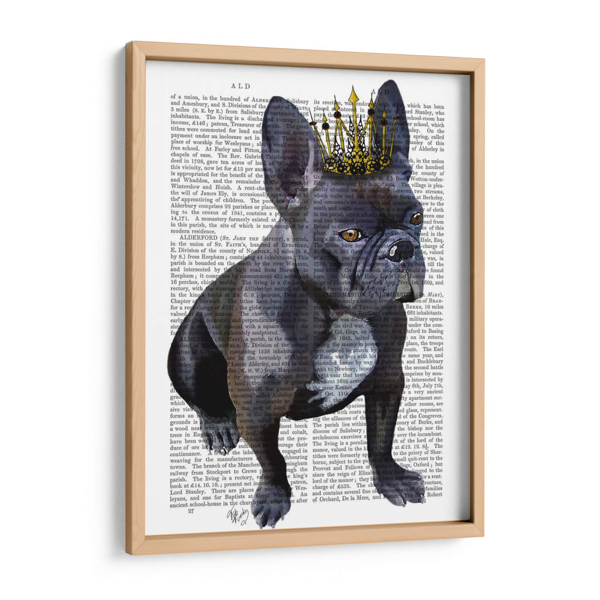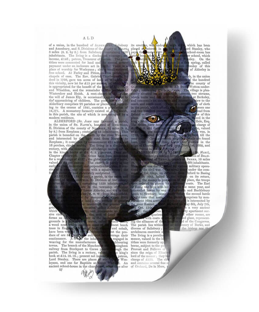 Este llamativo cuadro decorativo de un Bulldog Francés luciendo una corona dorada es una pieza única que combina arte contemporáneo con un toque de realeza y humor. La obra captura la personalidad juguetona y al mismo tiempo regia de la raza, superpuesta sobre un fondo de texto antiguo que añade una textura visual rica y un aire de historia. Los colores predominantes, el negro profundo del perro y los tonos dorados de la corona, crean un contraste audaz y sofisticado, mientras que el texto en sepia del fondo aporta calidez y un elemento de intriga. Es una pieza de arte ideal para los amantes de los perros, especialmente de los Bulldogs Franceses, y para aquellos que buscan añadir un elemento de carácter y originalidad a su decoración. Perfecto para una sala de estar moderna, una oficina en casa o incluso un dormitorio, este cuadro decorativo se convertirá sin duda en un punto de conversación. Su estilo distintivo lo hace adecuado para interiores que buscan un toque de excentricidad y buen gusto, integrándose armoniosamente en decoraciones contemporáneas, eclécticas o incluso de inspiración vintage.