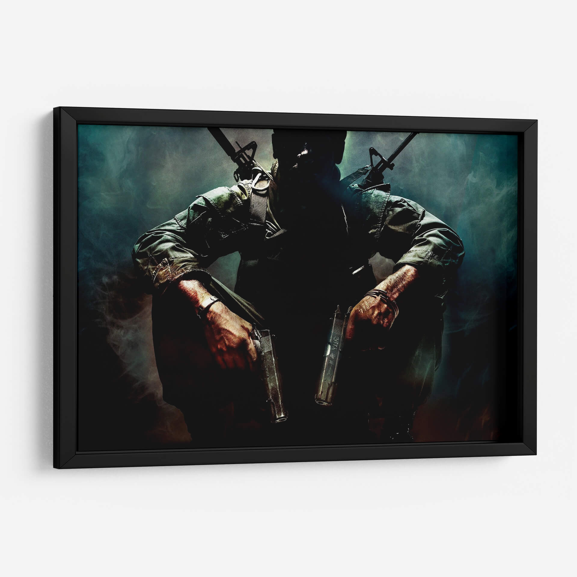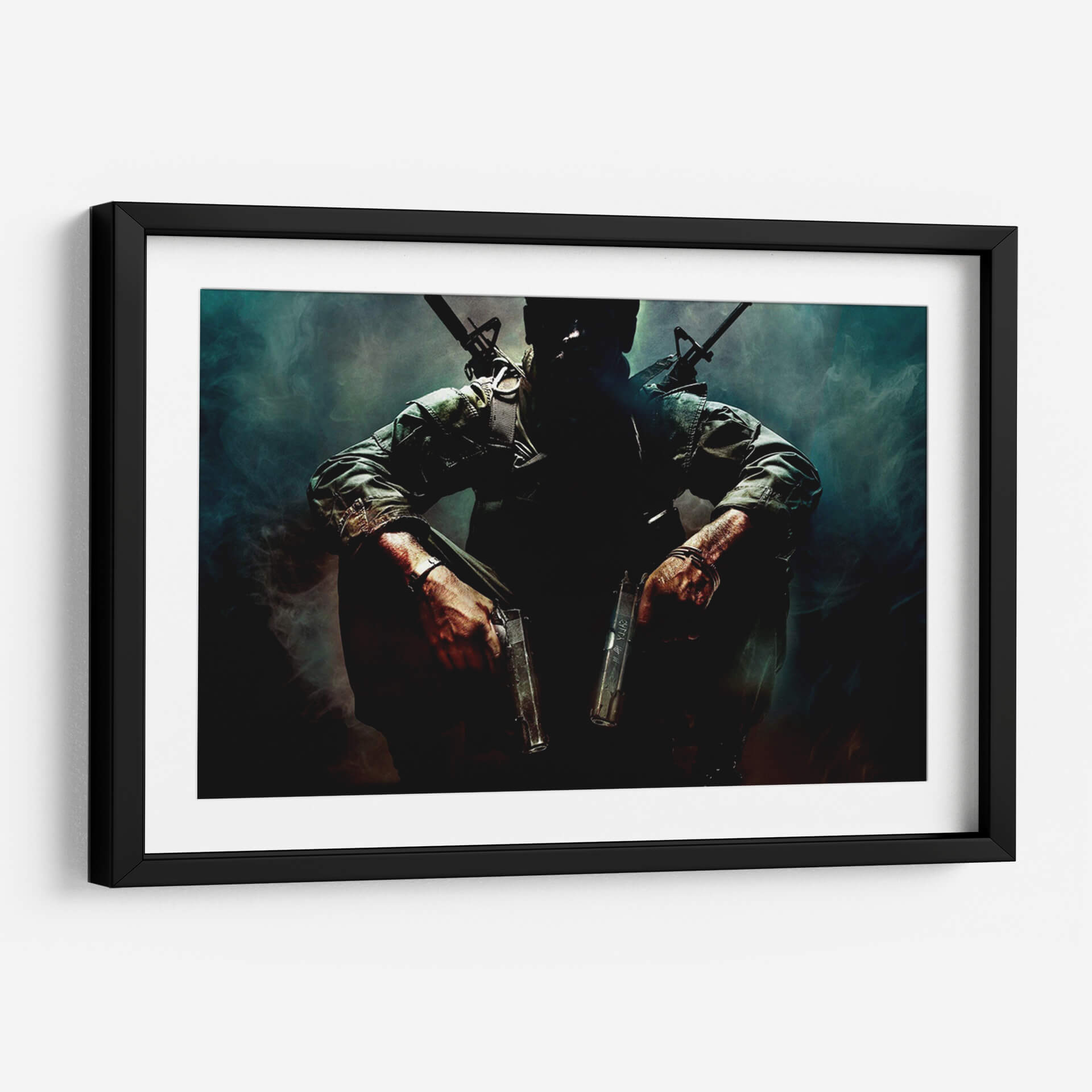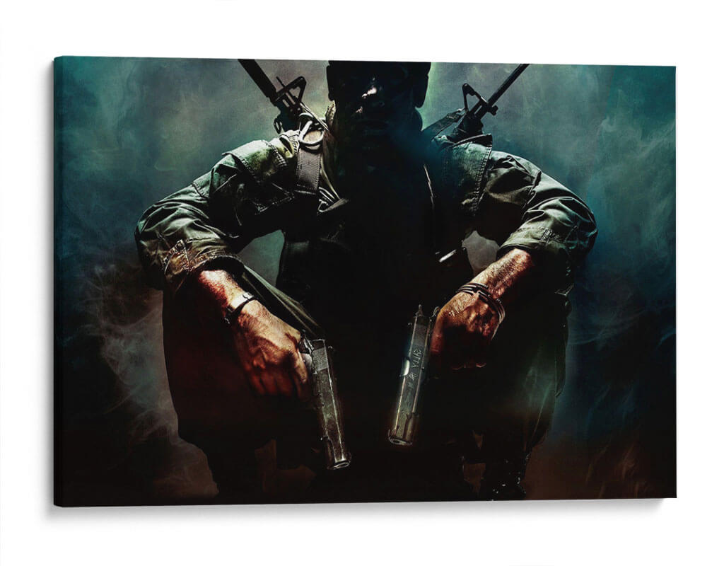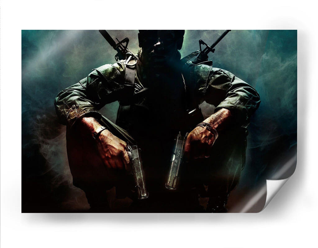 Sumérgete en la intensidad y el misterio con este impactante cuadro decorativo inspirado en el mundo de los videojuegos de acción. La obra presenta una figura solitaria, vestida con uniforme militar, empuñando dos pistolas en una pose desafiante. El uso dramático de luces y sombras crea una atmósfera de tensión y suspense, realzada por un fondo de humo o niebla en tonos oscuros y verdosos que envuelve la escena. Los detalles en el atuendo y las armas son nítidos, aportando un realismo crudo a la composición. Este cuadro decorativo es ideal para espacios masculinos o para aquellos que buscan añadir un toque de fuerza y carácter a su decoración, como una oficina, sala de juegos o un estudio. Su estilo evocador y su temática audaz lo convierten en una pieza de conversación, perfecta para aficionados a la acción y al arte contemporáneo con un giro narrativo. Transforma tu pared con esta representación gráfica de determinación y poder, añadiendo profundidad visual y un aire de intriga a cualquier ambiente moderno.