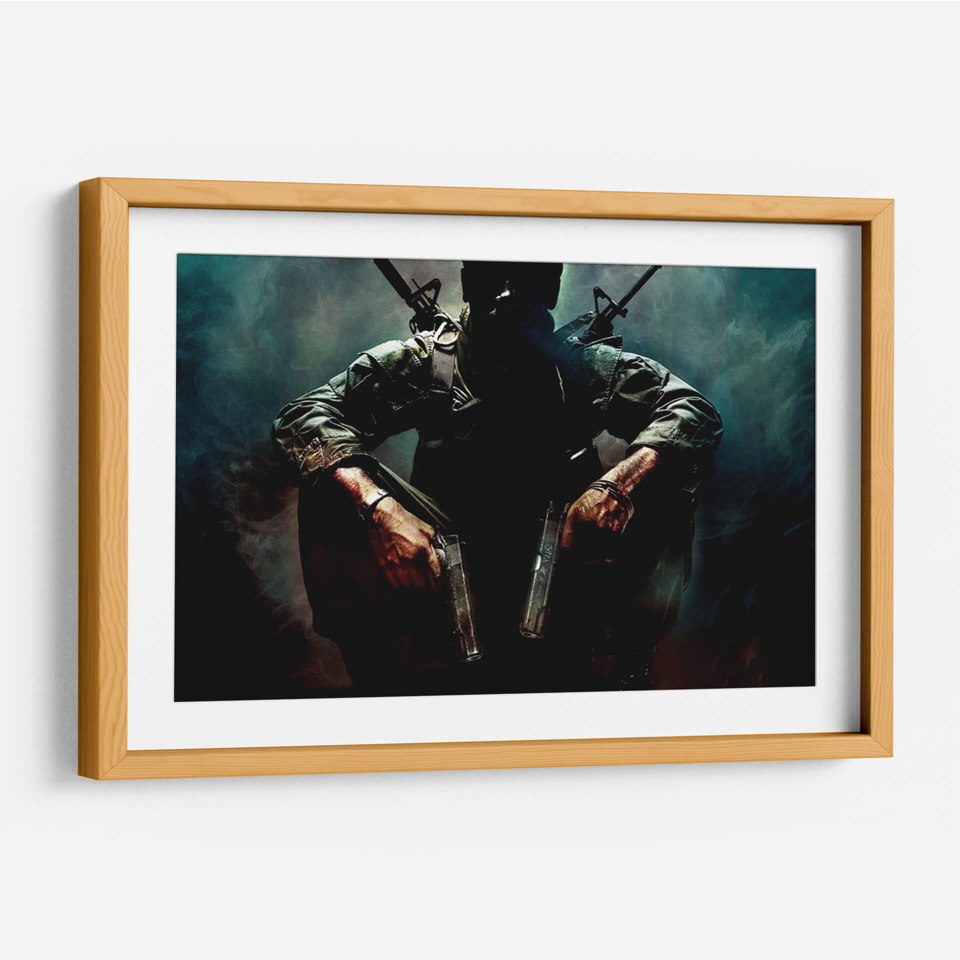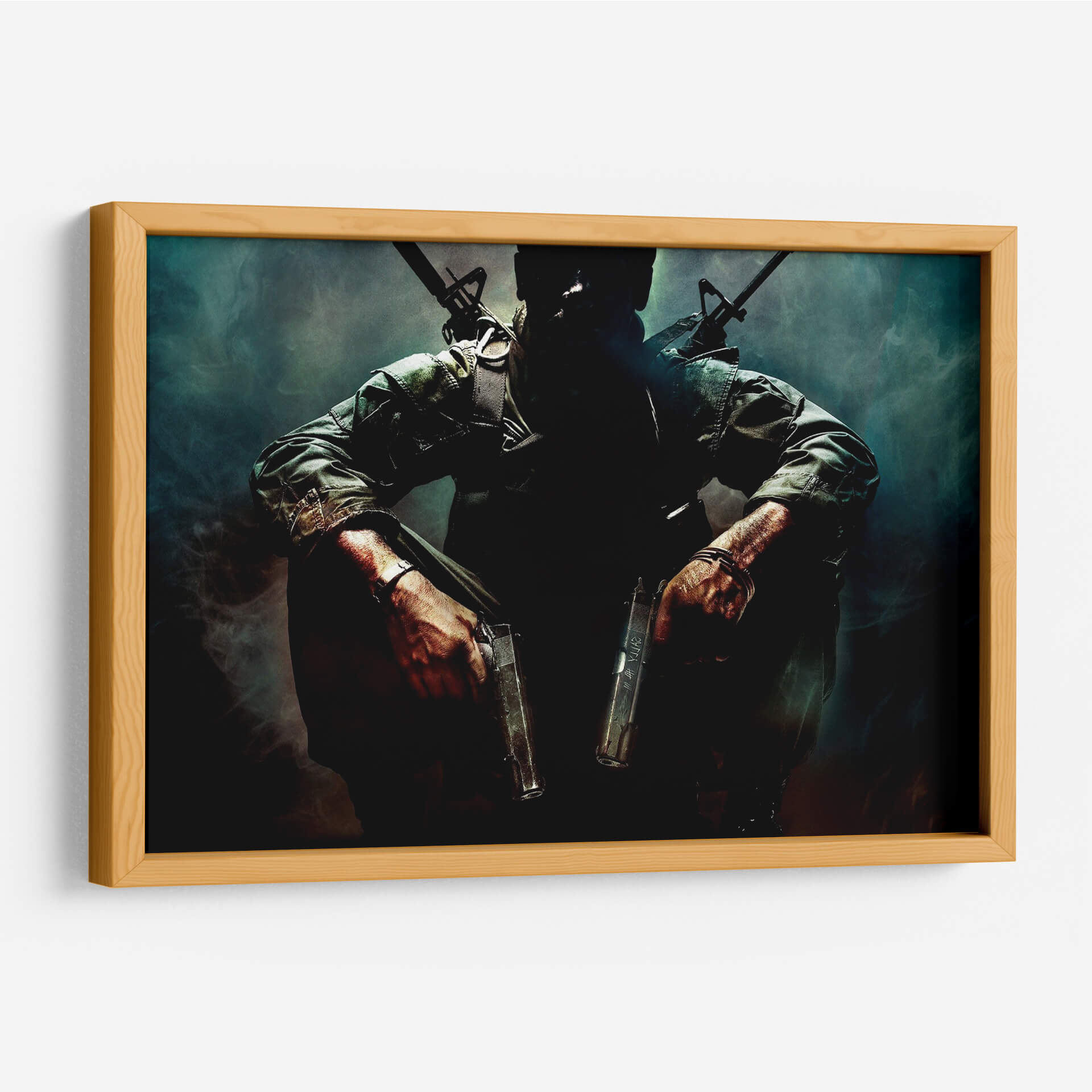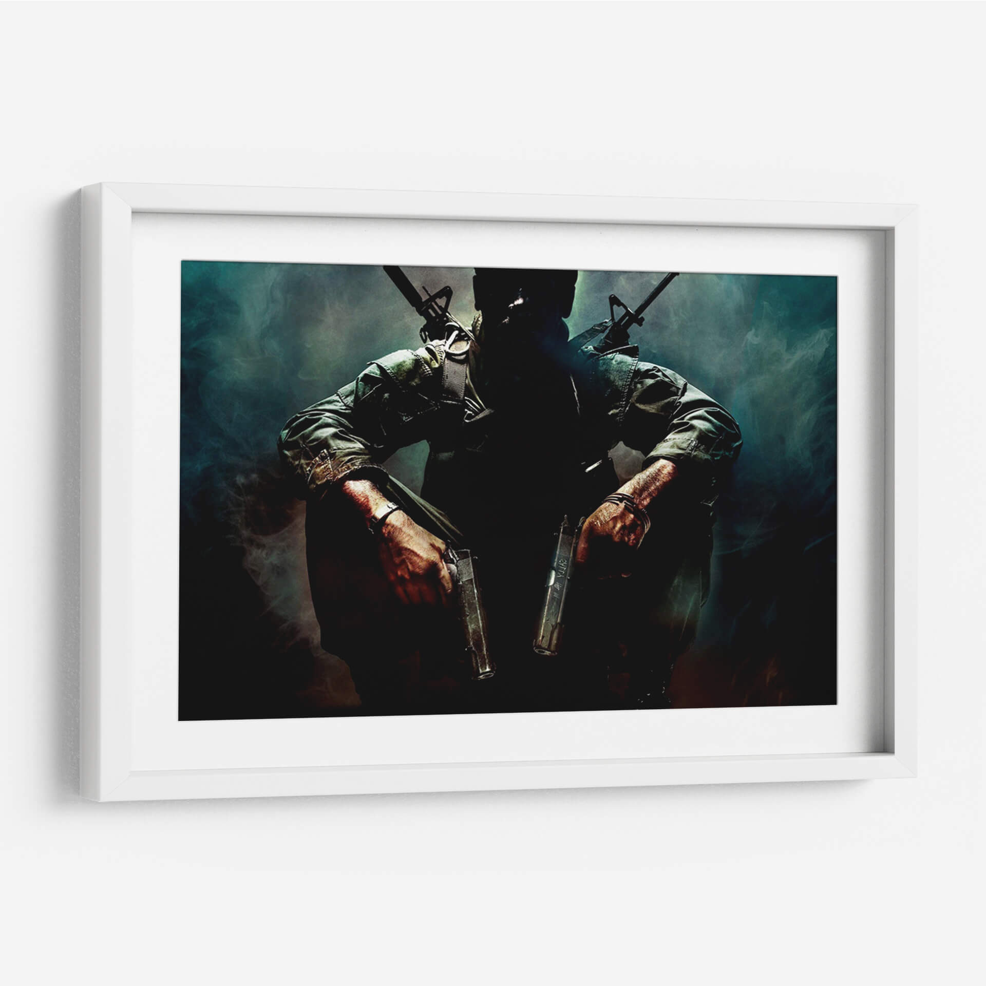 Sumérgete en la intensidad y el misterio con este impactante cuadro decorativo inspirado en el mundo de los videojuegos de acción. La obra presenta una figura solitaria, vestida con uniforme militar, empuñando dos pistolas en una pose desafiante. El uso dramático de luces y sombras crea una atmósfera de tensión y suspense, realzada por un fondo de humo o niebla en tonos oscuros y verdosos que envuelve la escena. Los detalles en el atuendo y las armas son nítidos, aportando un realismo crudo a la composición. Este cuadro decorativo es ideal para espacios masculinos o para aquellos que buscan añadir un toque de fuerza y carácter a su decoración, como una oficina, sala de juegos o un estudio. Su estilo evocador y su temática audaz lo convierten en una pieza de conversación, perfecta para aficionados a la acción y al arte contemporáneo con un giro narrativo. Transforma tu pared con esta representación gráfica de determinación y poder, añadiendo profundidad visual y un aire de intriga a cualquier ambiente moderno.