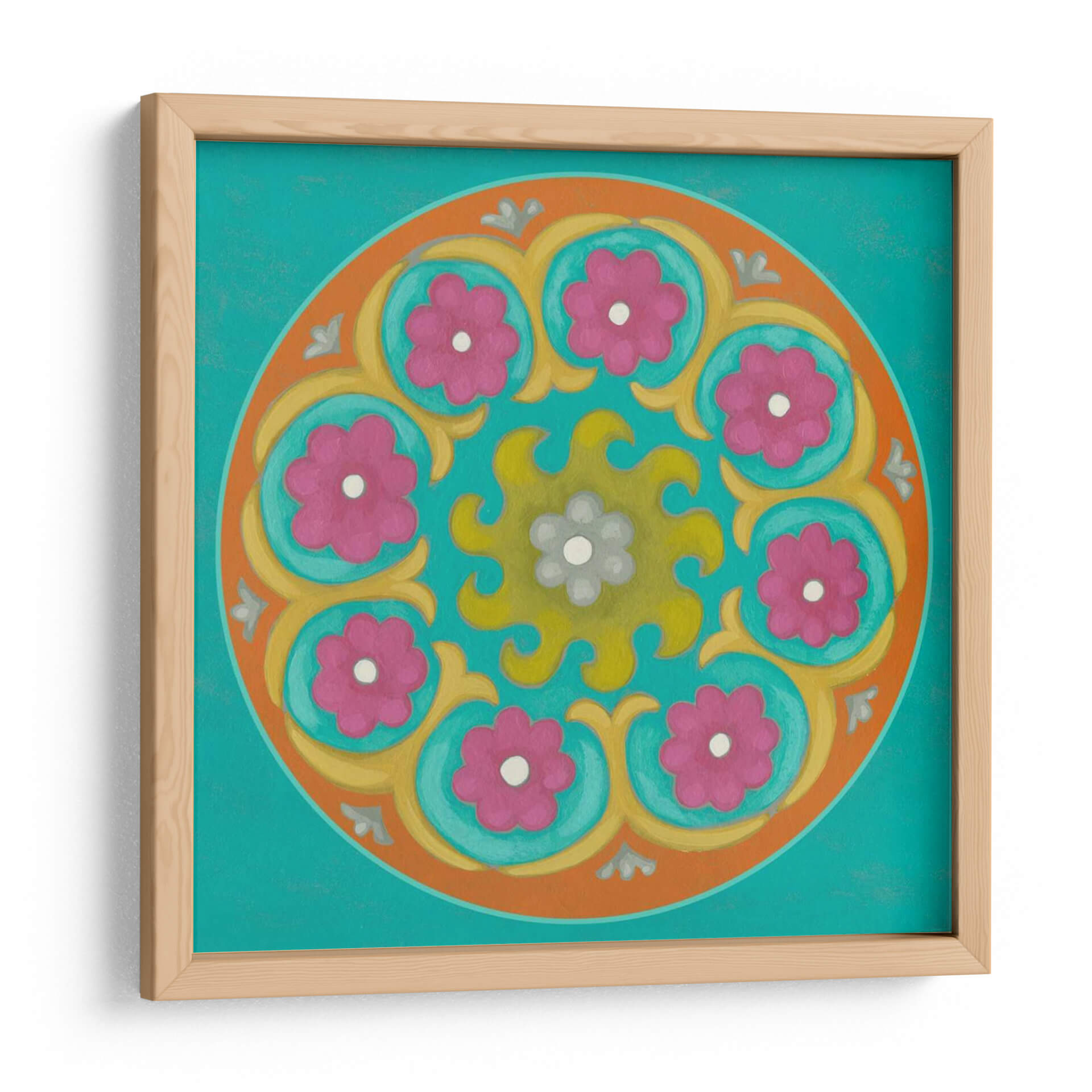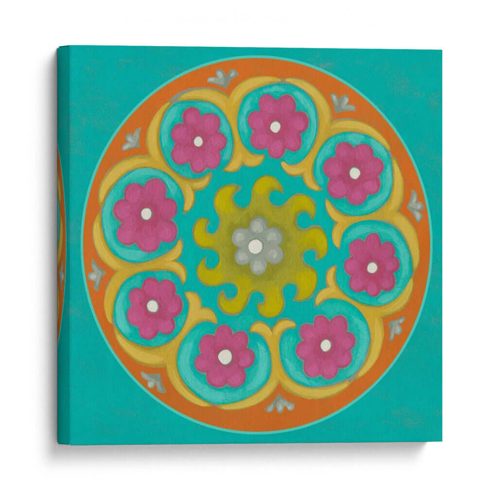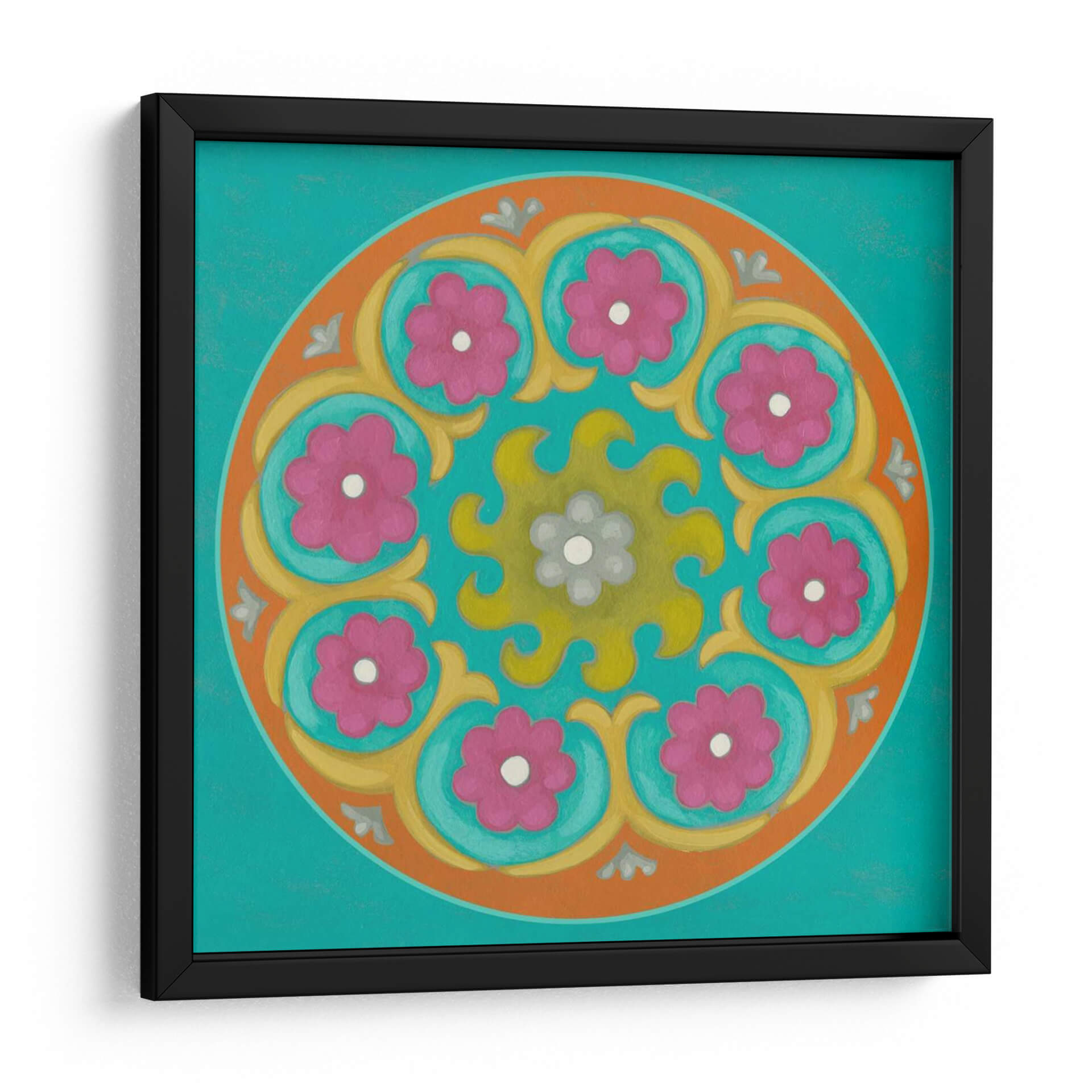 Transforma tu espacio con la vibrante energía de "Celebración Suzani II", una obra de arte contemporáneo de Chariklia Zarris que irradia alegría y sofisticación. Este cuadro decorativo presenta un mandala intrincado, inspirado en los tradicionales textiles Suzani, pero con un giro moderno y audaz. La composición circular se despliega en un armonioso patrón de flores estilizadas en tonos fucsia y toques de gris pálido, enmarcadas por un anillo dorado y un borde naranja intenso. Todo esto se asienta sobre un fondo azul turquesa profundo que realza los colores cálidos y vibrantes del diseño central. La técnica pictórica, con sus sutiles texturas, añade una dimensión táctil y visual que invita a la contemplación. Ideal para quienes buscan un punto focal lleno de color y carácter, esta pieza es perfecta para añadir un toque bohemio chic o un acento étnico a salas de estar, comedores o estudios. "Celebración Suzani II" no es solo un cuadro, es una invitación a la celebración de la vida y la belleza, capturada en un diseño que evoca tradiciones ancestrales con una sensibilidad contemporánea. Añade un toque de vitalidad y estilo único a tu decoración.