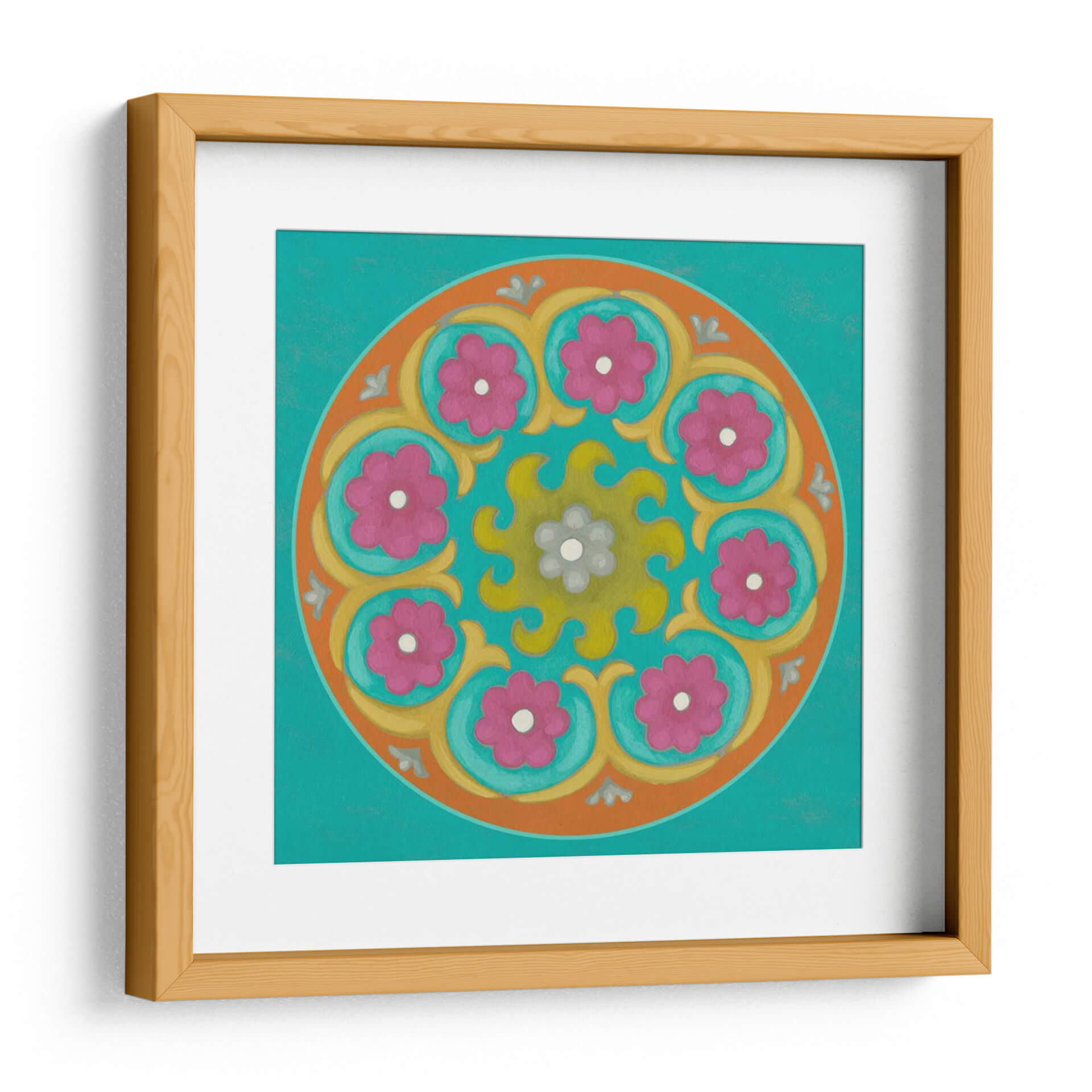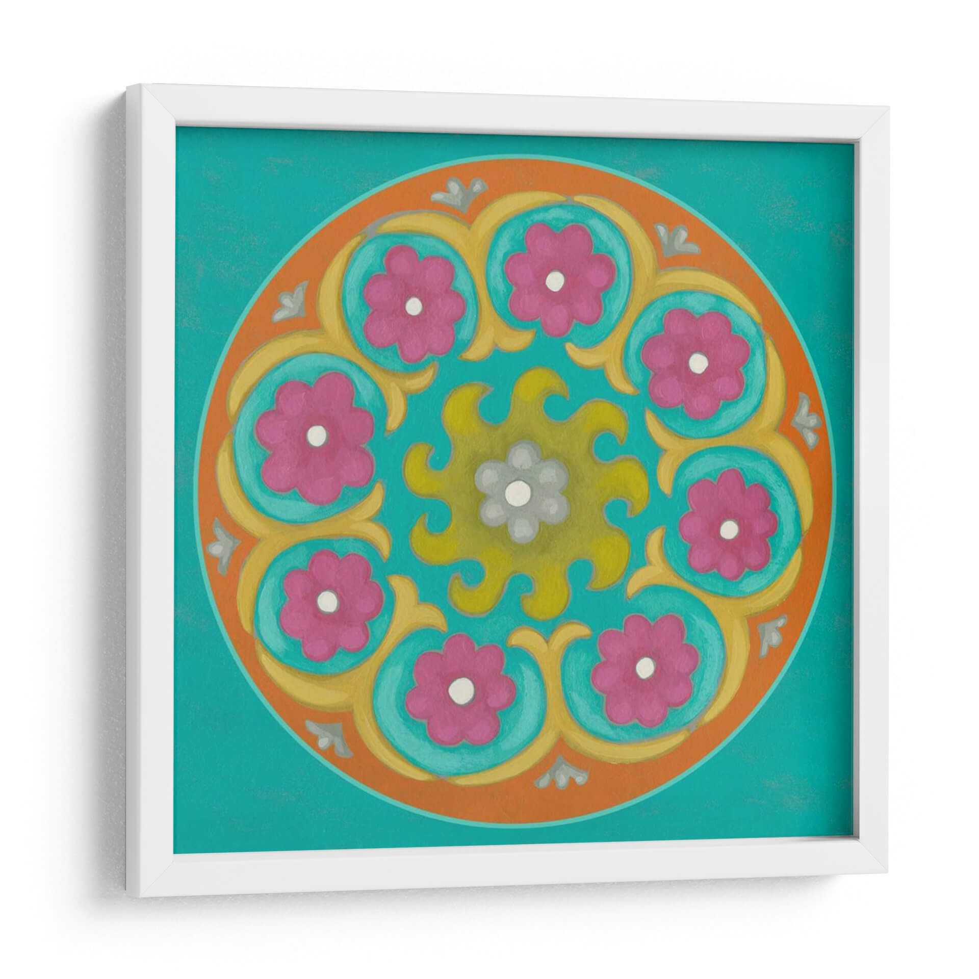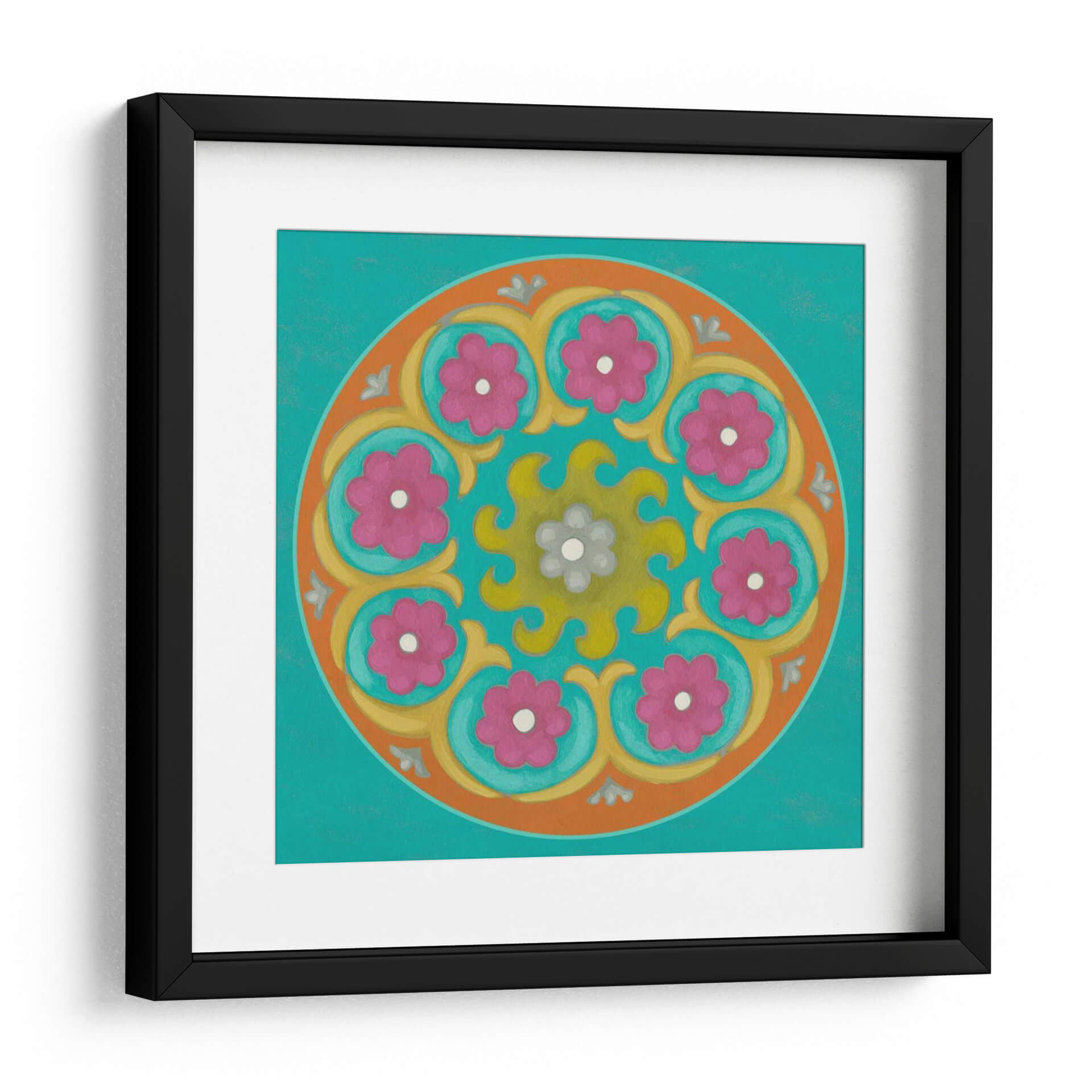 Transforma tu espacio con la vibrante energía de "Celebración Suzani II", una obra de arte contemporáneo de Chariklia Zarris que irradia alegría y sofisticación. Este cuadro decorativo presenta un mandala intrincado, inspirado en los tradicionales textiles Suzani, pero con un giro moderno y audaz. La composición circular se despliega en un armonioso patrón de flores estilizadas en tonos fucsia y toques de gris pálido, enmarcadas por un anillo dorado y un borde naranja intenso. Todo esto se asienta sobre un fondo azul turquesa profundo que realza los colores cálidos y vibrantes del diseño central. La técnica pictórica, con sus sutiles texturas, añade una dimensión táctil y visual que invita a la contemplación. Ideal para quienes buscan un punto focal lleno de color y carácter, esta pieza es perfecta para añadir un toque bohemio chic o un acento étnico a salas de estar, comedores o estudios. "Celebración Suzani II" no es solo un cuadro, es una invitación a la celebración de la vida y la belleza, capturada en un diseño que evoca tradiciones ancestrales con una sensibilidad contemporánea. Añade un toque de vitalidad y estilo único a tu decoración.