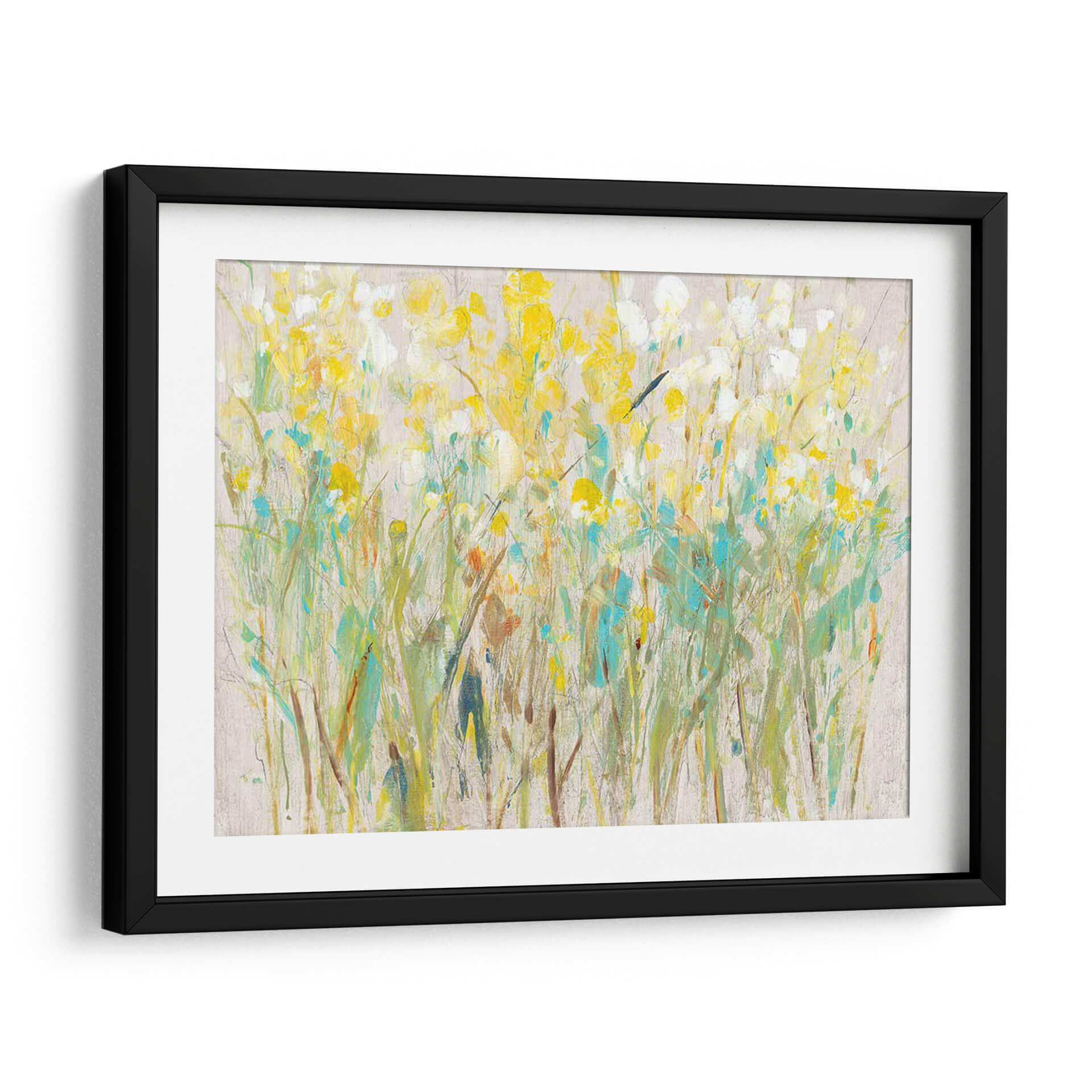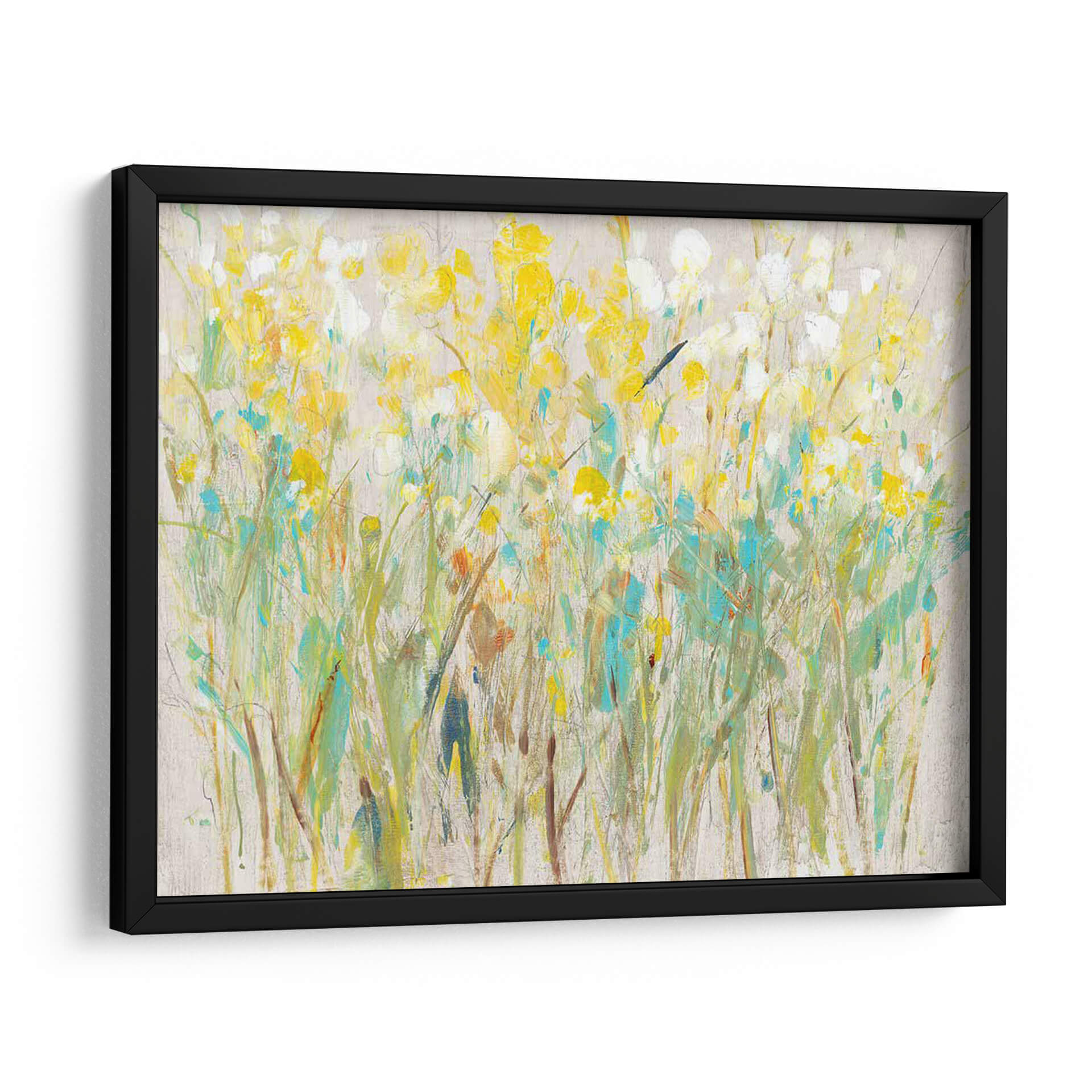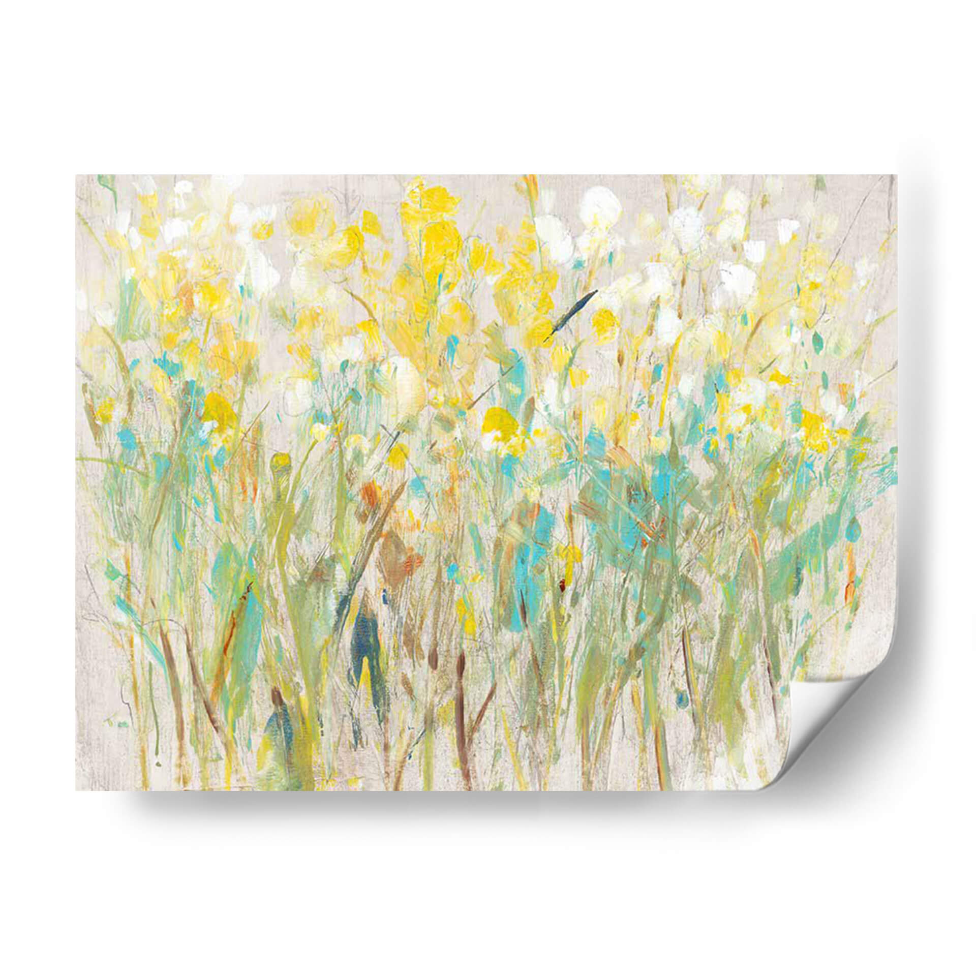 Sumérgete en la frescura primaveral con "Cluster Floral I", una obra de Tim O'Toole que captura la esencia vibrante de un prado en flor. Los trazos sueltos y expresivos dan vida a un campo de flores silvestres bañadas por la luz del sol, donde los amarillos intensos se entrelazan con toques de verde menta y azul cielo, sobre un fondo neutro y texturizado que realza la luminosidad de la composición. Esta pieza evoca una sensación de alegría y vitalidad, perfecta para infundir energía positiva en cualquier espacio. Su estilo semi-abstracto permite una interpretación personal, invitando a la contemplación y al disfrute de la belleza natural. Ideal para salones modernos, dormitorios serenos o como un punto focal encantador en una oficina, este cuadro decorativo es una invitación a la calma y al optimismo. "Cluster Floral I" no es solo una imagen, es una ventana a un jardín edénico que transformará tu hogar con su encanto y delicadeza.