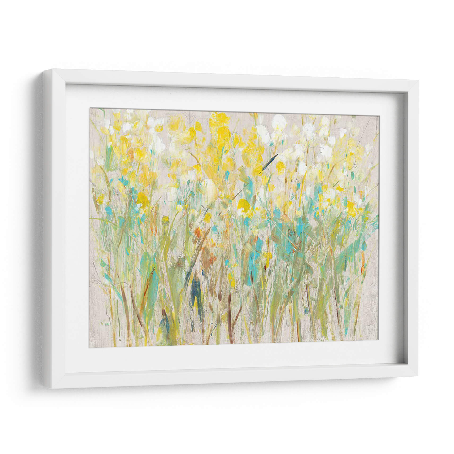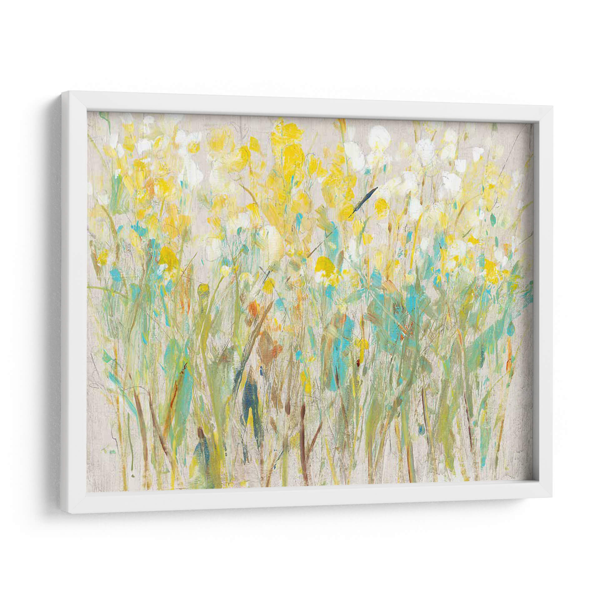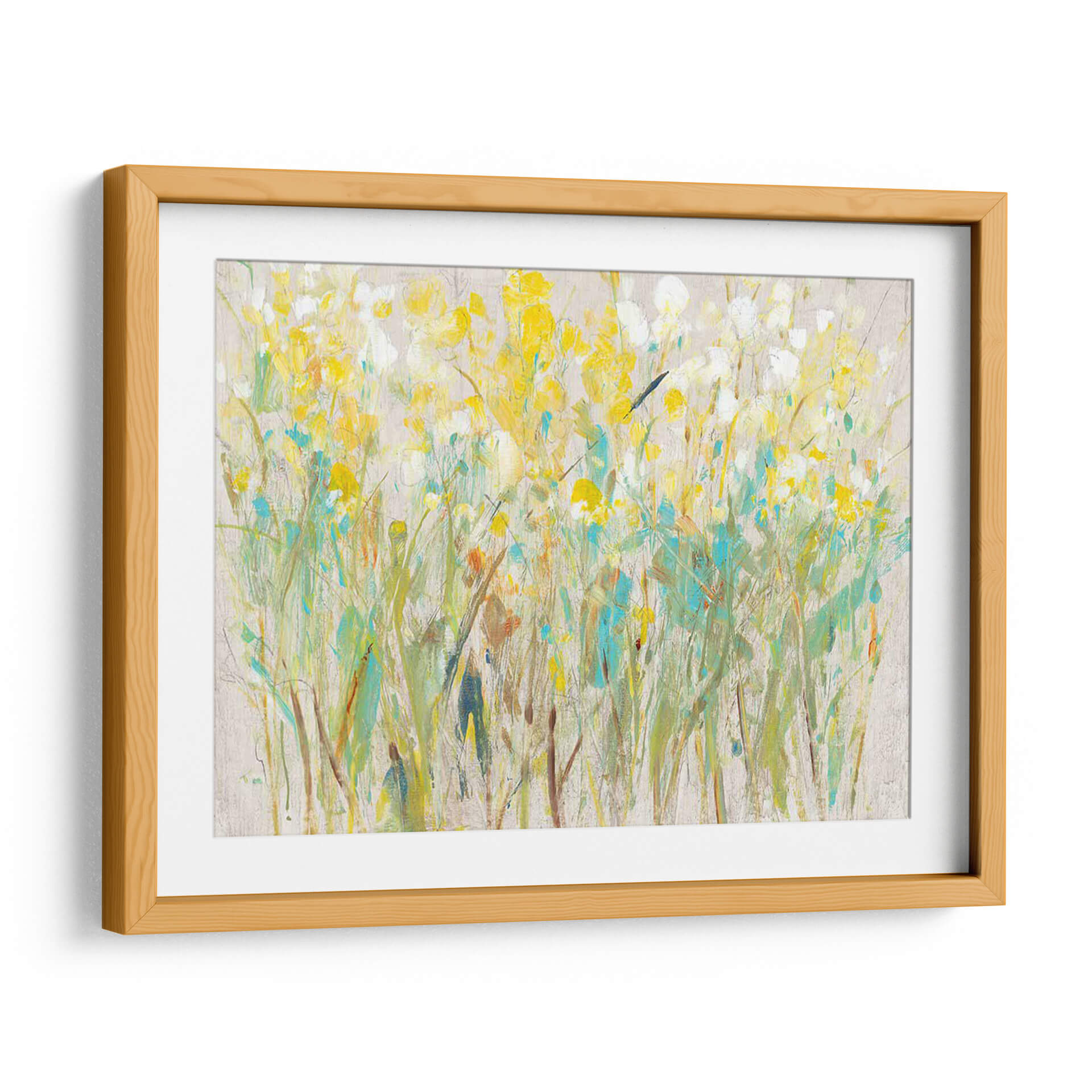Sumérgete en la frescura primaveral con "Cluster Floral I", una obra de Tim O'Toole que captura la esencia vibrante de un prado en flor. Los trazos sueltos y expresivos dan vida a un campo de flores silvestres bañadas por la luz del sol, donde los amarillos intensos se entrelazan con toques de verde menta y azul cielo, sobre un fondo neutro y texturizado que realza la luminosidad de la composición. Esta pieza evoca una sensación de alegría y vitalidad, perfecta para infundir energía positiva en cualquier espacio. Su estilo semi-abstracto permite una interpretación personal, invitando a la contemplación y al disfrute de la belleza natural. Ideal para salones modernos, dormitorios serenos o como un punto focal encantador en una oficina, este cuadro decorativo es una invitación a la calma y al optimismo. "Cluster Floral I" no es solo una imagen, es una ventana a un jardín edénico que transformará tu hogar con su encanto y delicadeza.