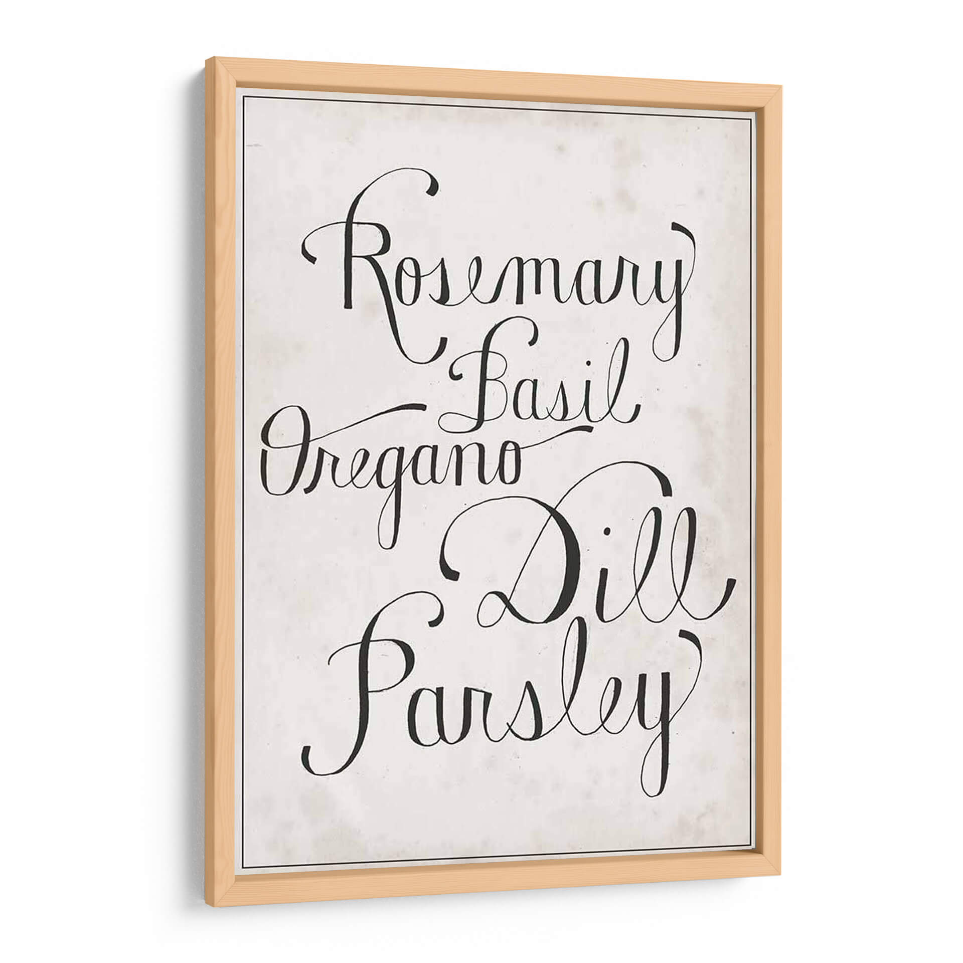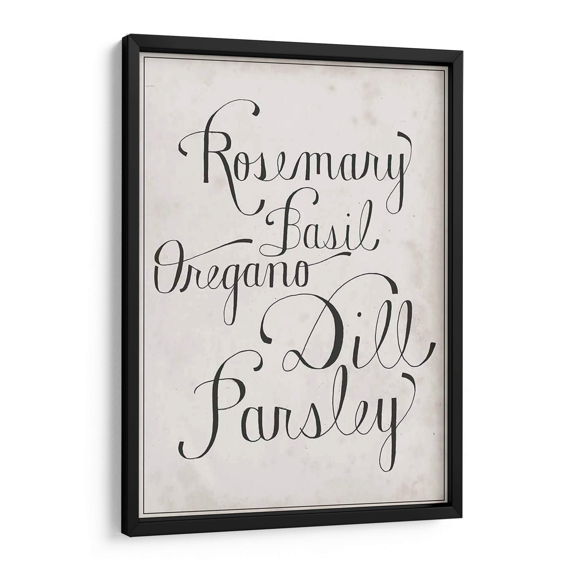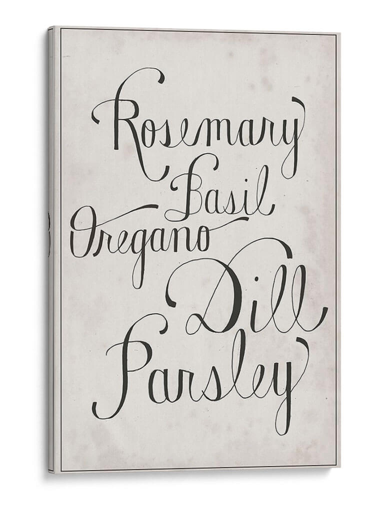 Añada un toque de elegancia rústica y frescura culinaria a su hogar con este encantador cuadro decorativo de hierbas. La obra presenta los nombres de hierbas aromáticas como romero, albahaca, orégano, eneldo y perejil, escritos en una tipografía cursiva clásica y sofisticada sobre un fondo texturizado de inspiración vintage. Los colores neutros y el contraste nítido entre el negro y el beige crean una pieza versátil que se integra a la perfección en una variedad de estilos decorativos, desde el moderno hasta el campestre o el escandinavo. Este cuadro es ideal para cocinas, comedores o cualquier espacio donde se celebre la buena comida y el buen gusto. Su diseño minimalista pero evocador invita a la calma y a la inspiración, convirtiéndolo en un punto focal sutil pero impactante. Perfecto para quienes buscan añadir personalidad y un aire de sofisticación a su decoración sin sacrificar la calidez.