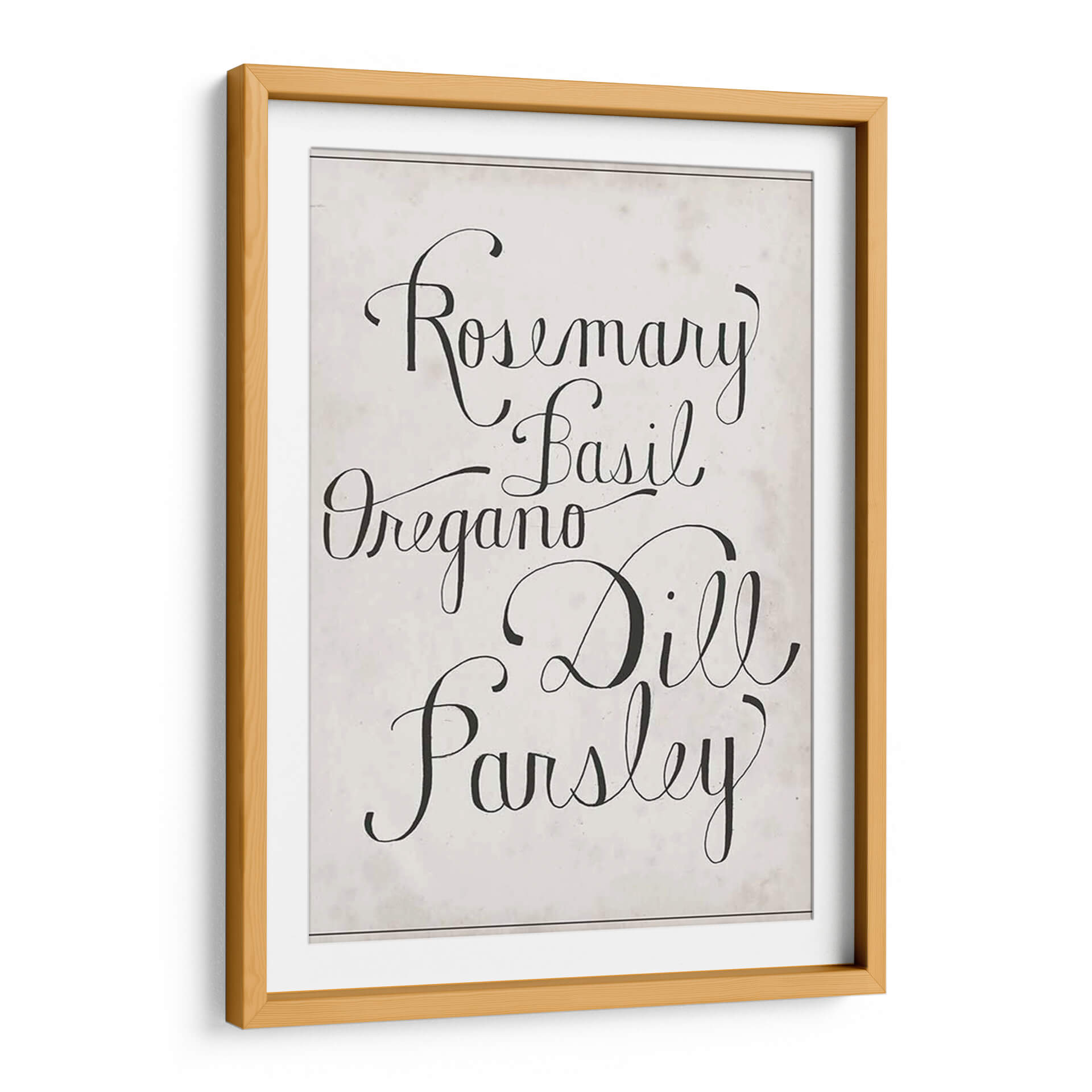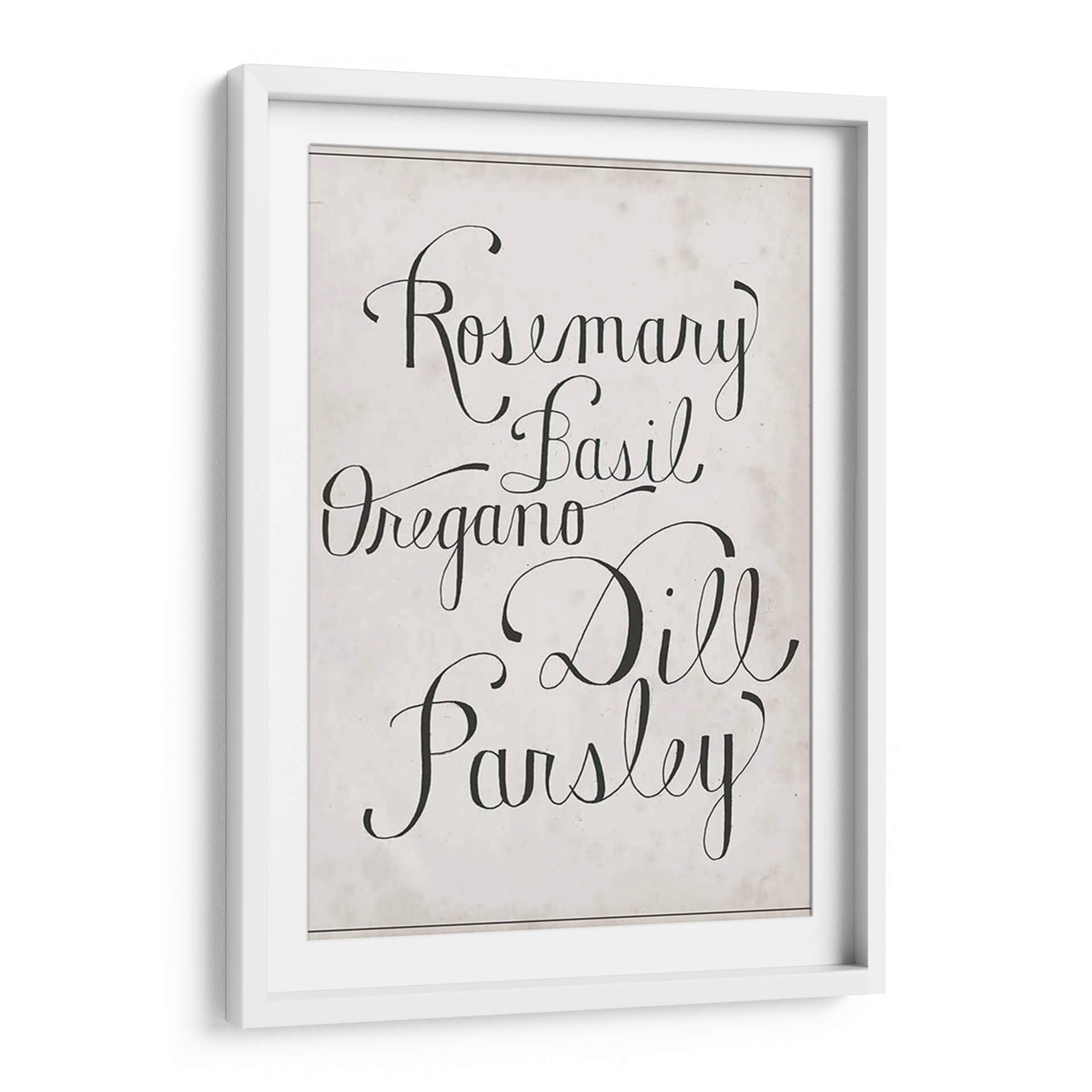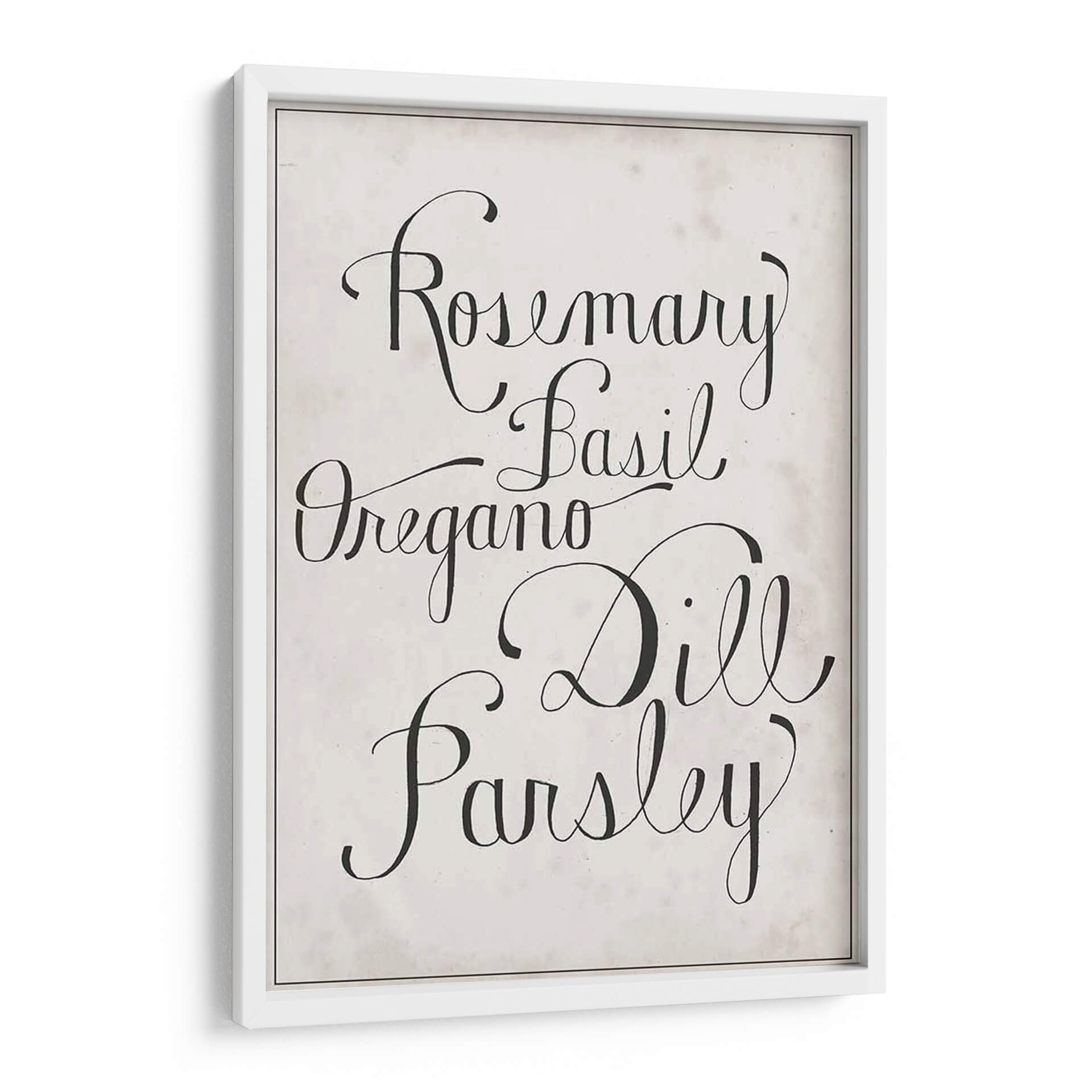 Añada un toque de elegancia rústica y frescura culinaria a su hogar con este encantador cuadro decorativo de hierbas. La obra presenta los nombres de hierbas aromáticas como romero, albahaca, orégano, eneldo y perejil, escritos en una tipografía cursiva clásica y sofisticada sobre un fondo texturizado de inspiración vintage. Los colores neutros y el contraste nítido entre el negro y el beige crean una pieza versátil que se integra a la perfección en una variedad de estilos decorativos, desde el moderno hasta el campestre o el escandinavo. Este cuadro es ideal para cocinas, comedores o cualquier espacio donde se celebre la buena comida y el buen gusto. Su diseño minimalista pero evocador invita a la calma y a la inspiración, convirtiéndolo en un punto focal sutil pero impactante. Perfecto para quienes buscan añadir personalidad y un aire de sofisticación a su decoración sin sacrificar la calidez.