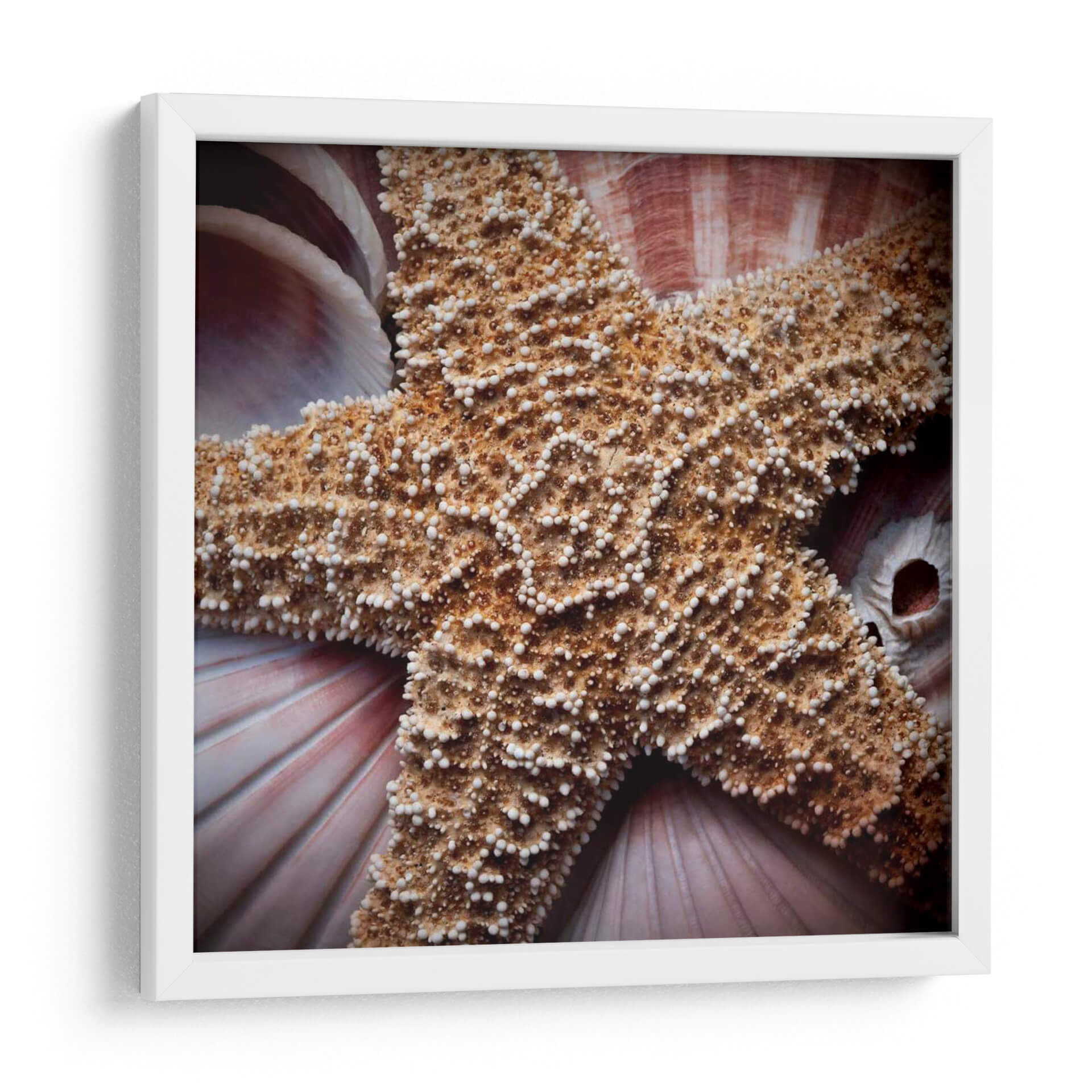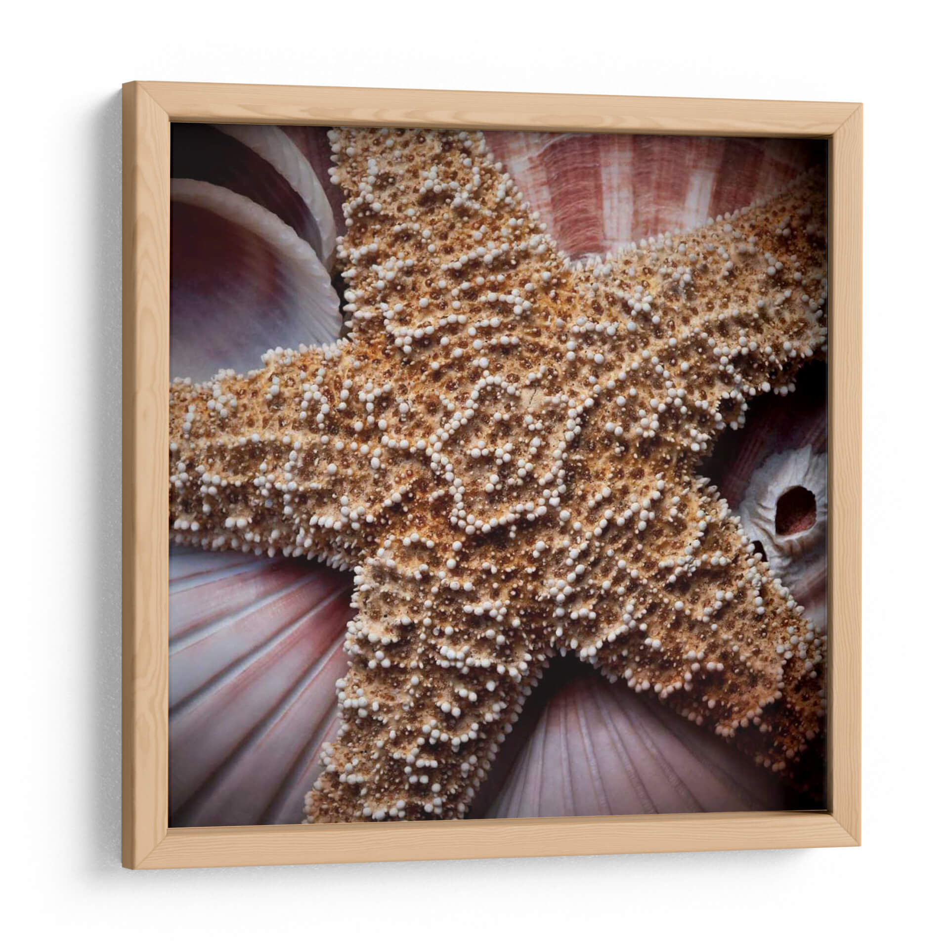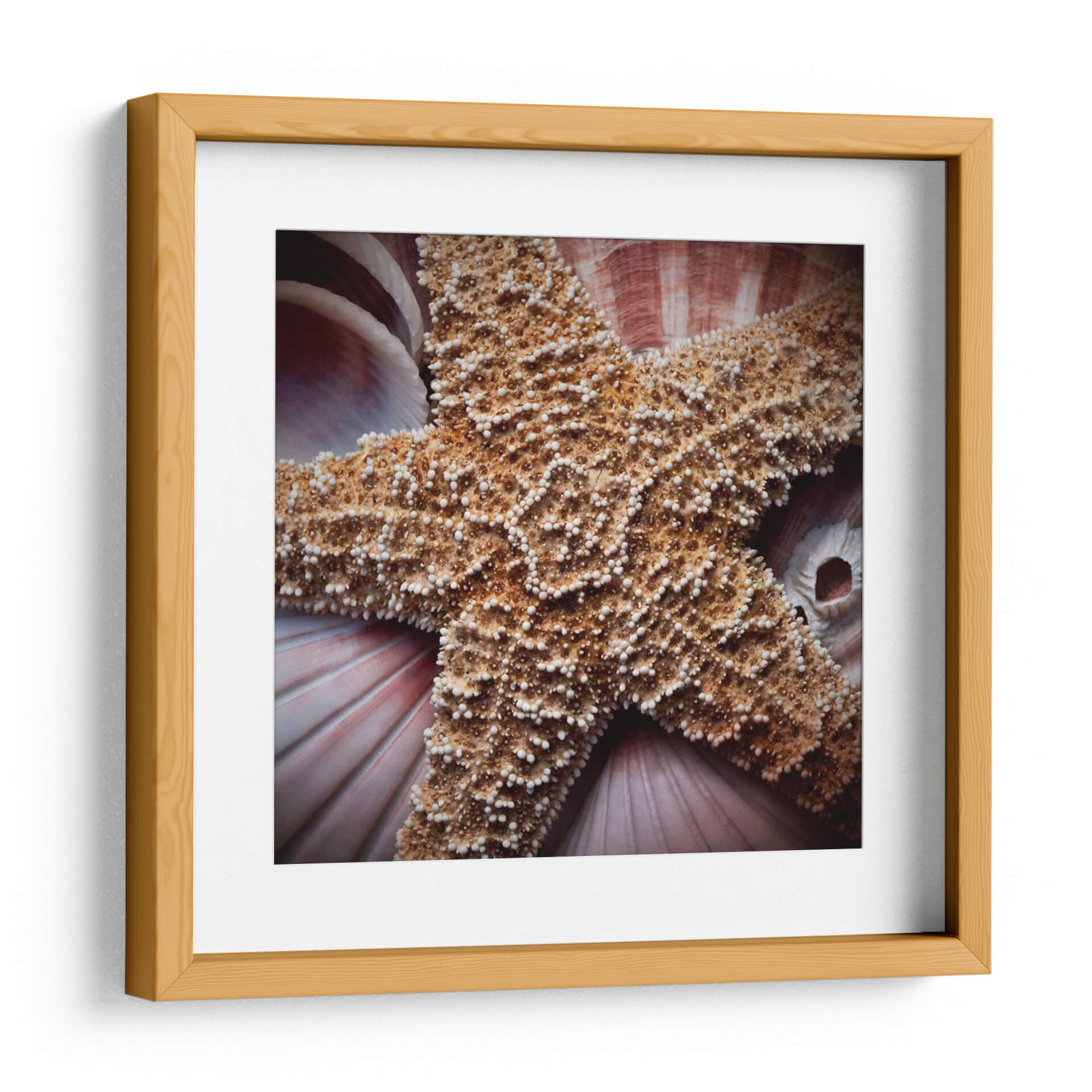 Sumérgete en la belleza detallada del océano con "Conchas Macro I", una obra de arte que captura la intrincada textura de la vida marina. Este cuadro decorativo presenta un primer plano hipnótico de una estrella de mar, cuyas espinas y formaciones únicas se extienden sobre un fondo de conchas rosadas y nacaradas. La paleta de colores, dominada por tonos tierra, dorados y toques de rosa pálido, crea una atmósfera de serenidad y conexión con la naturaleza. La composición macro fotográfica resalta la complejidad de las formas naturales, invitando a la contemplación y al asombro. Ideal para añadir un toque de elegancia orgánica a tu sala de estar, dormitorio o incluso un baño con temática costera, esta pieza evoca la calma y la majestuosidad del mundo submarino. Cada detalle, desde la granularidad de la estrella de mar hasta las sutiles líneas de las conchas, está representado con una claridad asombrosa, convirtiendo este cuadro decorativo en un punto focal cautivador y una ventana a la maravilla del océano.