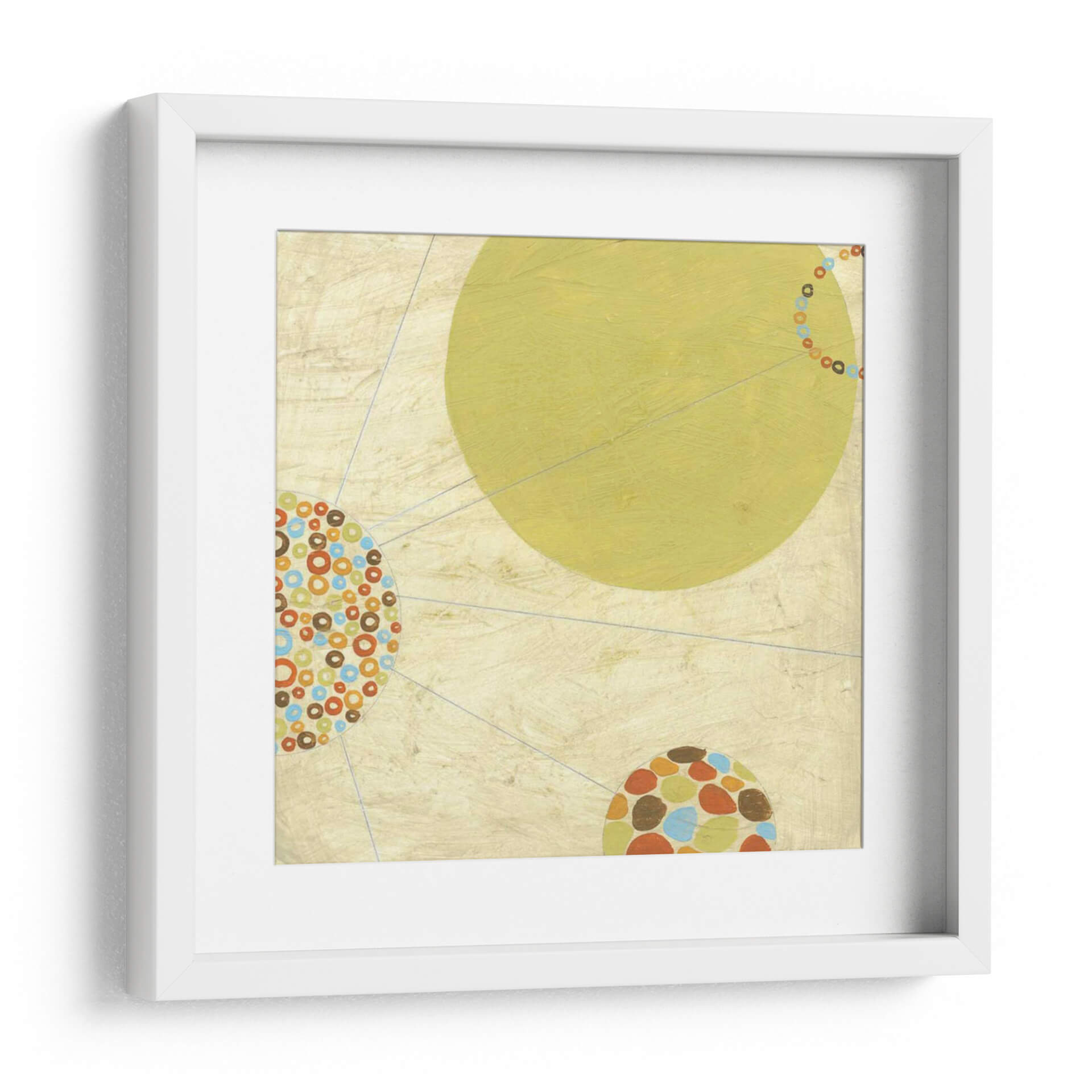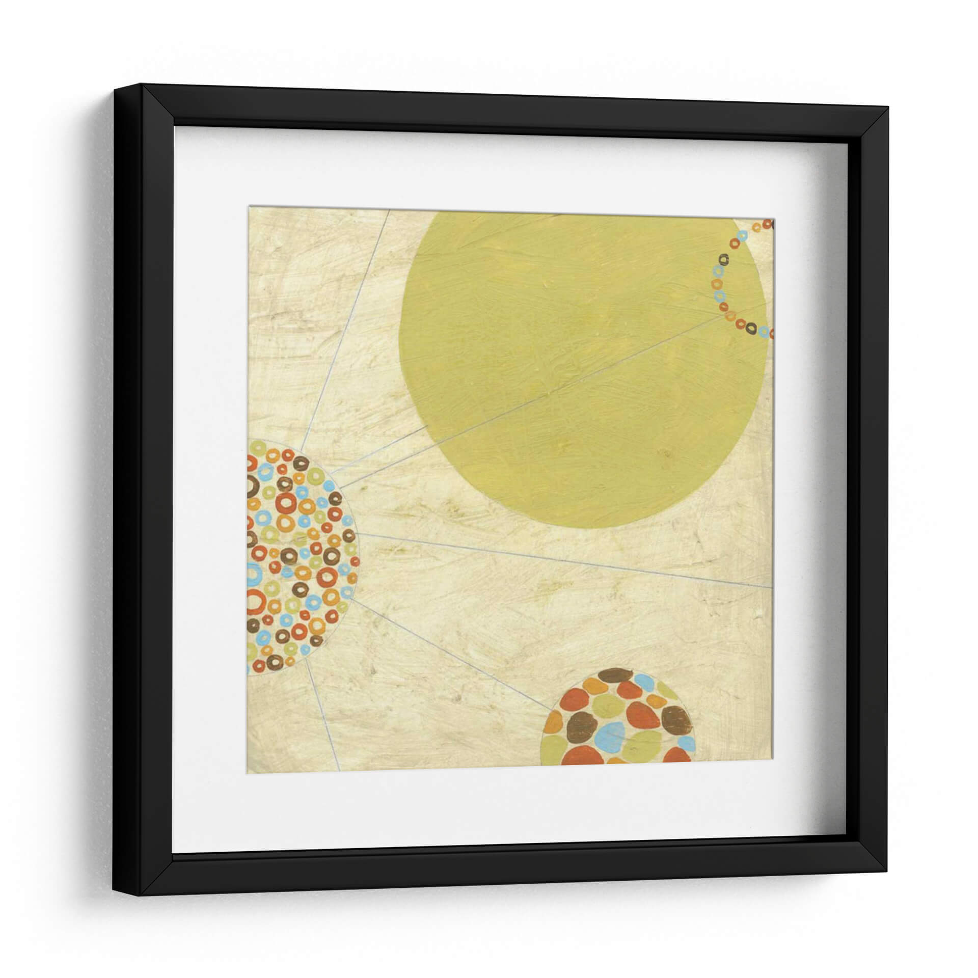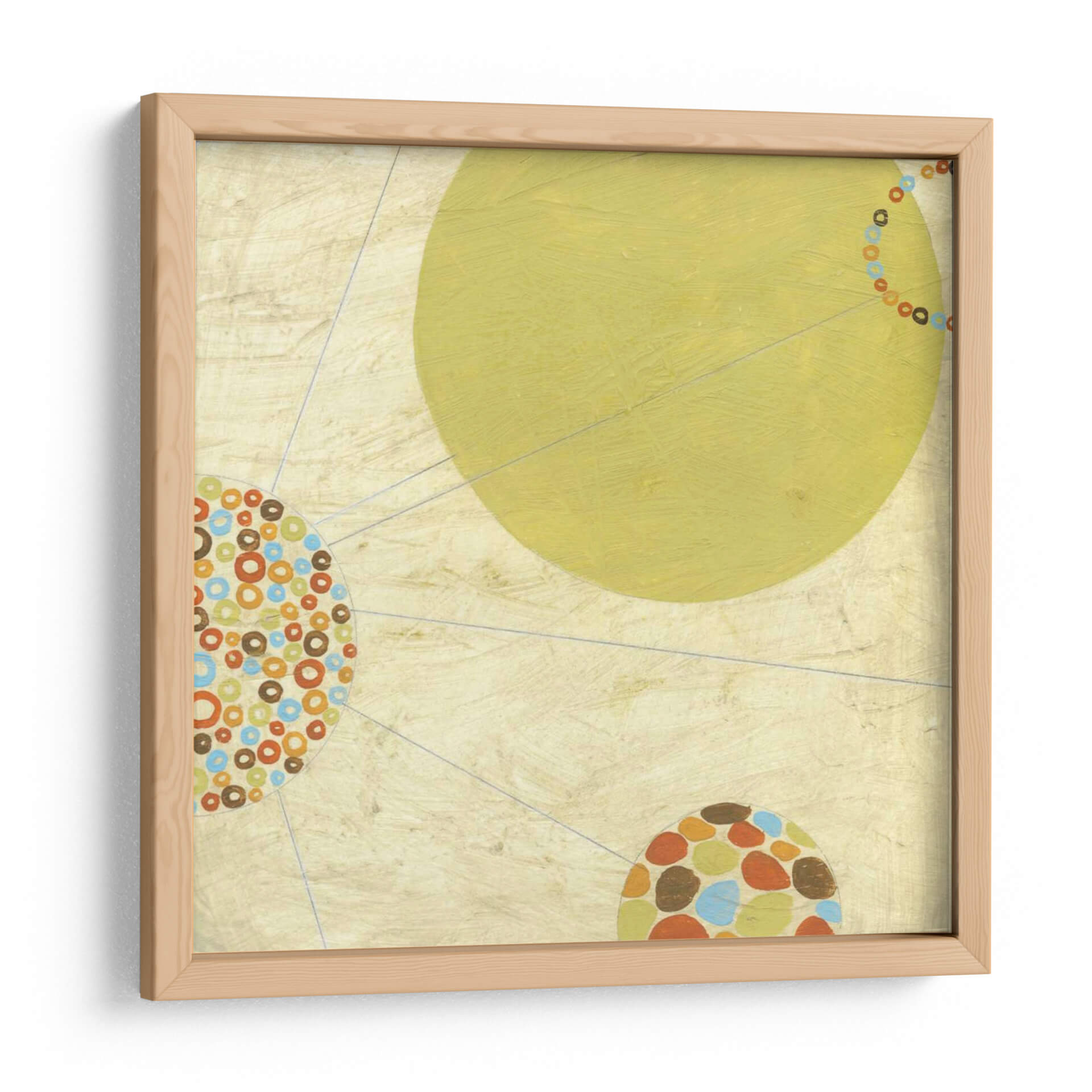 Embárcate en un viaje celestial con "Constelación II", una obra de arte abstracto contemporáneo de June Erica Vess. Este cautivador cuadro decorativo te transporta a un universo de formas circulares y líneas etéreas, evocando la inmensidad del cosmos y la intrincada belleza de las galaxias lejanas. La paleta de colores, dominada por suaves tonos beiges y amarillos cálidos, se ve realzada por estallidos vibrantes de naranja, azul y multicolor en patrones circulares dinámicos, creando un equilibrio visual armonioso y lleno de energía. Las finas líneas azules que se expanden desde el gran círculo amarillo central sugieren una conexión cósmica, una invitación a la reflexión y al asombro. El estilo abstracto y geométrico de Vess permite una interpretación personal, haciendo de "Constelación II" una pieza versátil que se adapta a una variedad de espacios. Ideal para añadir un toque de sofisticación moderna a tu sala de estar, un toque de inspiración a tu oficina o una atmósfera de serenidad a tu dormitorio, este cuadro decorativo es una elección excepcional para quienes buscan arte que no solo embellezca, sino que también inspire y conecte. Transforma tu hogar en una galería personal con esta pieza única.