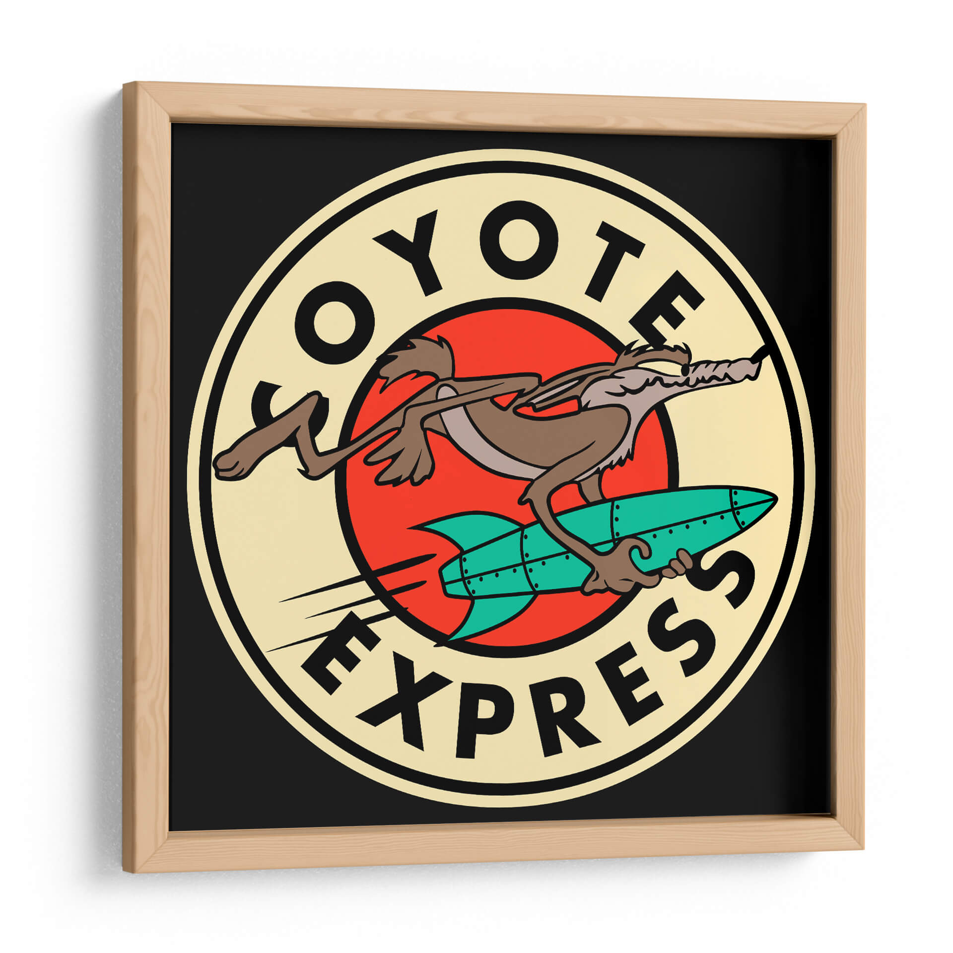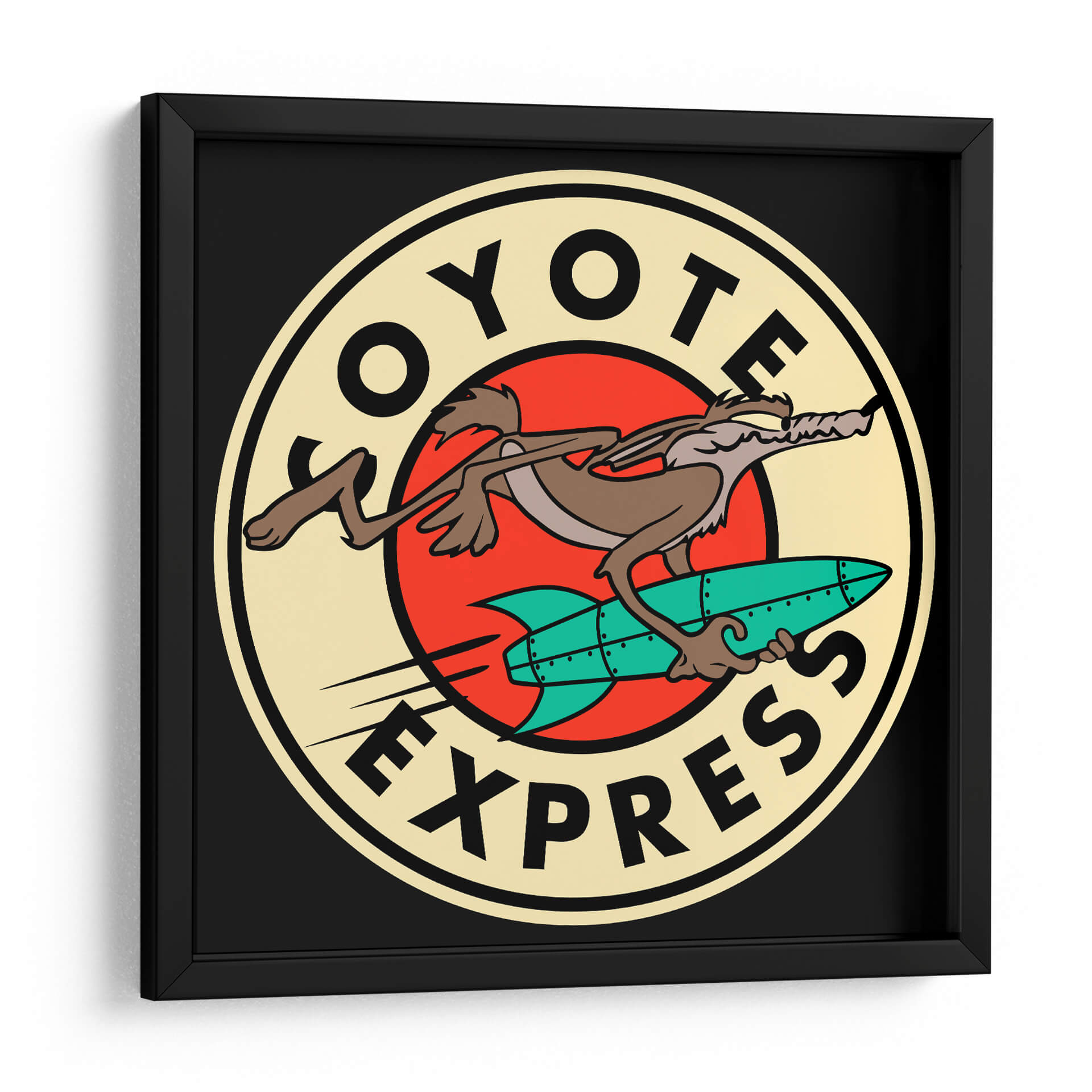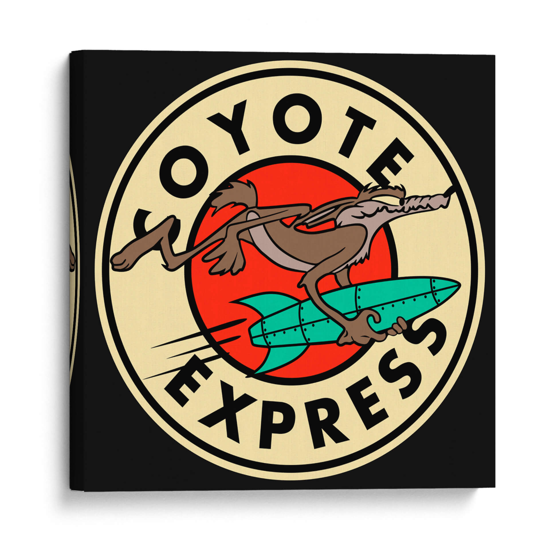 Inyecta una dosis de humor y dinamismo a tu espacio con el cuadro decorativo 'Coyote Express', una obra inspirada en el icónico personaje. Este diseño vibrante presenta a un coyote en plena acción, surcando el cielo sobre un cohete estilizado, encapsulando la esencia de la persecución y la aventura con un toque nostálgico. La composición circular, con el texto 'Coyote Express' rodeando la escena, crea un emblema gráfico potente y reconocible. Predominan los colores primarios y secundarios: el rojo intenso del círculo central, el turquesa del cohete y el beige del fondo, contrastando con el negro del contorno y el fondo general, generando un impacto visual audaz. Ideal para espacios juveniles, salas de estar con un estilo pop o incluso oficinas que busquen un toque de originalidad y energía. Este cuadro decorativo es perfecto para quienes aprecian el arte gráfico, la cultura pop y buscan piezas que cuenten una historia divertida y llena de movimiento. Añade carácter y un aire de desenfado a tu decoración con esta pieza única.
