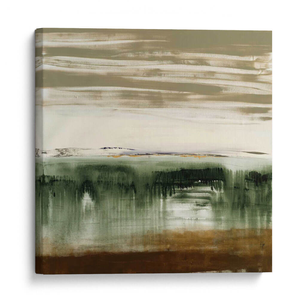 Sumérgete en la serenidad y la evocadora belleza de "Coyuntura II", una obra de arte contemporáneo que captura la esencia de un paisaje enigmático con una paleta de colores terrosos y verdes profundos. Las pinceladas gestuales y abstractas invitan a la contemplación, creando una atmósfera de calma y reflexión. La composición, dividida en horizontes suaves y texturas que sugieren vegetación o agua, genera una sensación de profundidad y misterio. Los tonos ocre del primer plano contrastan armónicamente con el verde vibrante y las sutiles pinceladas doradas y púrpuras en la distancia, evocando la transición entre estaciones o la luz cambiante de un atardecer. Este cuadro decorativo es perfecto para añadir un toque de sofisticación natural y tranquilidad a cualquier espacio, ya sea un salón moderno, un estudio o un dormitorio. Su estilo abstracto pero figurativo permite una interpretación personal, convirtiéndolo en un punto focal cautivador que dialoga con la luz y el ambiente de tu hogar u oficina, transformando la decoración en una experiencia sensorial y emocional. "Coyuntura II" es más que una pieza de arte; es una invitación a encontrar tu propio espacio de paz y conexión.