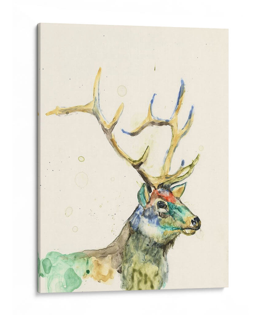Sumérgete en la majestuosidad de la naturaleza con este cautivador cuadro decorativo de un ciervo, una obra maestra del arte contemporáneo. La pieza, titulada "Custom Hi Fila Favilla Iii" y creada por la talentosa artista Jennifer Goldberger, captura la esencia de este noble animal con una técnica de acuarela vibrante y expresiva. Los tonos tierra y verdes se fusionan con toques audaces de azul y rojo en el rostro del ciervo, creando un contraste fascinante y lleno de vida. Las astas, representadas con trazos delicados en tonos dorados y ocres, añaden un aire de elegancia y fuerza. La composición, centrada en el perfil del ciervo sobre un fondo neutro y salpicado, evoca una sensación de calma y conexión con el mundo salvaje. Este cuadro decorativo es ideal para añadir un toque de sofisticación y naturaleza a cualquier espacio, ya sea una sala de estar moderna, un estudio o una oficina. Su estilo único y su ejecución artística lo convierten en un punto focal inspirador que resonará con los amantes del arte y la vida silvestre, aportando serenidad y carácter a tu decoración.