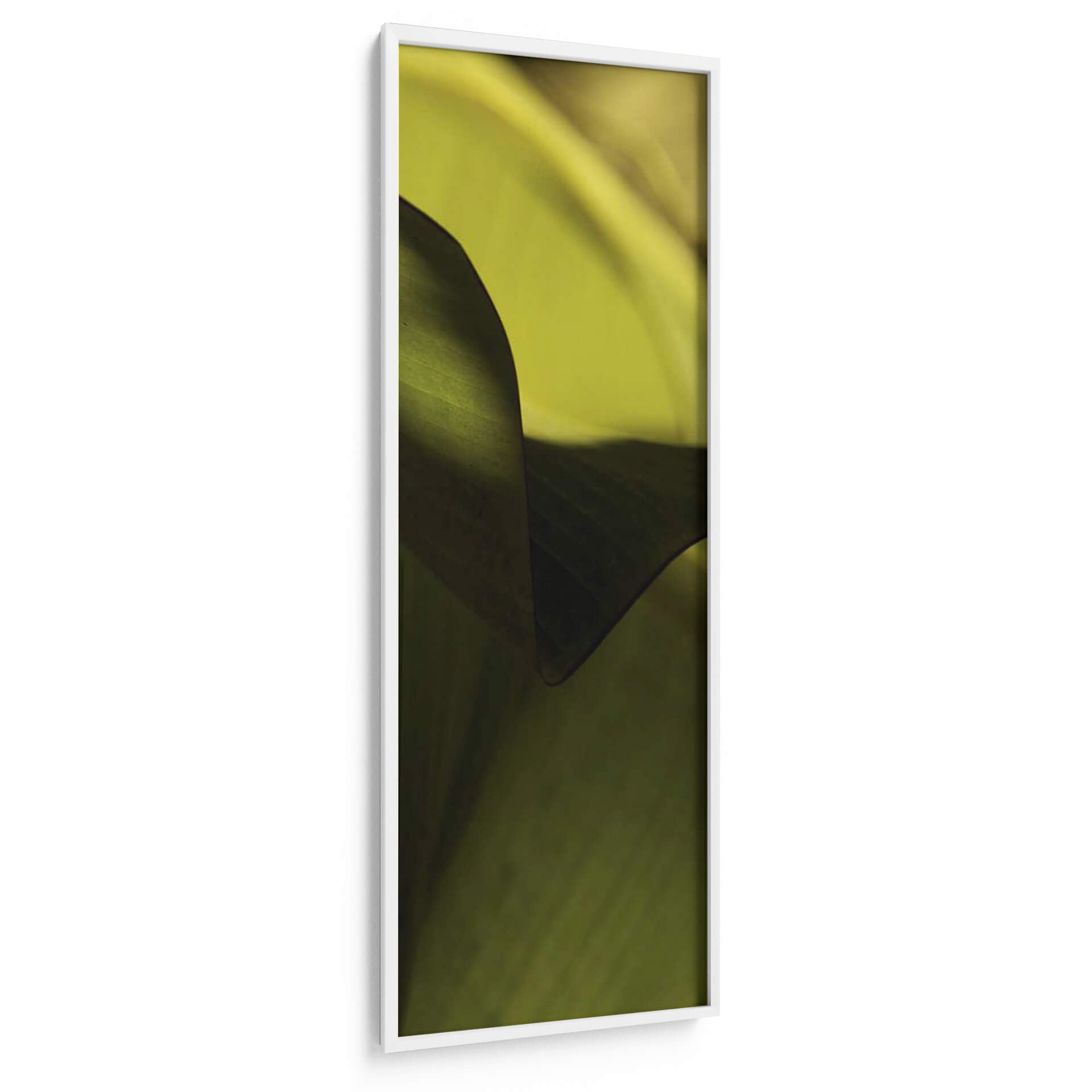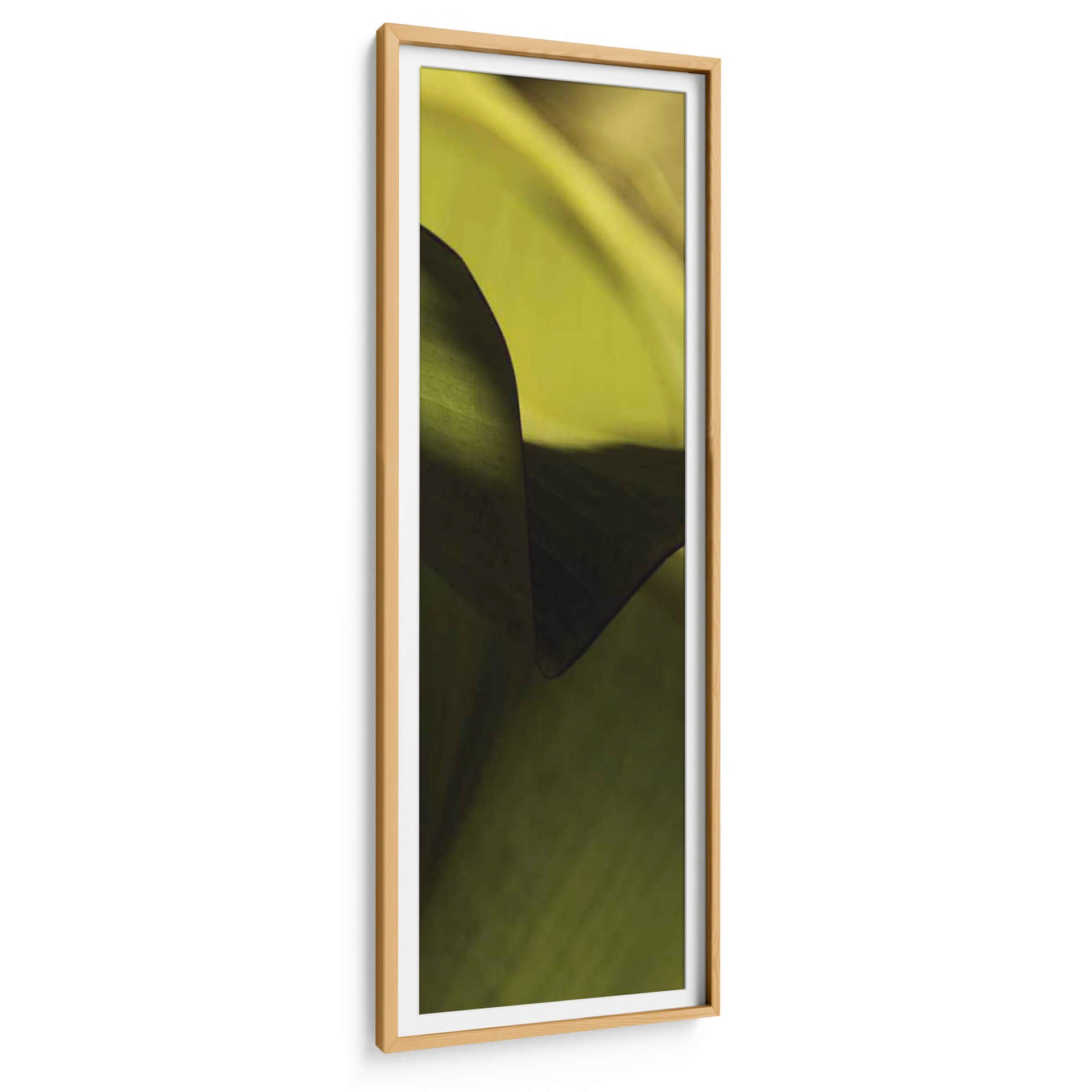 Sumérgete en la serenidad natural con "Detalle De La Hoja Ii", una obra de arte contemporáneo que captura la esencia botánica con una sensibilidad excepcional. El artista Tang Ling nos transporta a un microcosmos vegetal, donde las formas orgánicas y las curvas suaves de una hoja se convierten en el foco principal. La paleta de colores, dominada por verdes profundos y matices dorados, evoca una sensación de calma, frescura y vitalidad, ideal para crear un oasis de tranquilidad en tu hogar u oficina. La composición abstracta juega con la luz y la sombra, añadiendo profundidad y un toque de misterio a la pieza. Este cuadro decorativo es perfecto para aquellos que buscan infundir a sus espacios una conexión con la naturaleza, aportando un aire de sofisticación orgánica. Su diseño minimalista y la riqueza de sus tonalidades lo convierten en un elemento versátil, capaz de complementar tanto decoraciones modernas como ambientes más tradicionales, añadiendo un toque de elegancia natural y atemporal que inspirará paz y contemplación en quien lo contemple. Es una invitación a apreciar la belleza intrínseca de las formas naturales.