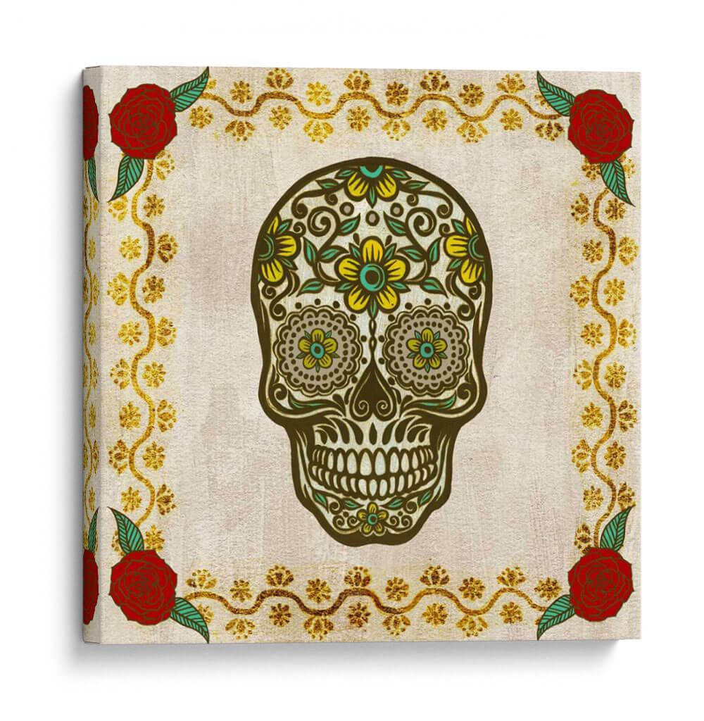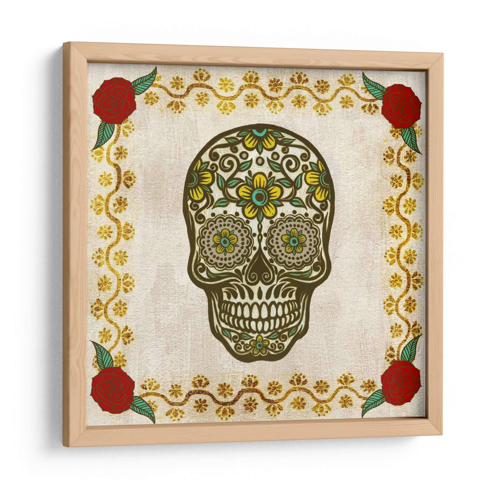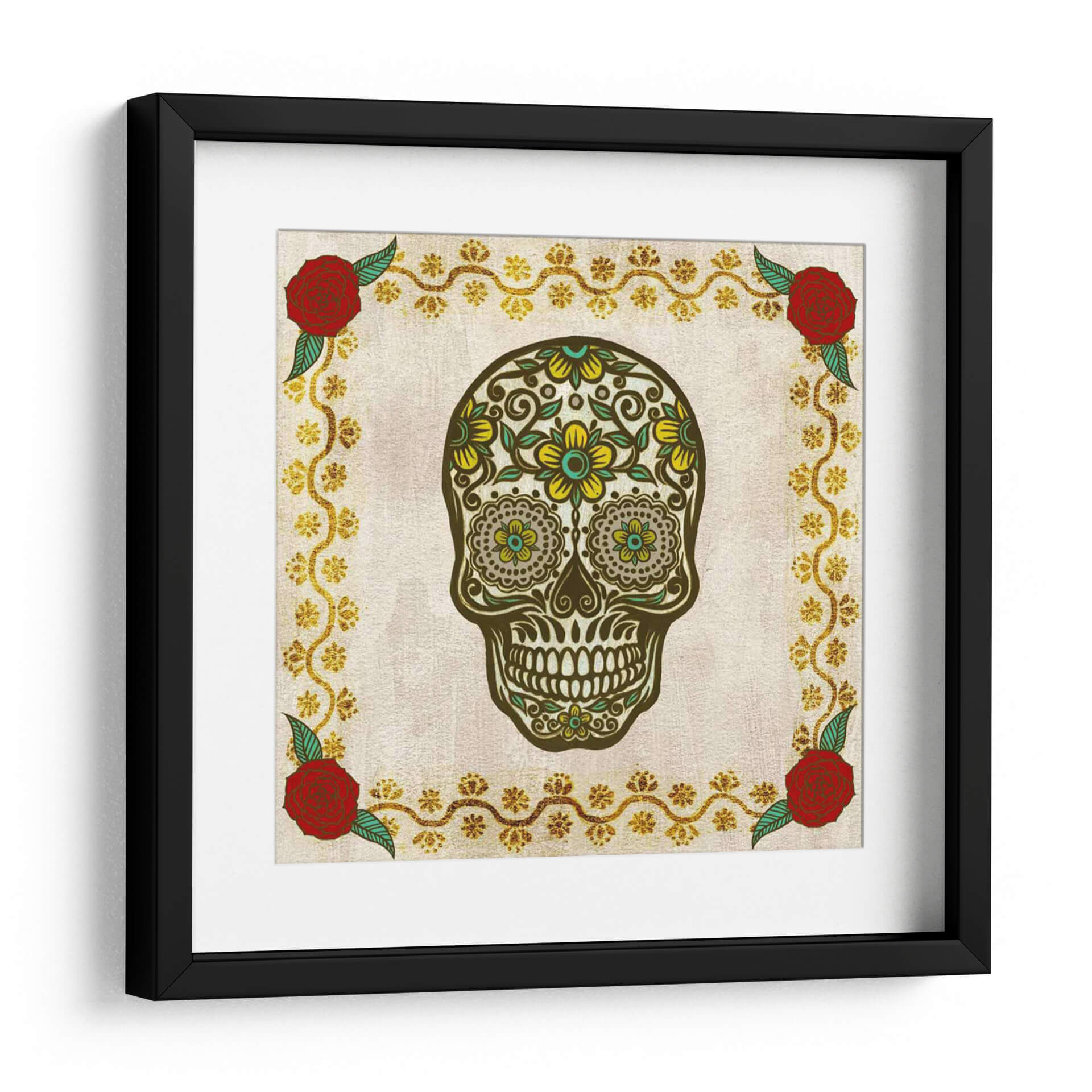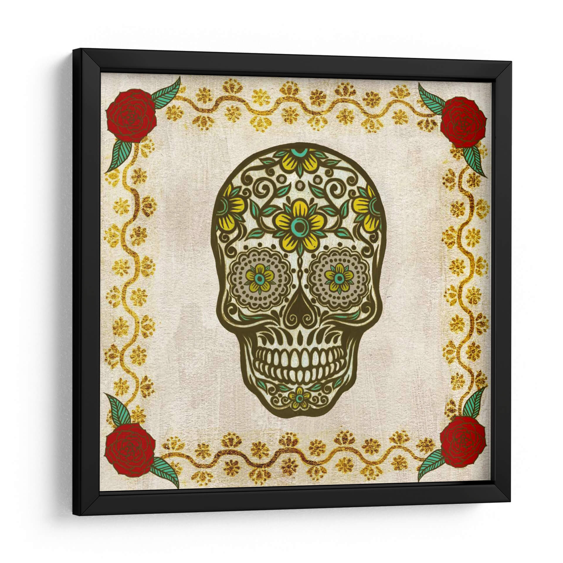 Celebra la vibrante tradición del Día de los Muertos con "Día De Los Muertos Ii", una obra de arte cautivadora de Grace Popp. Este cuadro decorativo presenta una calavera ricamente ornamentada, adornada con intrincados diseños florales en tonos verdes, amarillos y marrones, rodeada por un marco dorado con motivos de flores y rojas rosas. La textura sutil del fondo aporta una profundidad terrosa, creando una atmósfera que honra tanto la festividad como el arte. La composición central, dominada por la calavera detallada, invita a la contemplación y celebra la dualidad de la vida y la muerte con un estilo que combina elementos folclóricos y contemporáneos. Ideal para añadir un toque de cultura y color a cualquier sala de estar, comedor u oficina, este cuadro es una pieza de conversación que resuena con significado y belleza. Su diseño único lo convierte en el punto focal perfecto para espacios que buscan una decoración audaz y con carácter, evocando la rica herencia cultural mexicana de una manera artística y sofisticada. Añade esta pieza a tu colección para un toque de elegancia y tradición.