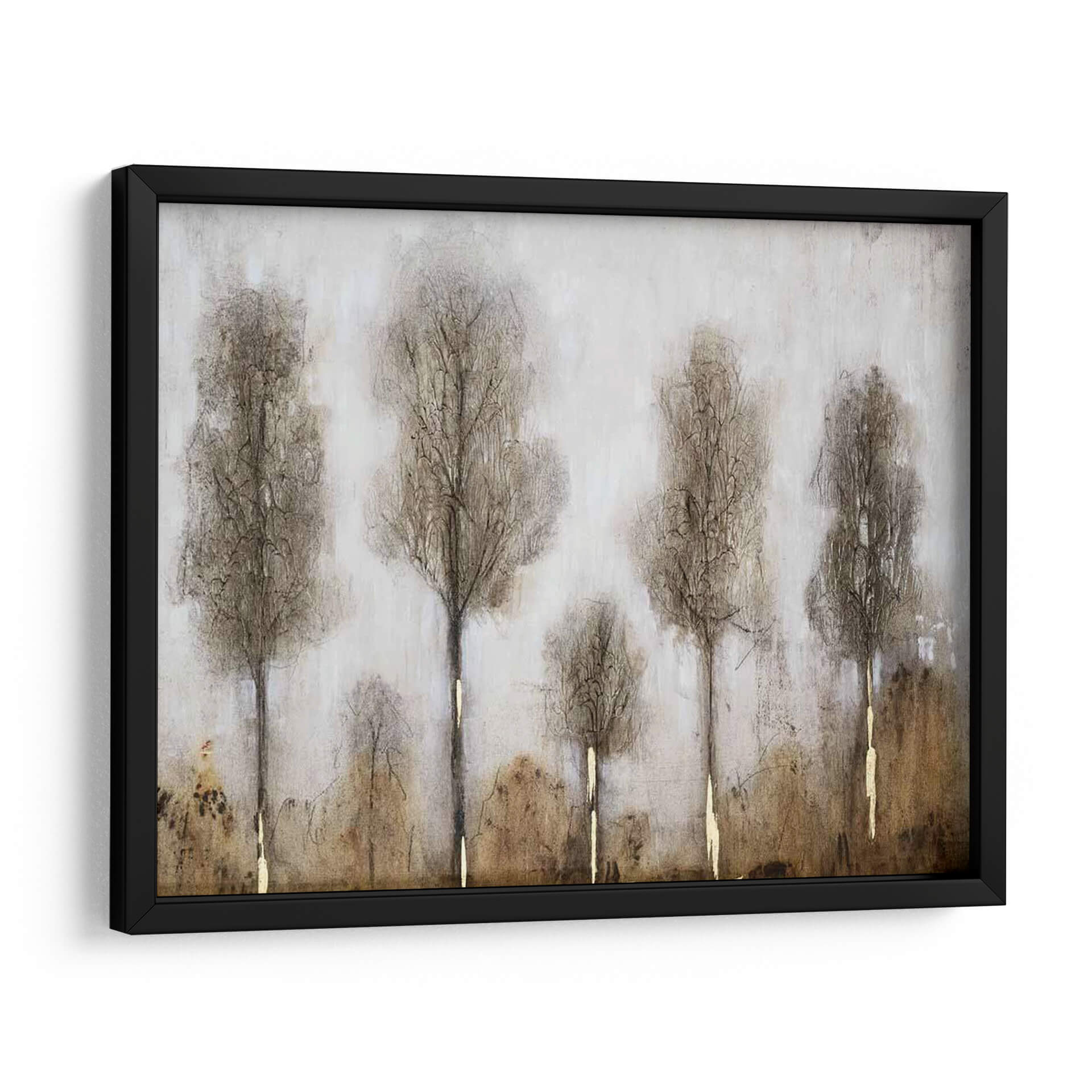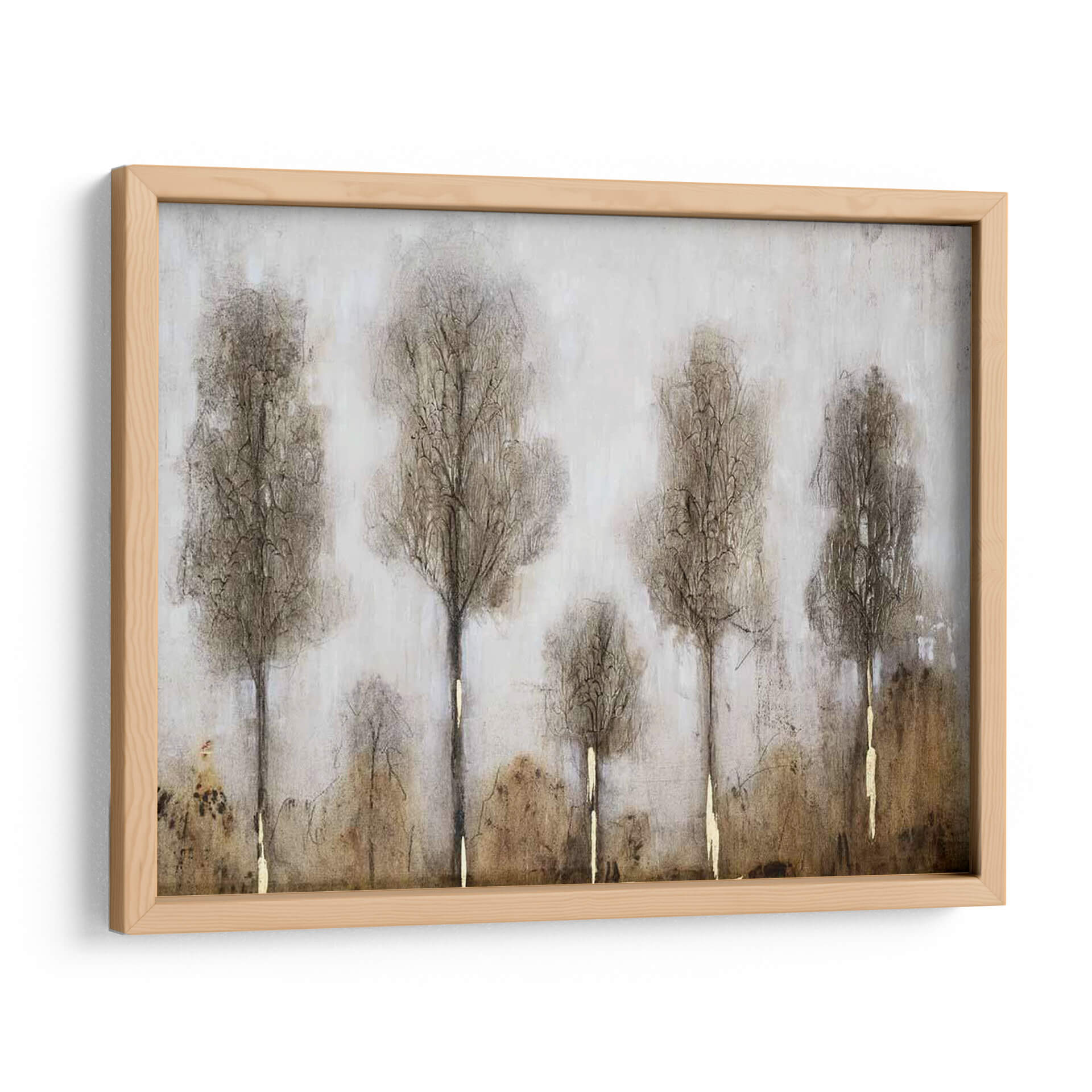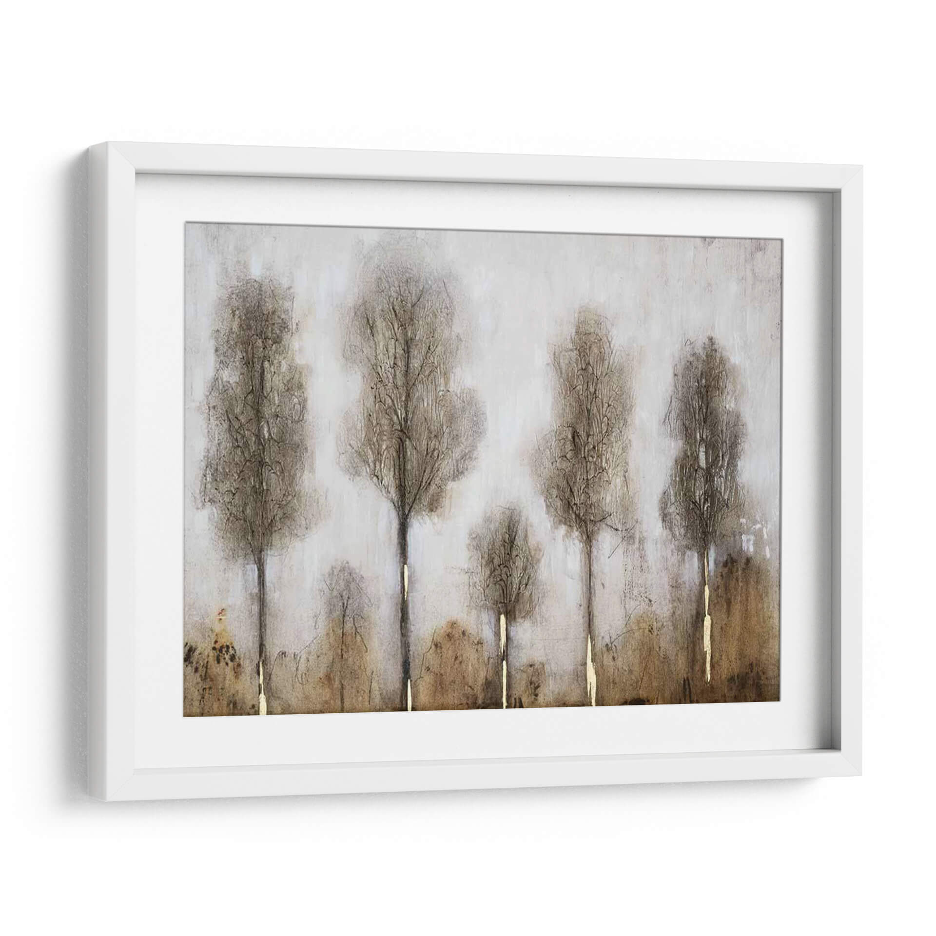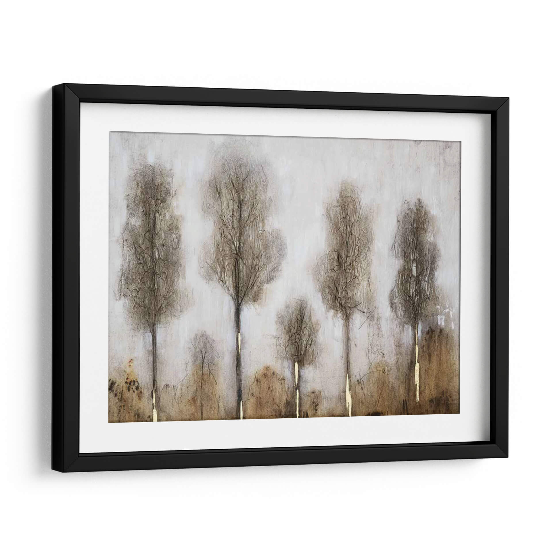 Sumérgete en la serena atmósfera de "Día Gris I", una cautivadora obra de arte que evoca la quietud de un paisaje otoñal o invernal. El artista Tim O'Toole ha capturado magistralmente la esencia de los árboles esbeltos y desnudos, cuyas siluetas se alzan contra un fondo etéreo y texturizado. La paleta de colores se centra en tonos tierra, grises suaves y sutiles toques dorados que aportan un brillo inesperado a la composición, creando un equilibrio visual entre la melancolía y la esperanza. La técnica utilizada, que mezcla trazos delicados y texturas sutiles, dota a la pieza de una profundidad y un carácter únicos. "Día Gris I" es más que un simple cuadro decorativo; es una invitación a la contemplación, perfecta para añadir un toque de elegancia sobria y naturaleza introspectiva a tu hogar u oficina. Ideal para espacios que buscan transmitir calma y sofisticación, este cuadro es una pieza versátil que complementará una variedad de estilos decorativos, desde el moderno minimalista hasta el rústico contemporáneo, aportando una sensación de paz y conexión con la naturaleza.