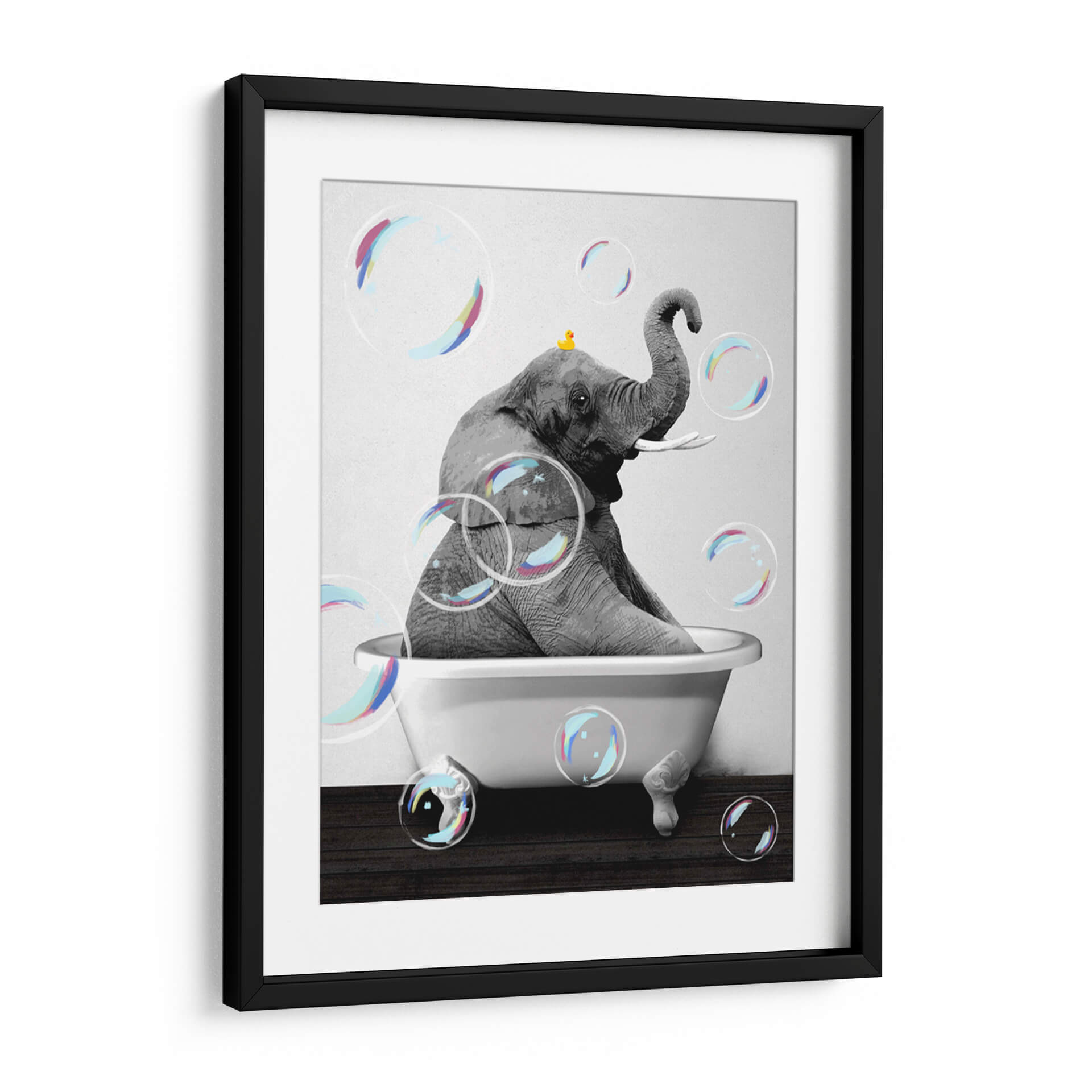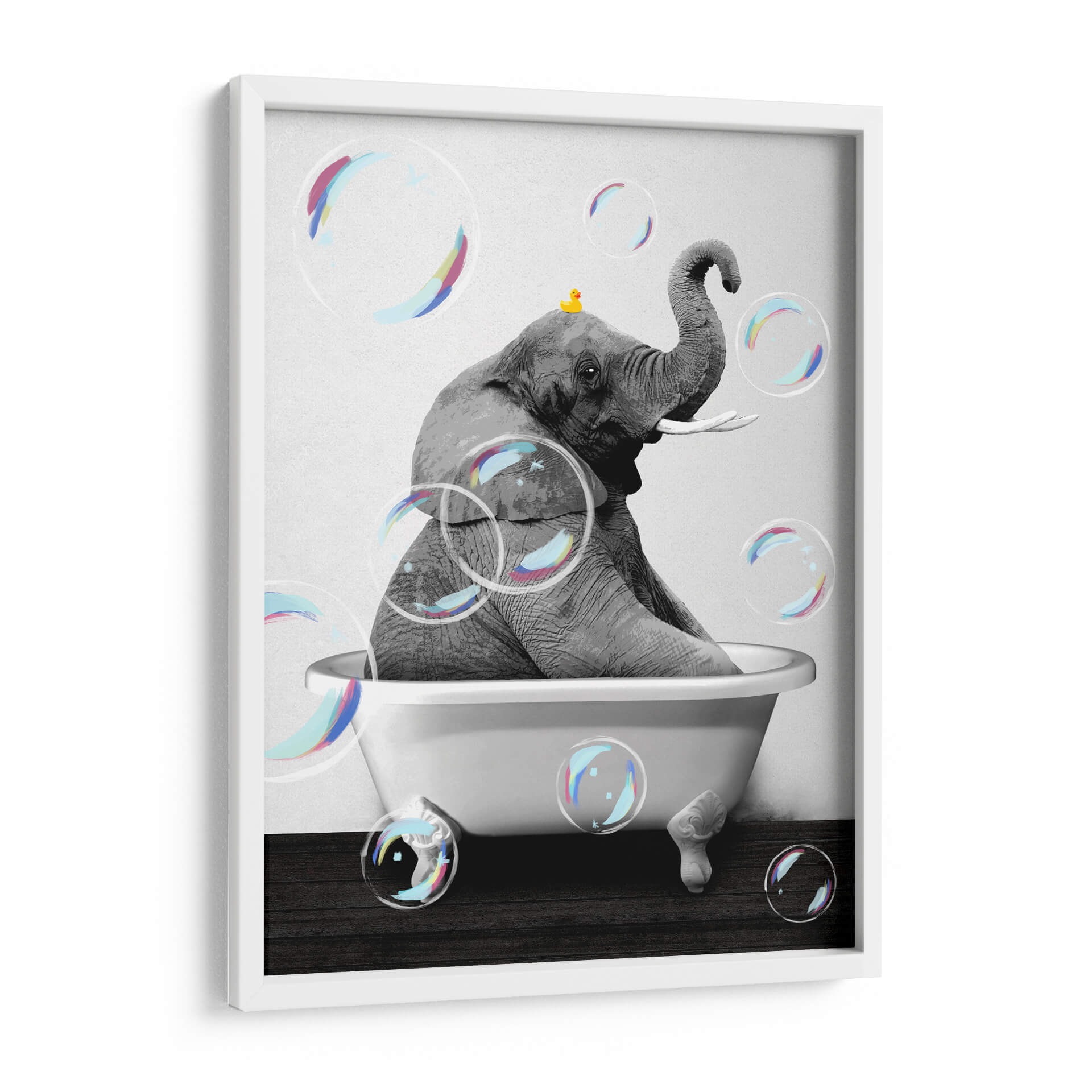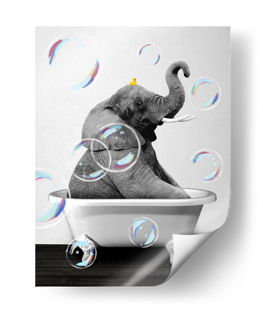 Sumérgete en la ternura y el humor con "Elephant Bath", una obra de arte digital que captura un momento lúdico y entrañable. Este cuadro decorativo presenta un majestuoso elefante disfrutando de un relajante baño, adornado con un simpático patito de goma en su cabeza y rodeado de vibrantes pompas de jabón. La paleta de colores, predominantemente en escala de grises con toques iridiscentes en las burbujas, crea una atmósfera moderna y sofisticada, a la vez que juguetona. La composición, centrada en el elefante, atrae la mirada y evoca una sensación de paz y alegría infantil. Ideal para quienes buscan añadir un toque de personalidad y calidez a su hogar u oficina, este cuadro es perfecto para salones, dormitorios, baños o incluso habitaciones infantiles. Su estilo contemporáneo se adapta a diversos entornos decorativos, desde lo minimalista hasta lo ecléctico, aportando un punto focal encantador y lleno de carácter. "Elephant Bath" no es solo una pieza decorativa, es una invitación a la sonrisa y al bienestar, transformando cualquier espacio en un rincón de felicidad visual. Descubre la magia de este cuadro decorativo y deja que su encanto conquiste tu hogar.