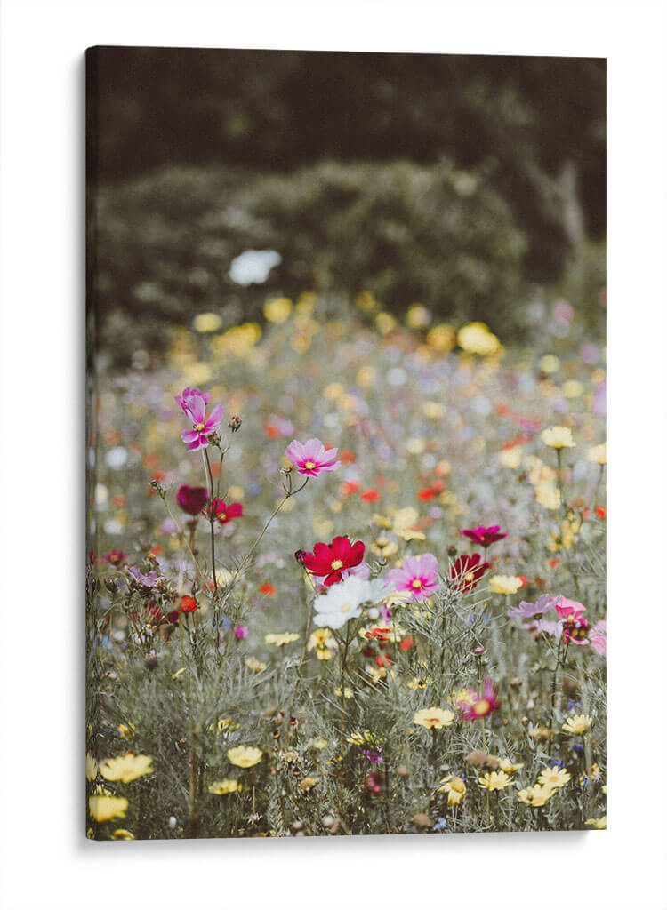 Sumérgete en la serena belleza de 'Entre el campo', una cautivadora obra de arte que captura la esencia vibrante de un prado florido. Esta pieza evoca una sensación de paz y conexión con la naturaleza, presentando una exuberante variedad de flores silvestres en plena floración. La paleta de colores es una armoniosa mezcla de rosas intensos, blancos puros, amarillos alegres y toques de burdeos, todo ello enmarcado por el verde profundo del follaje y el bokeh suave del fondo. La composición, con un enfoque delicado en las flores frontales y un desenfoque etéreo en la distancia, crea una profundidad visual que invita a perderse en el detalle. El estilo fotográfico, que recuerda a una pintura impresionista por su tratamiento de la luz y el color, transmite una atmósfera de tranquilidad y renovación. Ideal para espacios que buscan un toque de color y naturaleza, como salas de estar, dormitorios o estudios, 'Entre el campo' es perfecta para quienes desean infundir sus ambientes con la vitalidad y la calma de un día de verano.