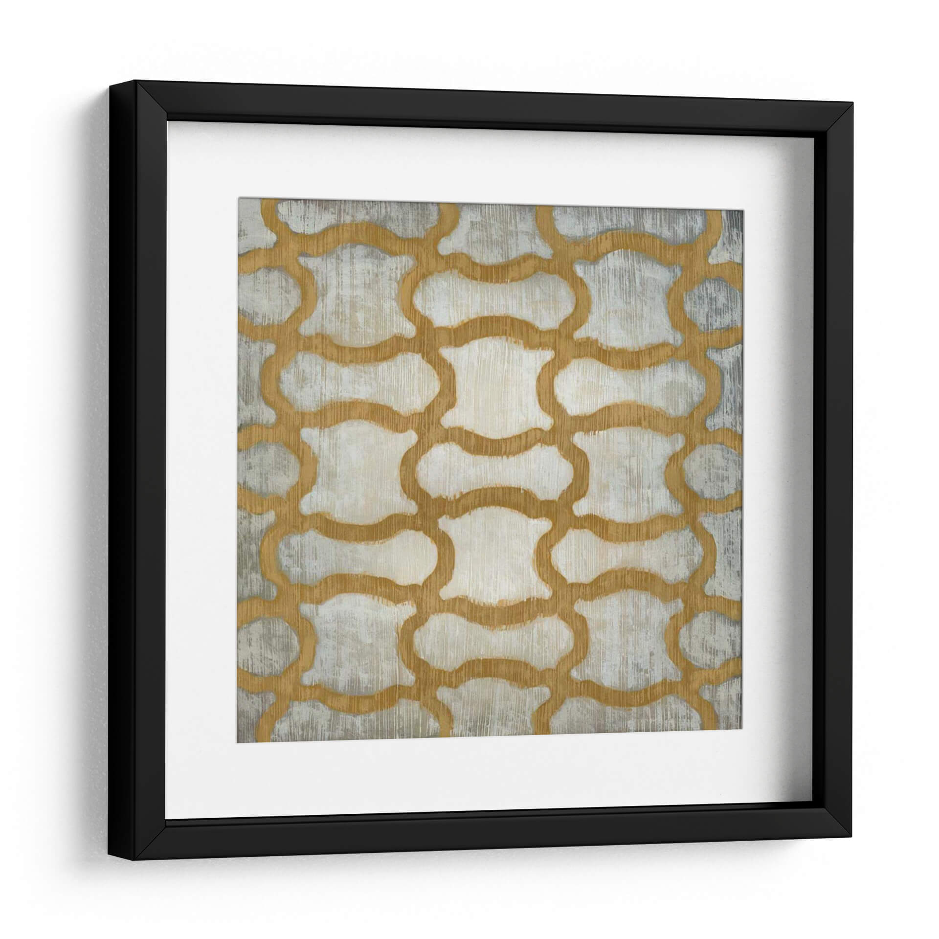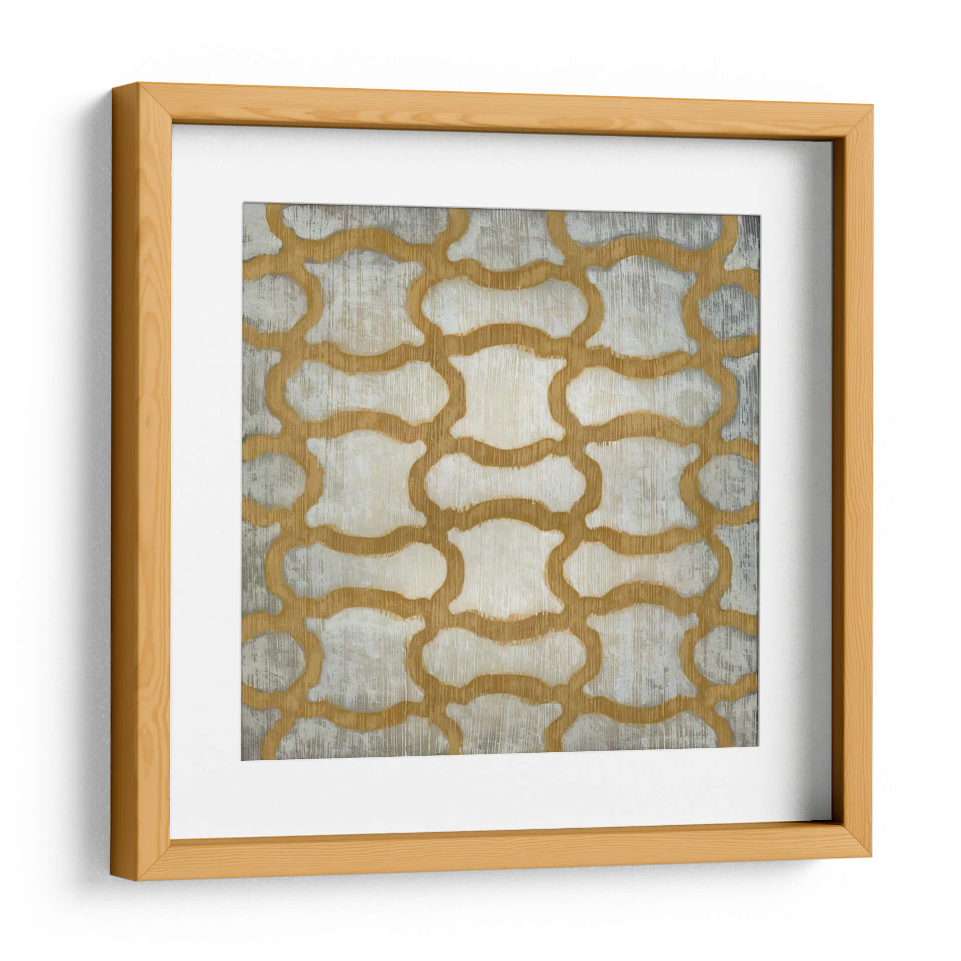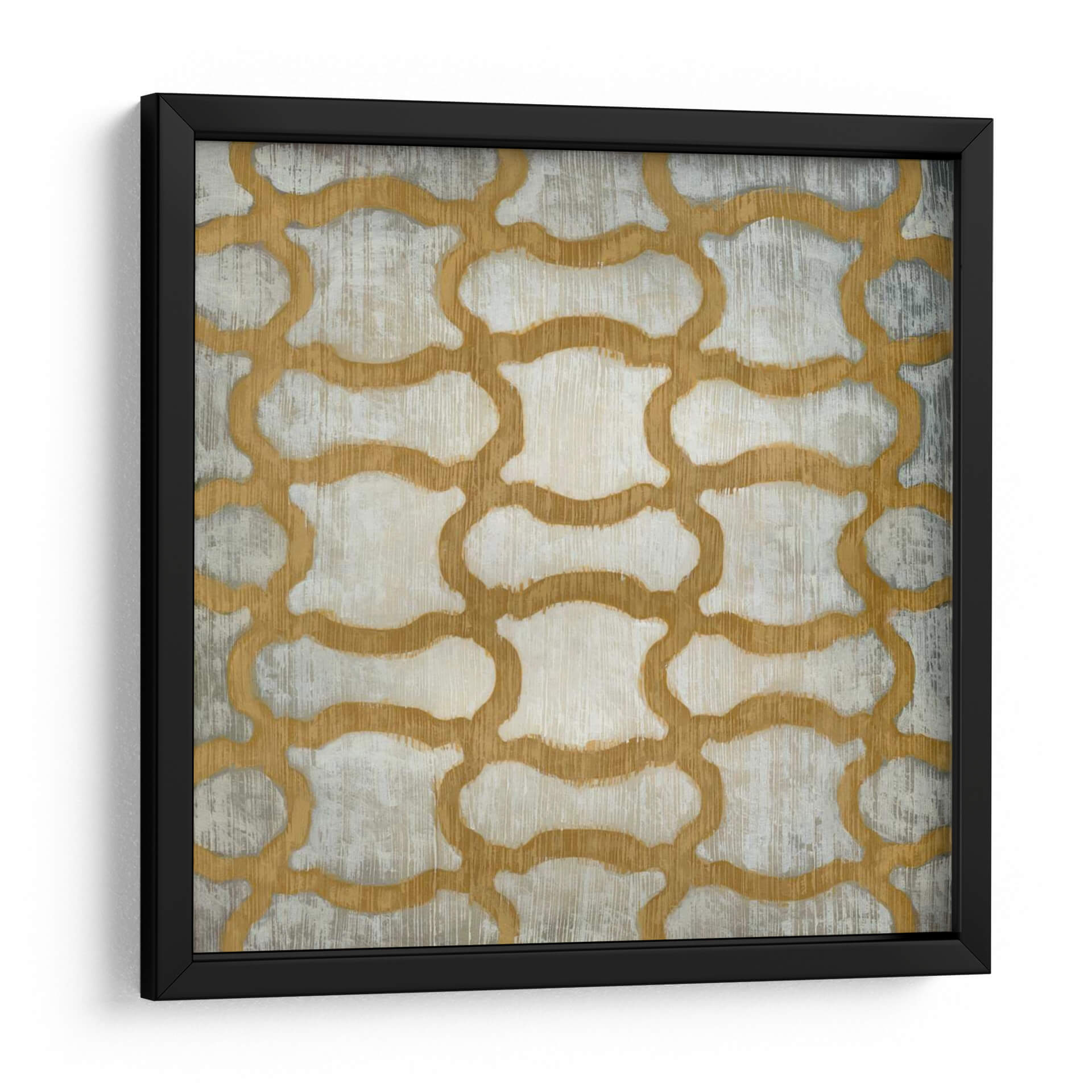 Sumérgete en la elegancia geométrica de "Espectro Simetría I" de Chariklia Zarris, una obra de arte abstracto que redefine la sofisticación visual. Este cuadro decorativo presenta un cautivador patrón de formas interconectadas, delineadas en un cálido tono dorado que contrasta sutilmente con un fondo texturizado en tonos grises y blancos rotos. La repetición rítmica del diseño evoca una sensación de orden y armonía, mientras que la pincelada visible añade una dimensión táctil y artesanal a la pieza. Es un diseño que invita a la contemplación, perfecto para añadir un toque de interés visual y serenidad a cualquier espacio. Su naturaleza abstracta y su paleta de colores versátil lo convierten en una adición excepcional para salones modernos, oficinas elegantes o incluso dormitorios que buscan un aire de calma refinada. "Espectro Simetría I" no es solo decoración, es una declaración de estilo contemporáneo y apreciación por el diseño inteligente, un punto focal que inspira y embellece tu entorno.