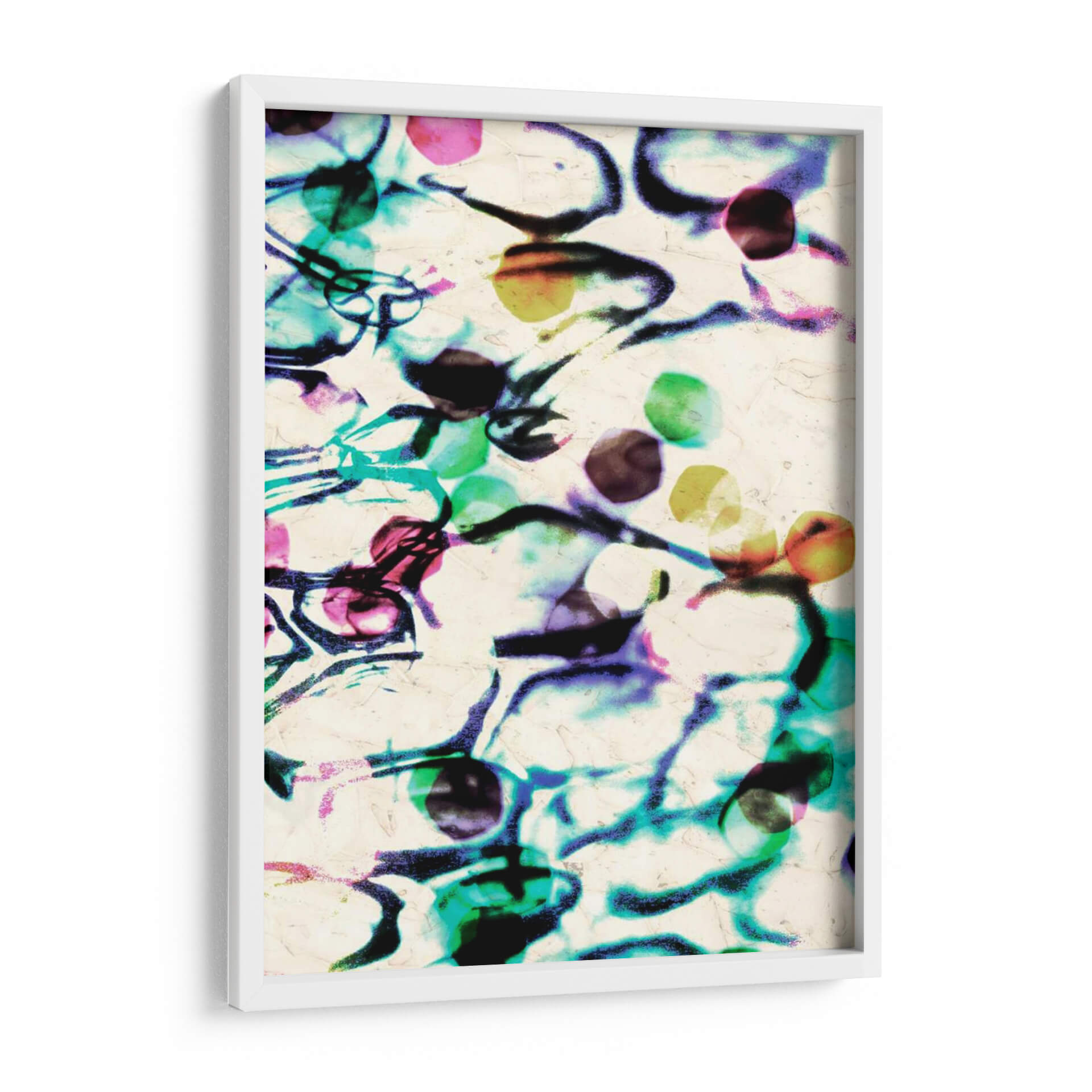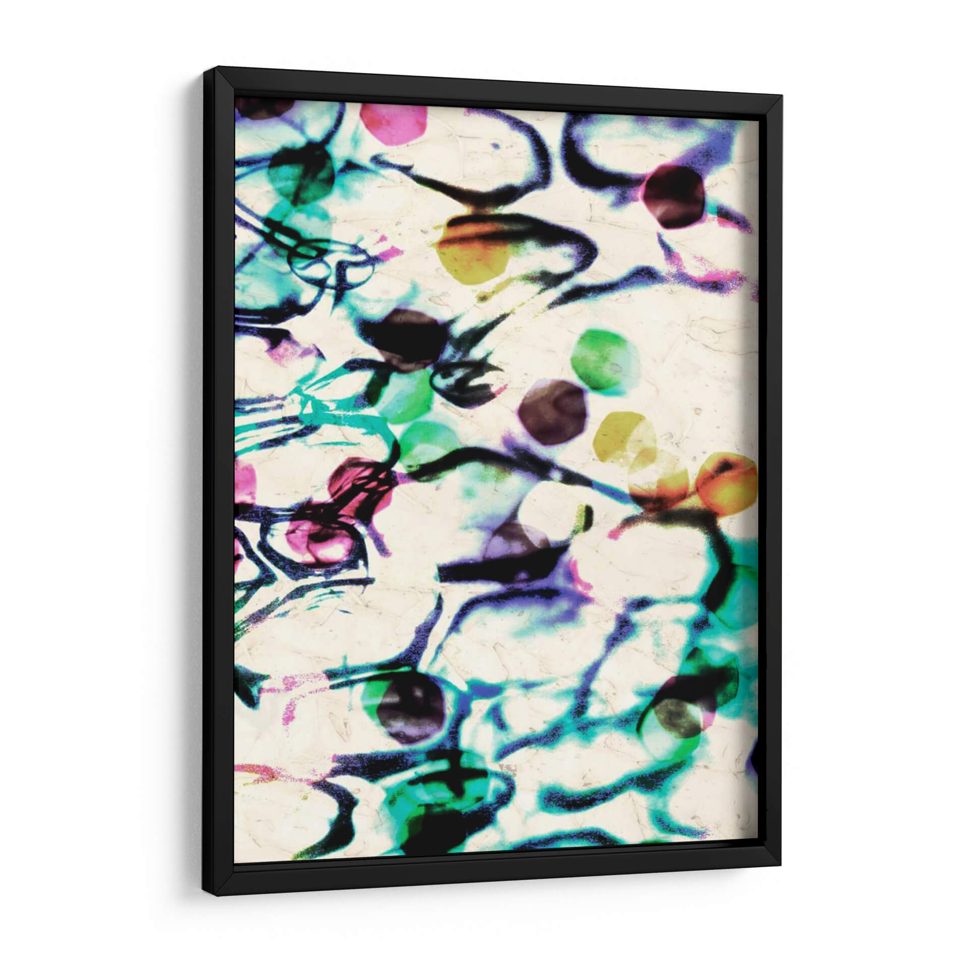Sumérgete en la vibrante y enigmática obra "Extracto De La Burbuja II" de Pam Ilosky, una pieza de arte contemporáneo que desafía las convenciones y cautiva la mirada. Este cuadro decorativo presenta una composición abstracta y dinámica, donde fluidas pinceladas en tonos azules eléctricos, púrpuras intensos, verdes vibrantes y toques de rosa y amarillo interactúan sobre un fondo texturizado de color crema. La obra evoca una sensación de movimiento y profundidad, sugiriendo quizás un microcosmos acuático o una explosión de energía creativa. Las formas orgánicas y las salpicaduras de color crean una atmósfera fascinante, que puede interpretarse de múltiples maneras, invitando a la reflexión y al asombro. "Extracto De La Burbuja II" es ideal para aquellos que buscan añadir un punto focal audaz y lleno de personalidad a su hogar u oficina. Su estilo moderno y abstracto lo convierte en una elección perfecta para espacios contemporáneos, salas de estar, estudios o incluso oficinas creativas, aportando un toque de sofisticación y originalidad. Transforma tu pared en una ventana a un universo de color y forma.
