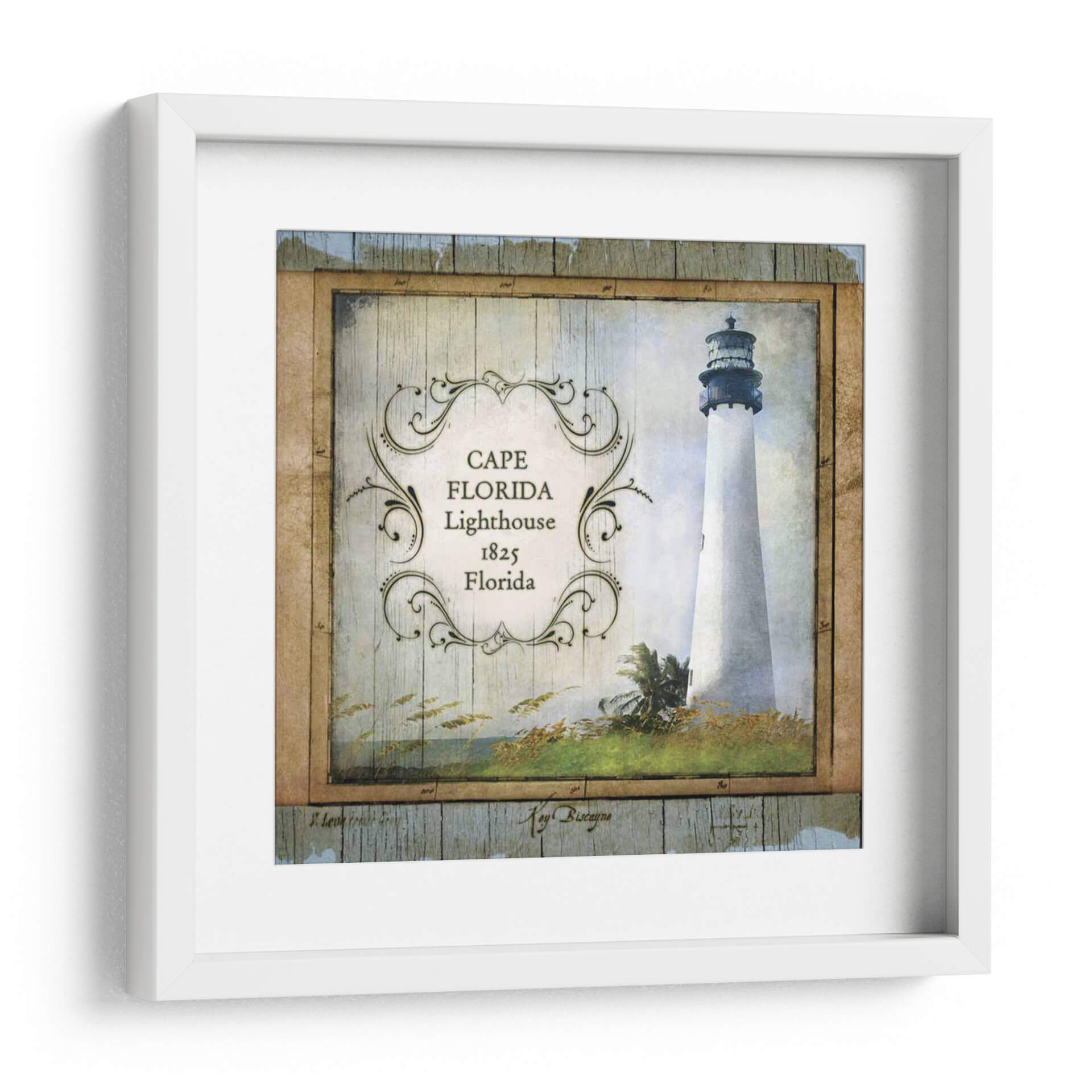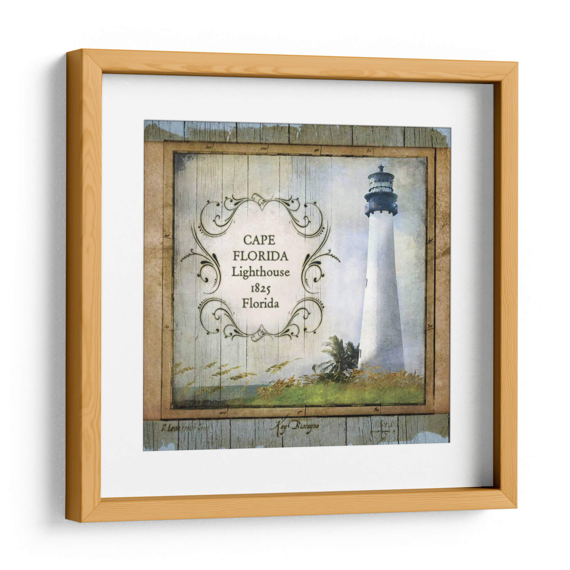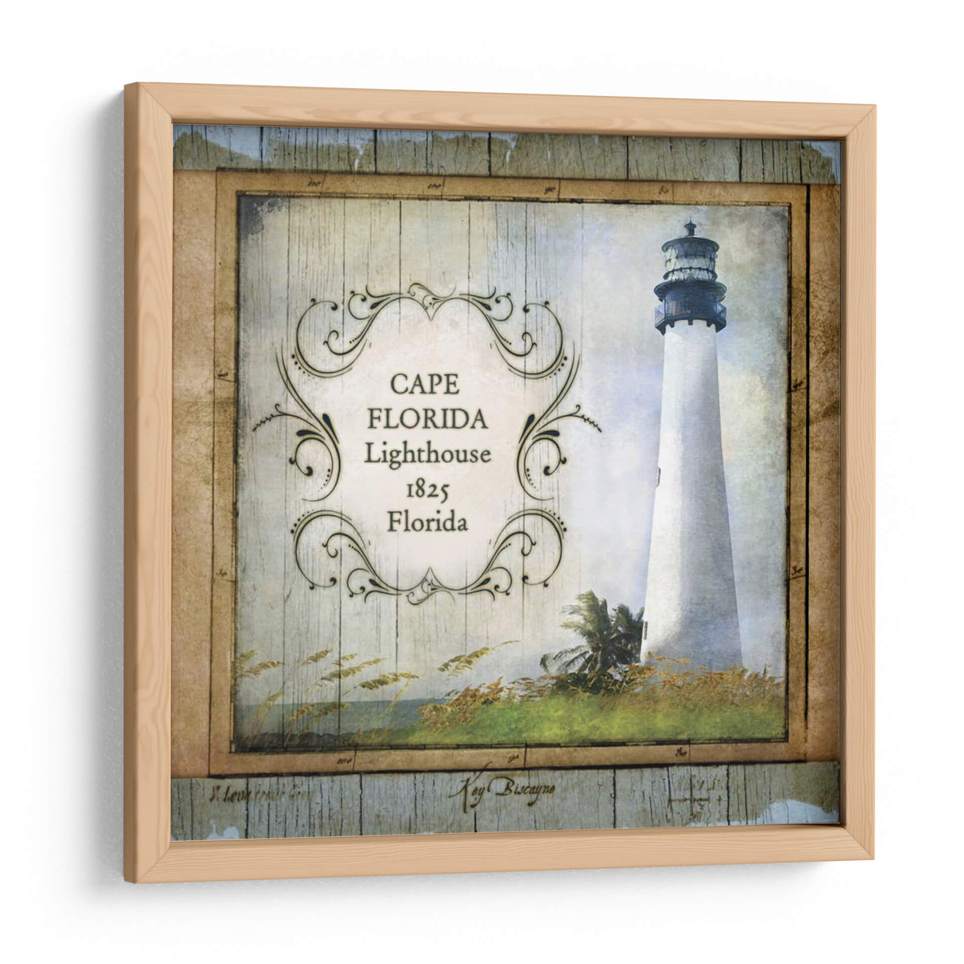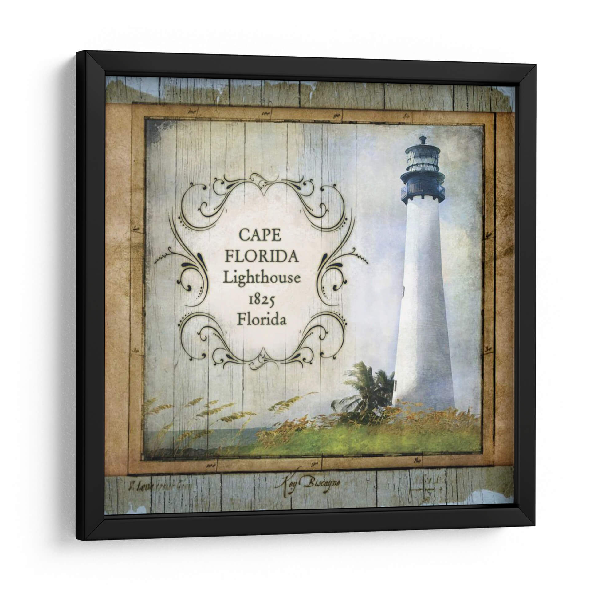 Embellece tu espacio con el cuadro decorativo 'Faro De Florida Iii', una obra que evoca la serenidad y el encanto costero. Esta pieza, creada por Beth Anne Creative, presenta un icónico faro blanco que se alza majestuoso contra un cielo nublado, flanqueado por exuberante vegetación tropical y dunas doradas. La paleta de colores, dominada por tonos azules pálidos, verdes naturales y ocres, crea una atmósfera de calma y nostalgia, transportándote directamente a la brisa marina. El diseño se enriquece con un marco envejecido y un detalle de texto que añade un toque vintage y geográfico, mencionando 'Cape Florida Lighthouse 1825 Florida'. Este cuadro es ideal para añadir un punto focal tranquilo y evocador a tu sala de estar, dormitorio, oficina o cualquier rincón que necesite una dosis de serenidad costera. Su estilo, que combina elementos realistas con un acabado texturizado, lo convierte en una adición versátil para decoraciones costeras, rústicas o incluso modernas que buscan un toque de historia.