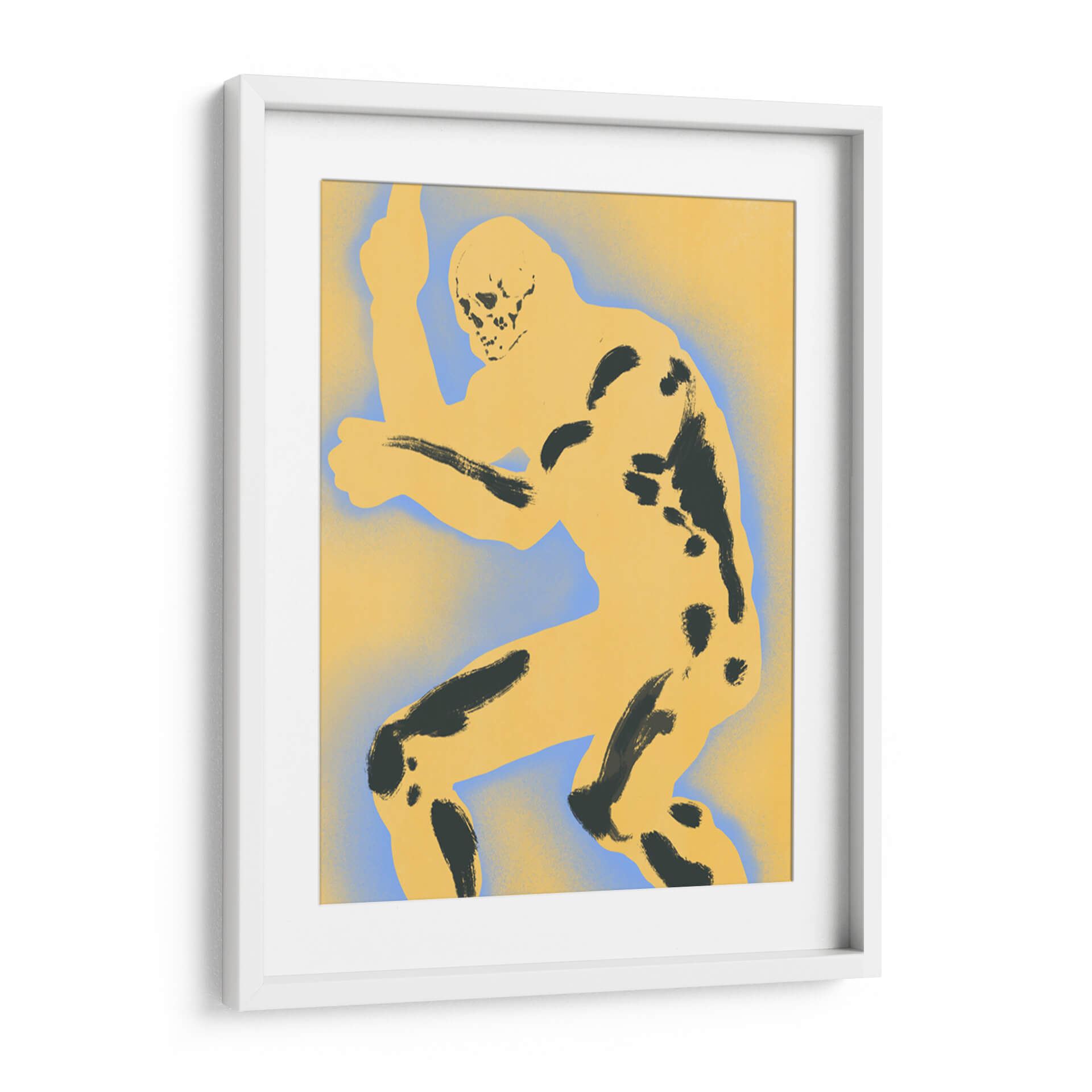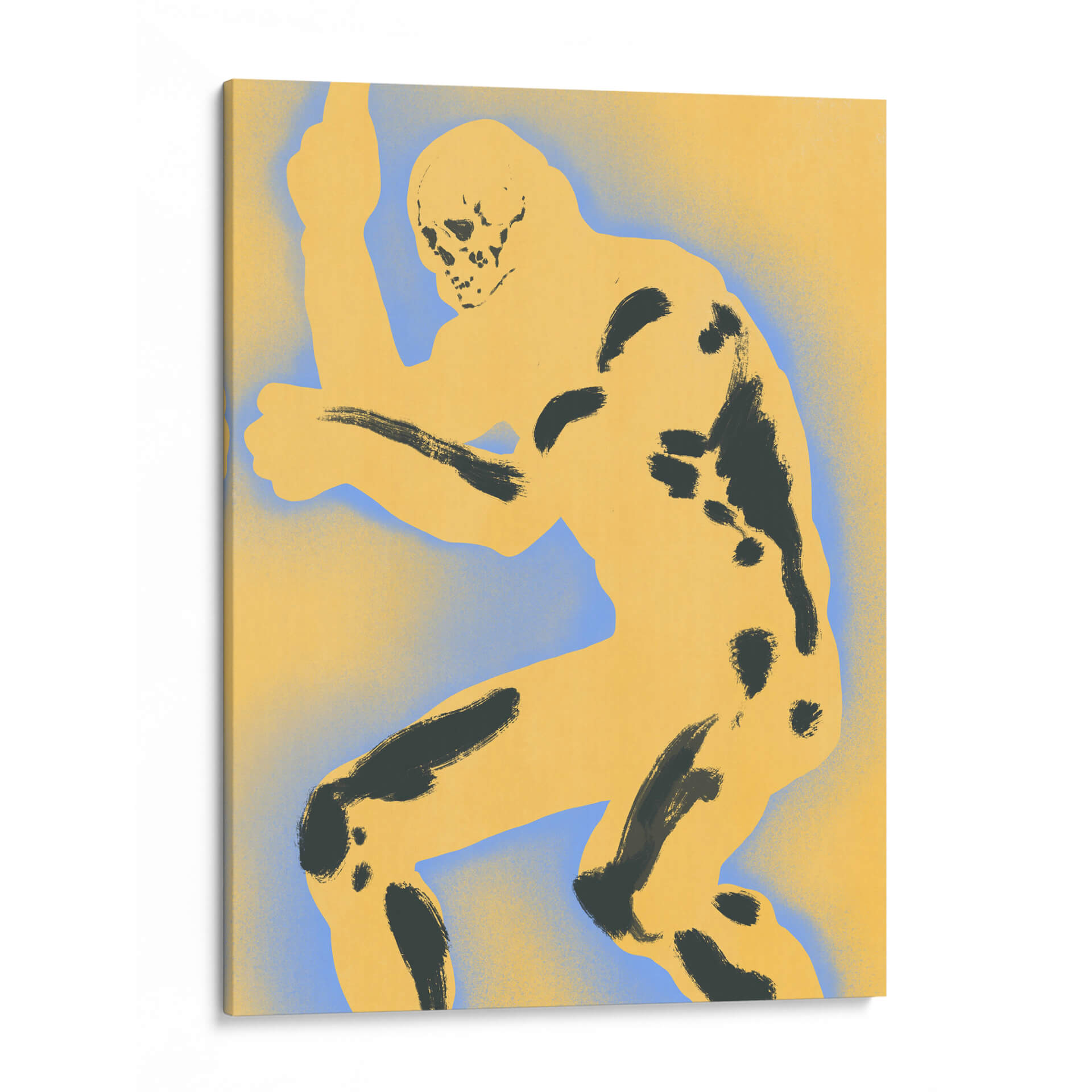 Sumérgete en la enigmática energía de "Figura esquelética en pose dinámica", una obra de arte contemporáneo que desafía las convenciones. Esta pieza visualmente impactante presenta una silueta esquelética estilizada en un movimiento audaz, capturada con pinceladas gruesas y expresivas en tonos oscuros que contrastan dramáticamente con un vibrante fondo amarillo y azul degradado. El artista, Little Dean, explora la dualidad entre la fragilidad de la existencia y la fuerza vital que emana de la figura. La composición dinámica y la paleta de colores audaces crean una atmósfera de intensidad y misterio, perfecta para quienes buscan un toque de originalidad y profundidad en su decoración. Este cuadro decorativo es ideal para espacios que buscan un punto focal audaz, como salas de estar modernas, estudios creativos u oficinas que desean inspirar conversación y reflexión. Su estilo abstracto con toques expresionistas lo convierte en una pieza versátil, capaz de complementar tanto ambientes vanguardistas como aquellos que buscan romper con lo tradicional. Transforma tu pared en una declaración de estilo y personalidad con esta obra que evoca movimiento, vida y un toque de lo macabro.