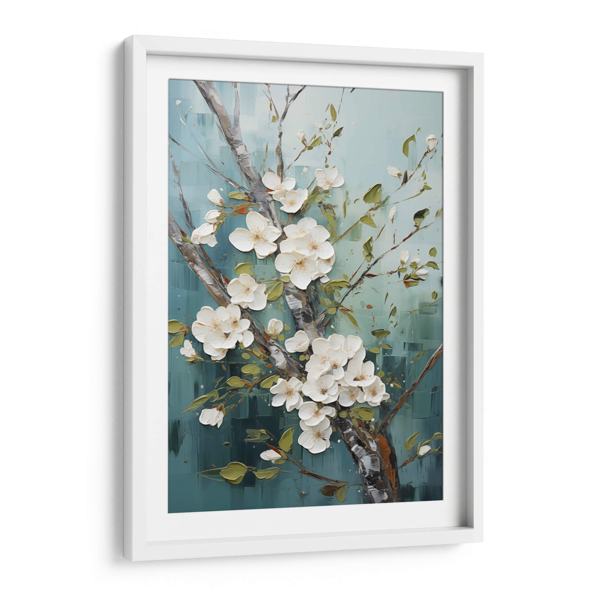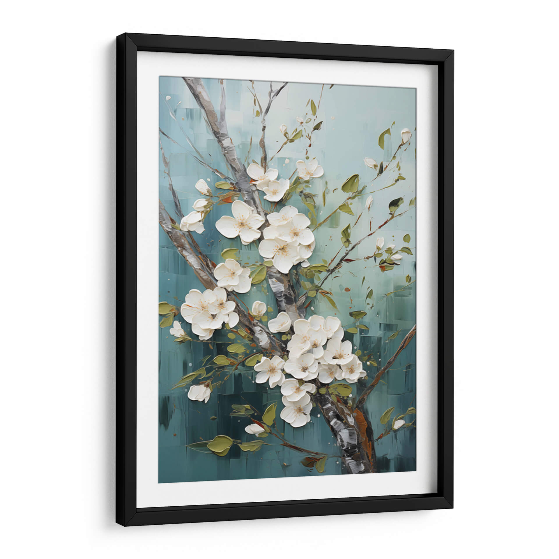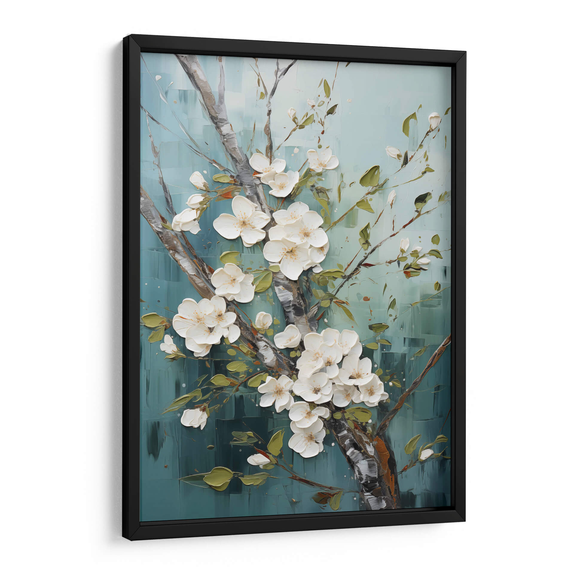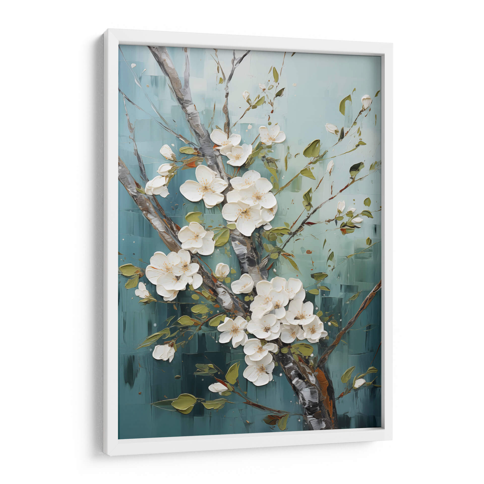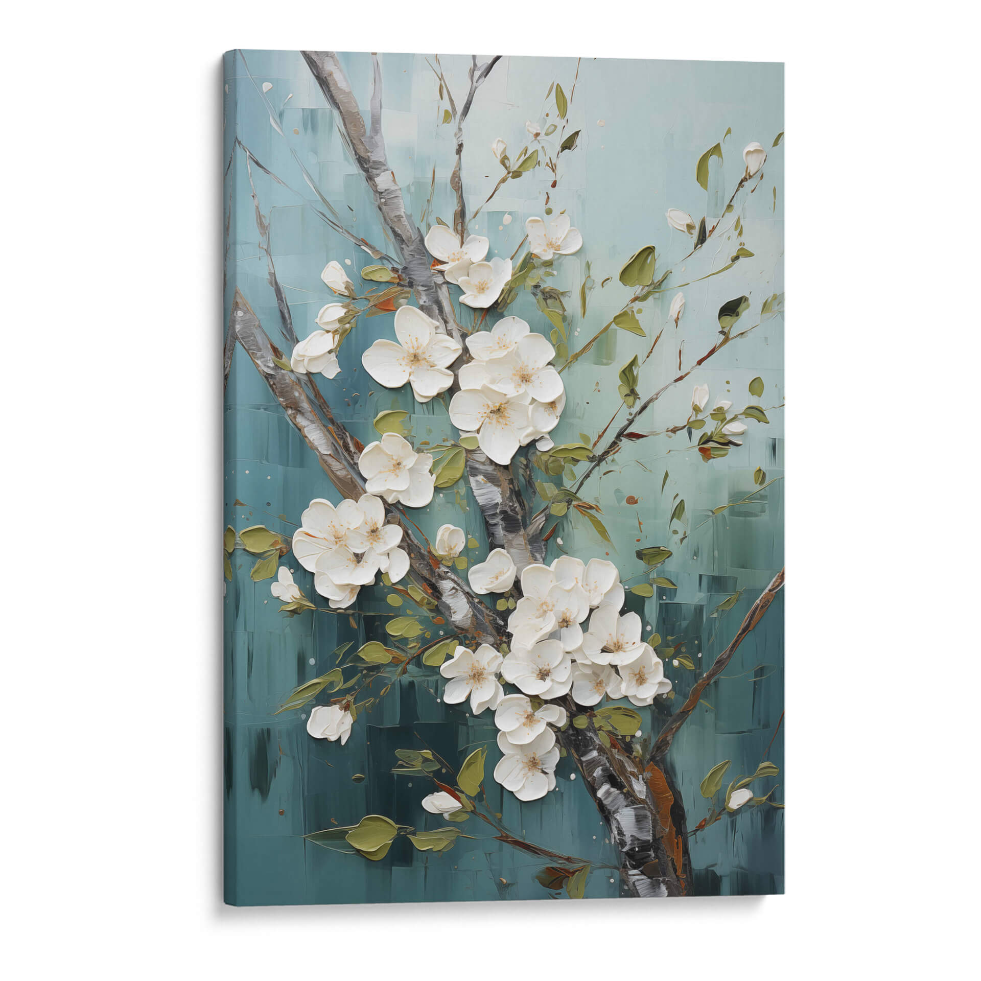 Captura la serenidad de la naturaleza con este cautivador cuadro decorativo titulado "Flores y Hojas", una obra maestra del artista Dav Madrid. La pieza presenta un delicado despliegue de flores blancas, con pétalos texturizados que parecen emerger del lienzo, ancladas a ramas de tronco rugoso en tonos grises y marrones. El fondo, bañado en una paleta de verdes azulados y turquesas profundos, crea una atmósfera de calma y profundidad, contrastando sutilmente con los vibrantes blancos de las flores. Las pinceladas visibles añaden una cualidad táctil y moderna a la composición, invitando a la contemplación. Este cuadro decorativo es ideal para infundir paz y elegancia en cualquier espacio, desde una sala de estar moderna hasta un tranquilo dormitorio o una oficina que busque un toque de inspiración natural. "Flores y Hojas" no es solo una obra de arte, es una invitación a la tranquilidad, perfecta para quienes aprecian la belleza efímera de la primavera y desean traer esa sensación de renovación a su hogar. Añade un toque de sofisticación botánica a tu decoración con esta pieza única.