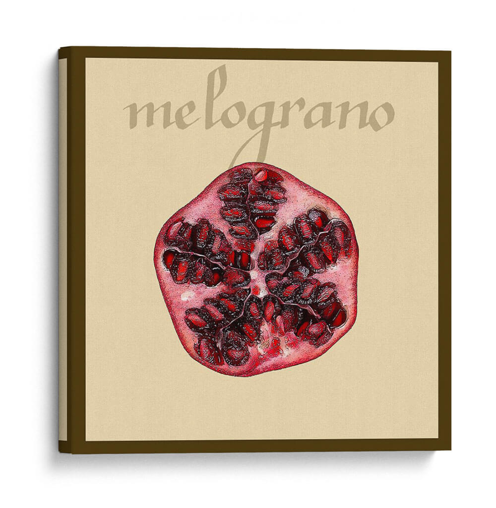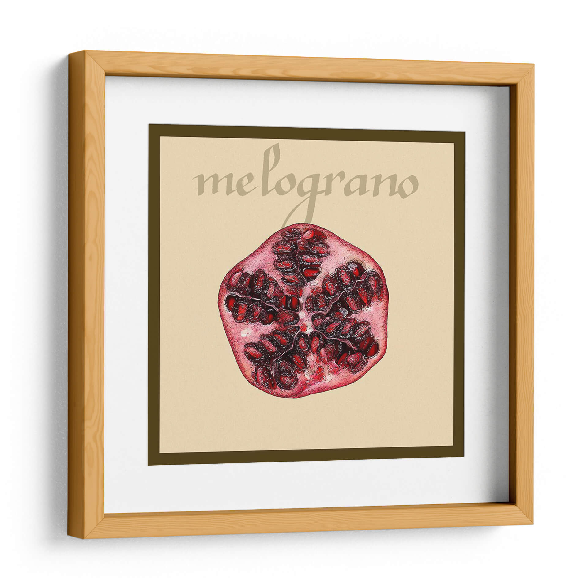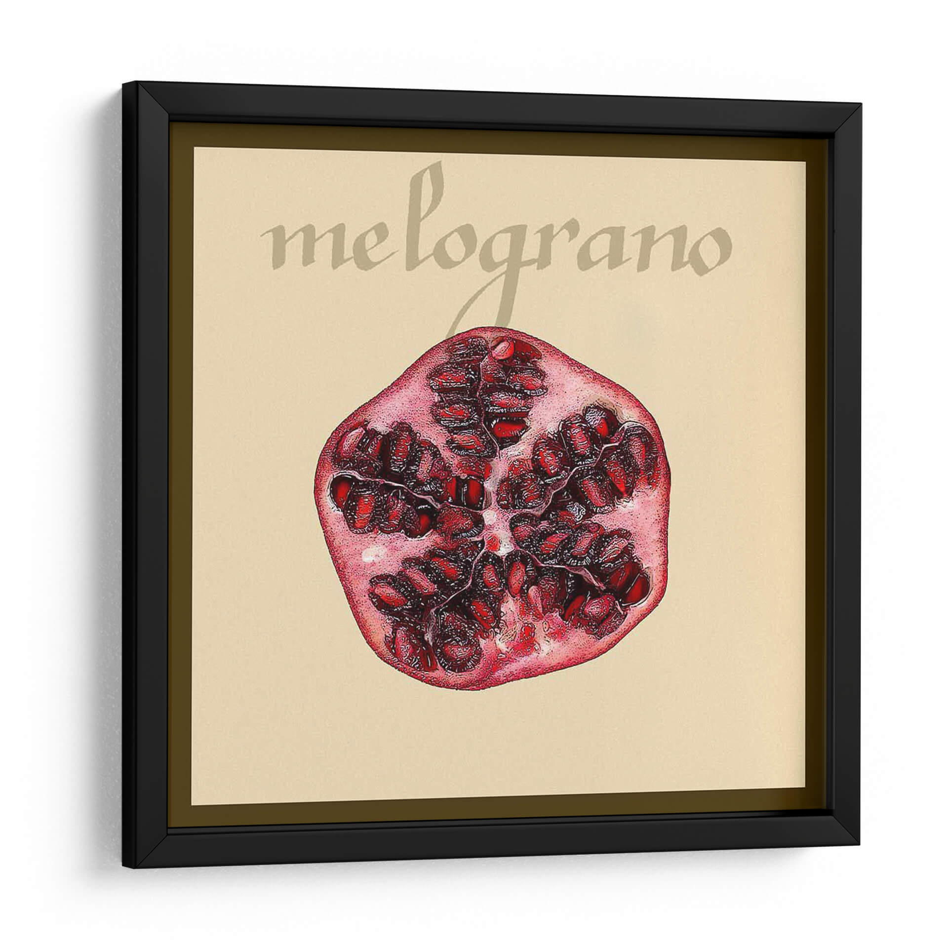 Descubre la frescura y vitalidad de la naturaleza con "Fruta Italiana I", una obra de arte decorativo que captura la esencia de una granada en su máximo esplendor. Este cuadro decorativo presenta una representación detallada y vibrante de los arilos de granada, con sus intensos tonos rojos y rosados que contrastan elegantemente sobre un fondo neutro de color beige o sepia. La composición se centra en el corte transversal de la fruta, revelando la intrincada textura de sus semillas jugosas, invitando a una contemplación casi táctil. El texto "melograno" en una tipografía cursiva y elegante añade un toque sofisticado y evocador, sugiriendo un origen mediterráneo o un estilo clásico italiano. Ideal para cocinas, comedores o espacios que busquen un toque de color y frescura, este cuadro aportará un aire de vitalidad y elegancia a tu hogar. Su estilo, que combina realismo en el detalle de la fruta con un toque estilizado en el fondo y la tipografía, lo hace versátil para diversos estilos de decoración, desde el rústico hasta el contemporáneo. Transforma tu ambiente con la belleza atemporal de "Fruta Italiana I".