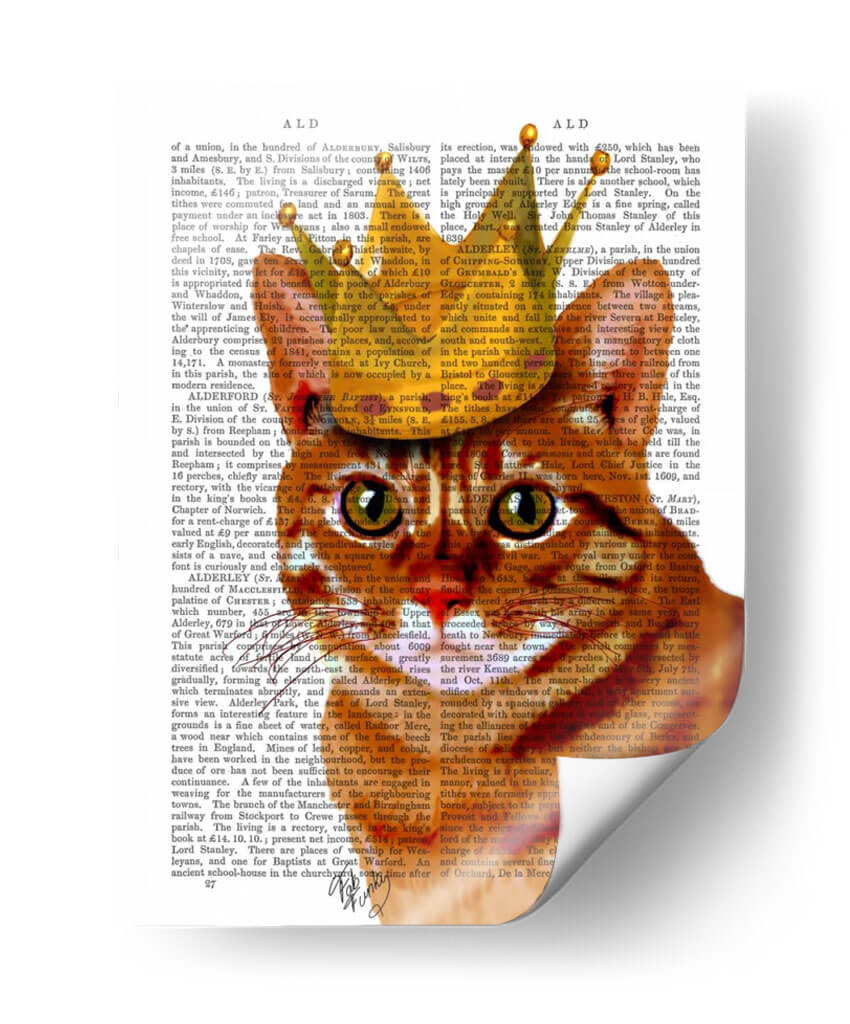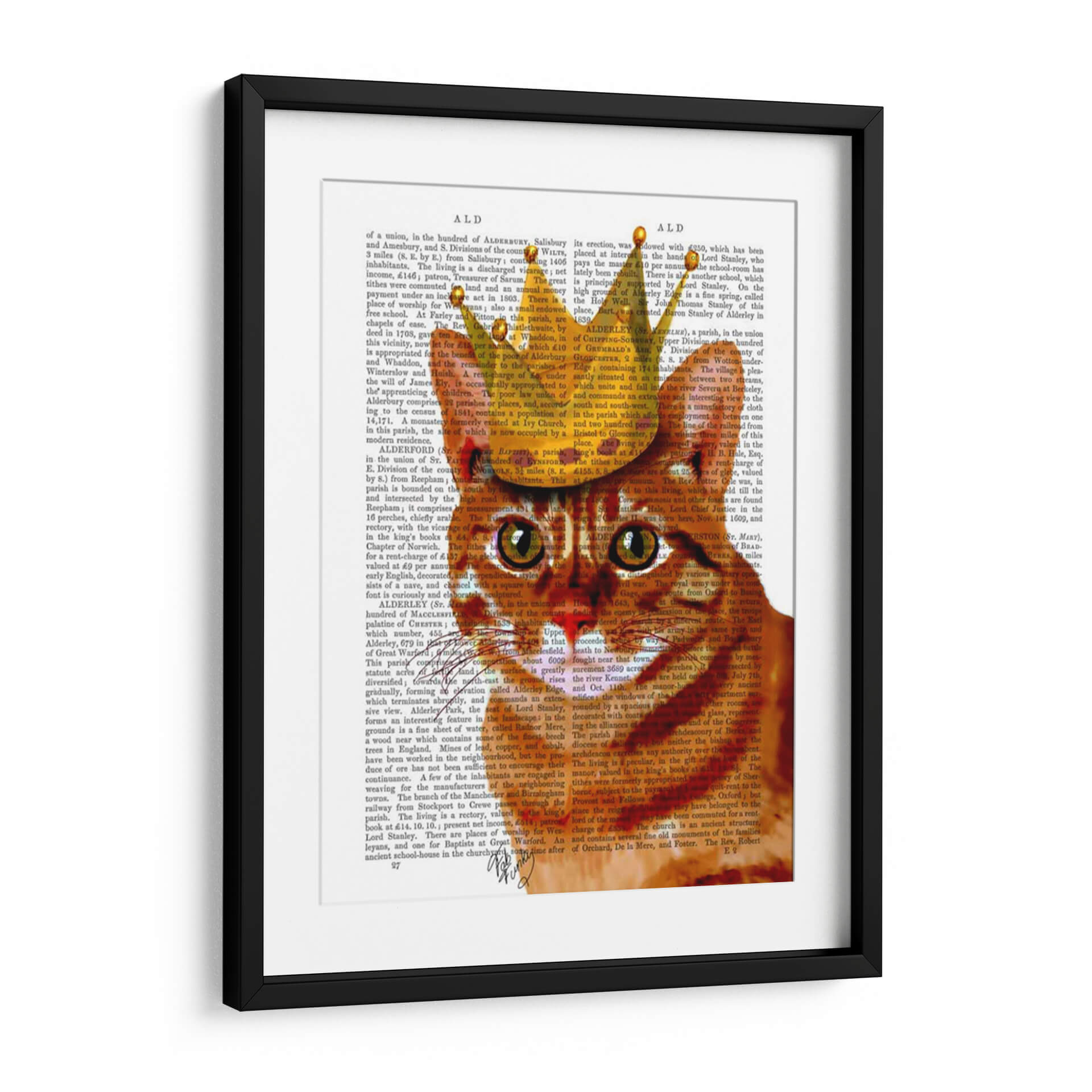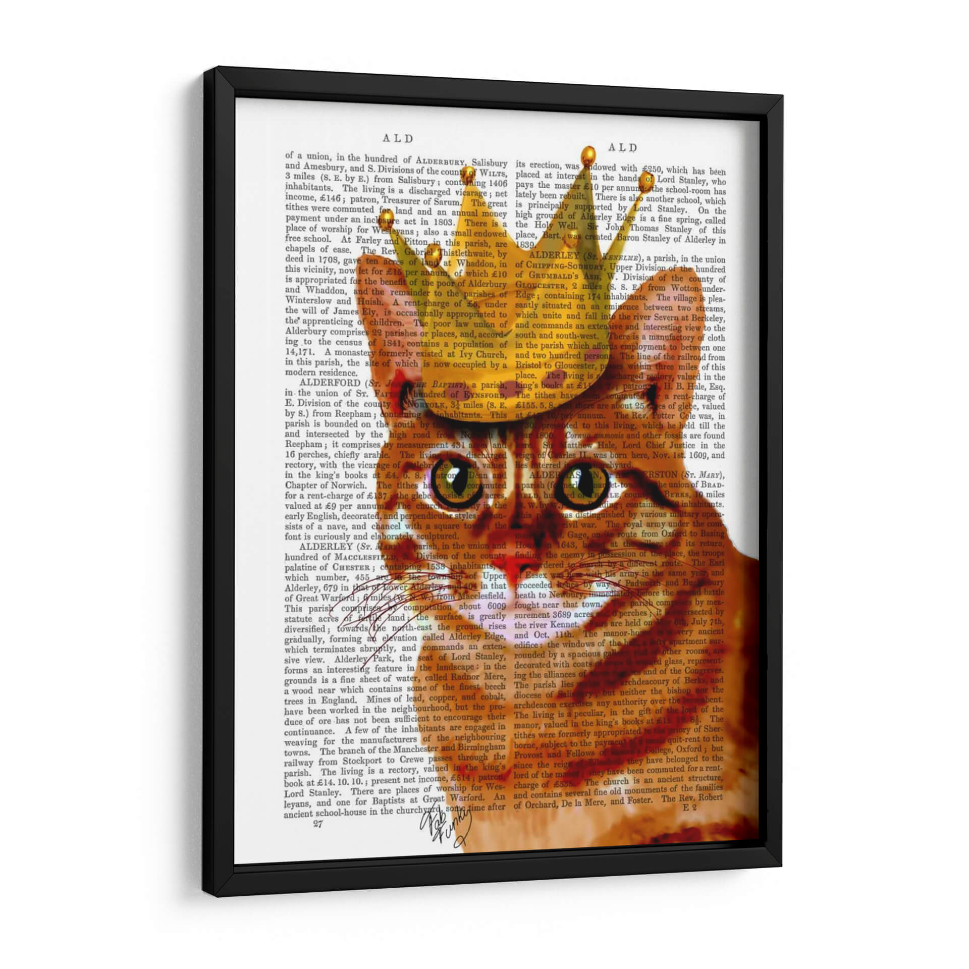 Transforma tu espacio con el encantador cuadro decorativo 'Gato de Jengibre con Corona Portrai', una obra de arte contemporáneo que combina la ternura de un felino con un toque de realeza. Este cautivador retrato, creado por el artista Fab Funky, presenta un gato de pelaje anaranjado, con ojos verdes penetrantes y una expresión serena, coronado con un distintivo adorno dorado que le confiere un aire regio. La obra está magistralmente superpuesta sobre un fondo de texto antiguo, creando una textura visual rica y un contraste fascinante entre lo moderno y lo histórico, lo que añade profundidad y carácter a la pieza. Los tonos cálidos y vibrantes del gato, combinados con los sutiles matices del texto envejecido, generan una atmósfera acogedora y sofisticada. Este cuadro decorativo es perfecto para añadir un punto de interés único y lleno de personalidad a tu sala de estar, estudio u oficina. Su estilo único, que fusiona elementos realistas con un fondo conceptual, lo convierte en una pieza de conversación ideal. Ideal para amantes de los gatos, el arte contemporáneo o aquellos que buscan una decoración de pared distintiva que evoque alegría y elegancia.