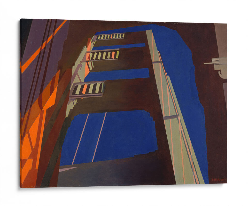 Sumérgete en la audacia arquitectónica con "Golden Gate" de Charles Sheeler, una obra maestra que redefine el arte abstracto y la decoración de interiores. Este cuadro decorativo captura la majestuosidad industrial con un juego de luces y sombras que resalta las formas geométricas y las líneas nítidas. Los vibrantes tonos azules profundos se complementan con audaces acentos anaranjados y toques sutiles de verde y púrpura, creando una composición visualmente impactante y llena de energía. El estilo precionista de Sheeler se manifiesta en la representación estilizada de estructuras, evocando una sensación de orden, modernidad y una belleza inherente en la maquinaria y la industria. "Golden Gate" es perfecto para espacios que buscan un toque de sofisticación moderna, como una sala de estar contemporánea, un estudio de diseño o una oficina ejecutiva. Su impacto visual lo convierte en un punto focal cautivador, invitando a la contemplación de la forma y la luz. Transforma tu entorno con esta pieza icónica que fusiona la fuerza industrial con la elegancia artística, añadiendo carácter y una perspectiva única a tu decoración de pared.