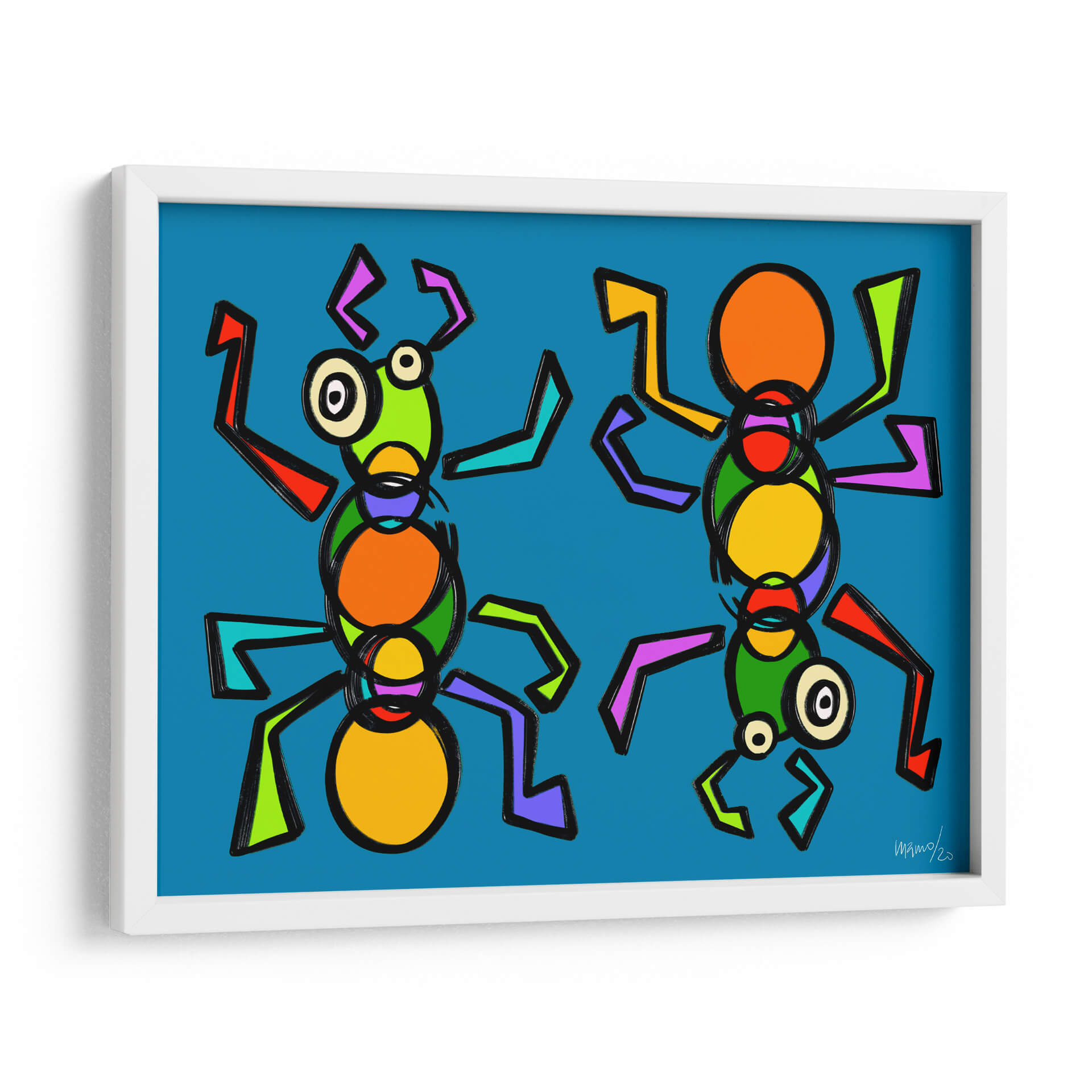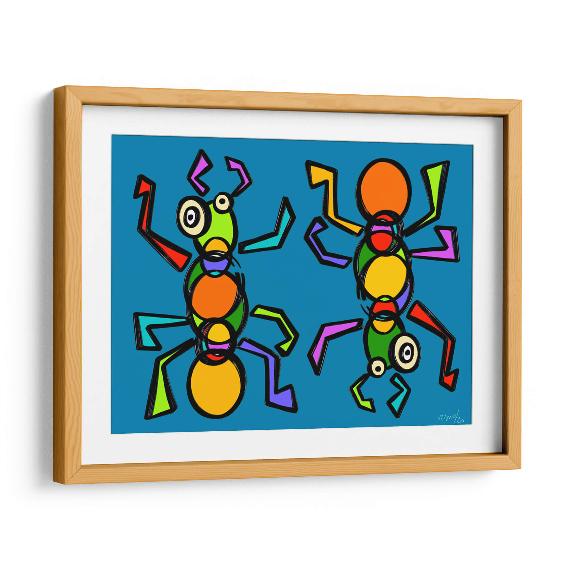 Sumérgete en el vibrante mundo de Gina Villalobos con "HORMIGAS 1", una obra de arte contemporáneo que irradia energía y un toque lúdico. Esta pieza se caracteriza por su audaz paleta de colores, donde destacan el azul eléctrico del fondo que contrasta vivamente con las figuras centrales. Compuestas por formas geométricas y orgánicas interconectadas, las hormigas estilizadas capturan la atención con sus extremidades angulares y sus expresivos ojos circulares. El estilo es inconfundiblemente moderno, con trazos gruesos y definidos que envuelven cada elemento, creando un efecto casi de vitral digital. La composición, aunque sencilla, es dinámica, con las dos figuras principales ocupando el espacio de manera equilibrada y transmitiendo una sensación de movimiento y vitalidad. "HORMIGAS 1" es perfecta para añadir un estallido de color y personalidad a cualquier sala de estar, estudio u oficina, invitando a la conversación y al disfrute visual. Esta obra de arte en lienzo es ideal para quienes buscan infundir alegría y un espíritu optimista en su decoración, celebrando la belleza de lo cotidiano a través de una perspectiva artística única y cautivadora.