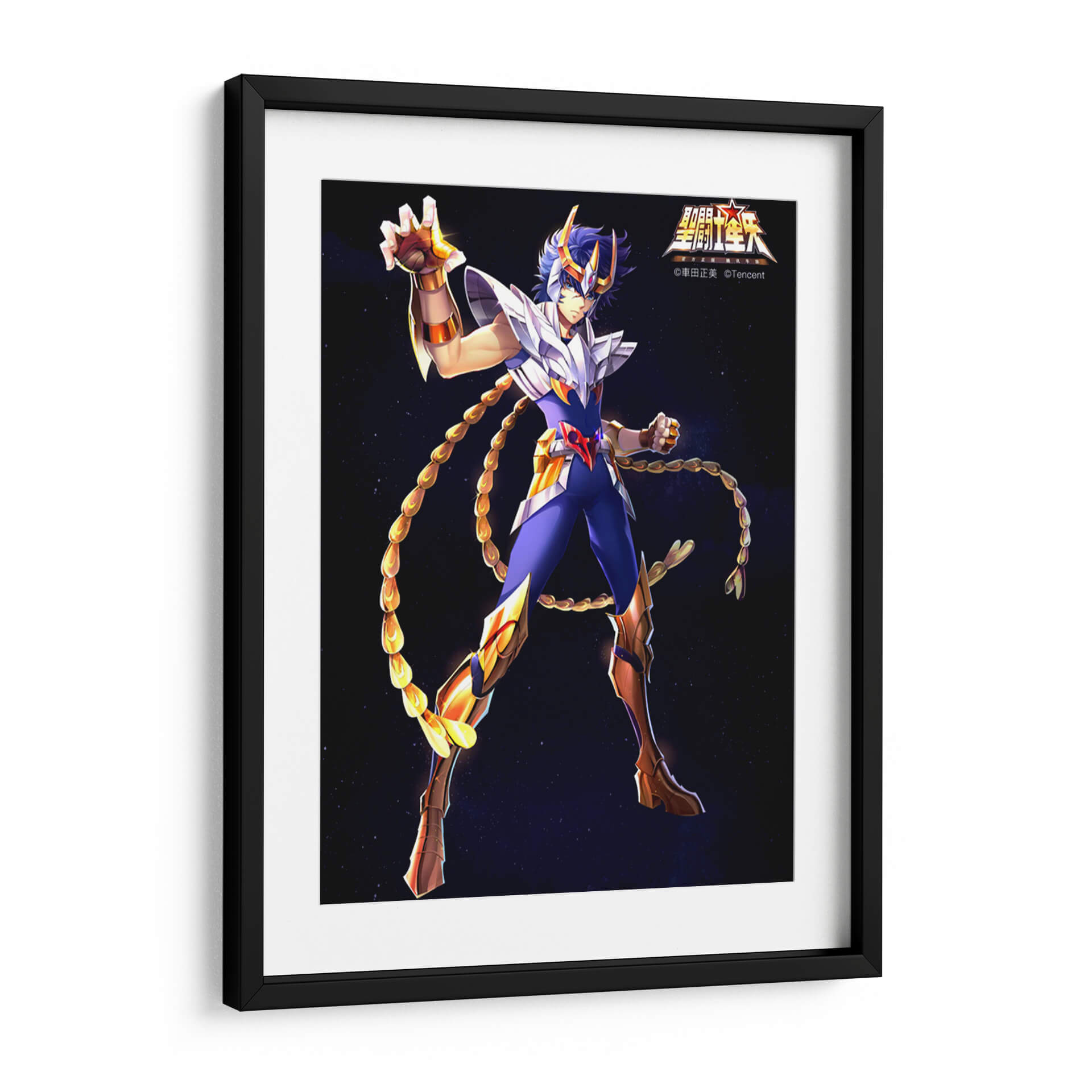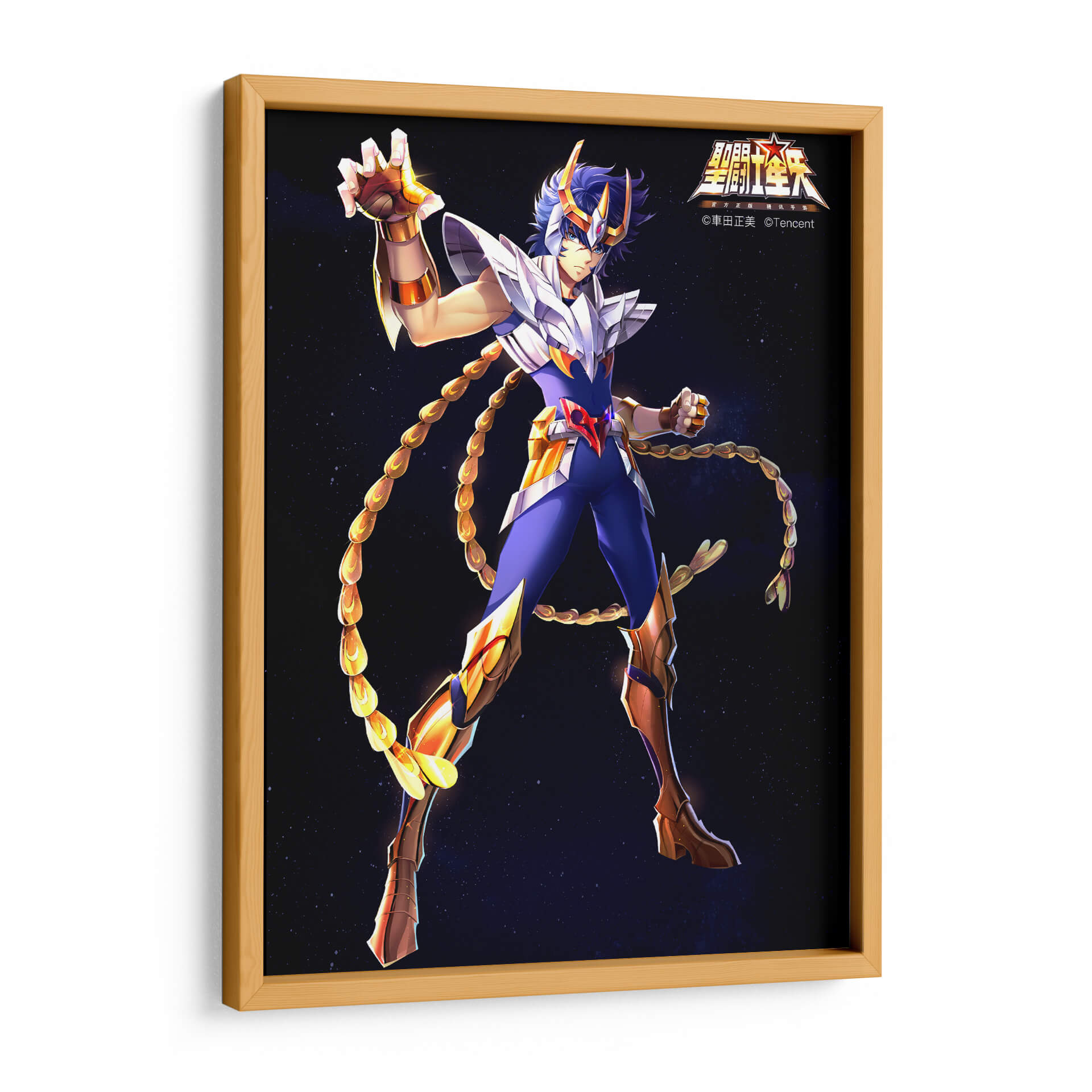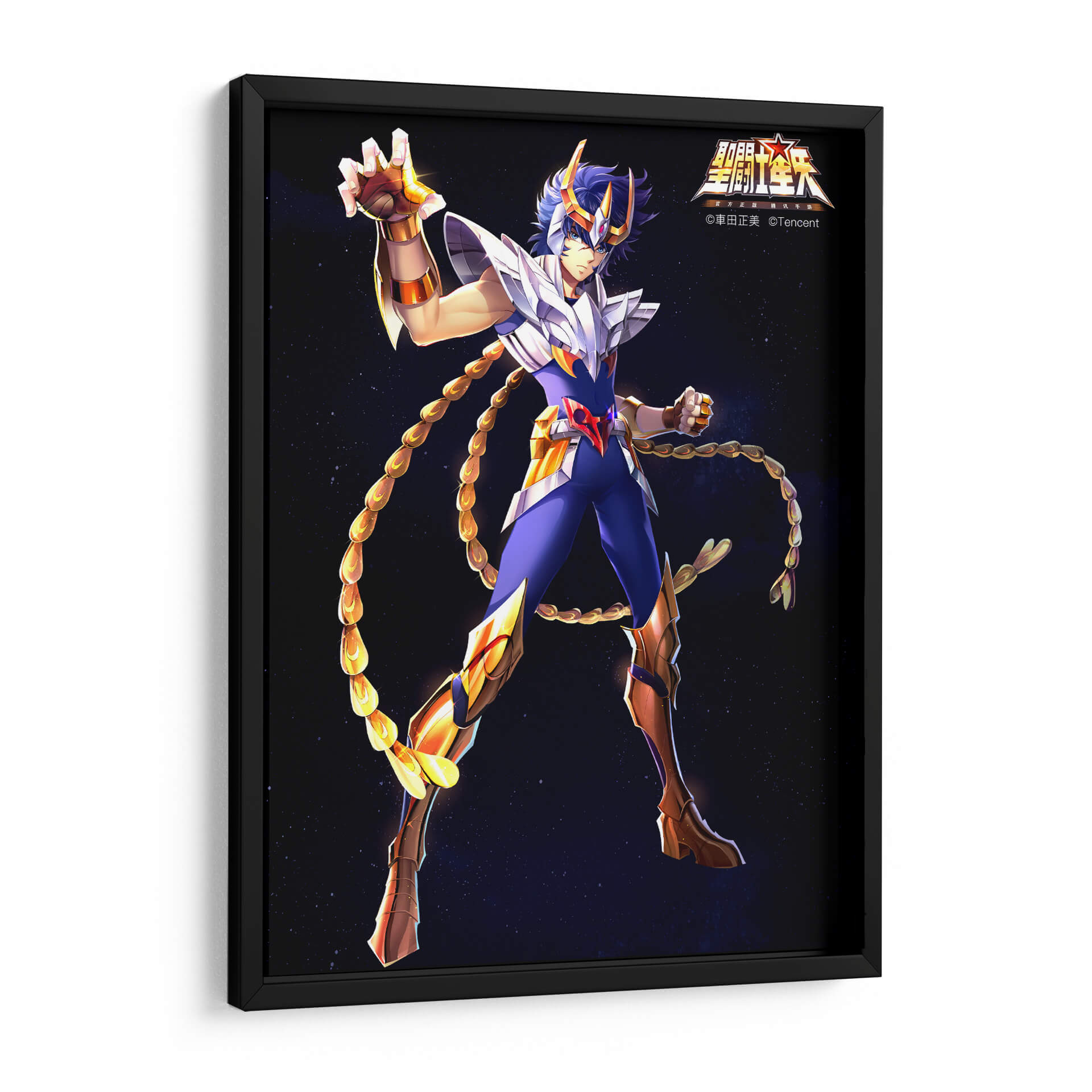 Sumérgete en el universo de la fuerza y la determinación con este impactante cuadro decorativo 'Ikki de Fénix con armadura'. Esta obra captura la esencia de un guerrero icónico, representado con una armadura detallada en tonos dorados y blancos que contrastan con el profundo azul de su traje y el misterioso fondo estrellado. Los colores vibrantes y la pose dinámica del personaje transmiten una energía inigualable, ideal para quienes buscan infundir poder y pasión en sus espacios. La composición se centra en la figura imponente, invitando a admirar cada detalle de su diseño, desde el casco majestuoso hasta las cadenas que fluyen a su alrededor, simulando el renacer del fénix. Este cuadro decorativo es perfecto para añadir un toque épico y audaz a cualquier habitación, ya sea una sala de estar moderna, un estudio de gaming o una oficina. Transforma tu entorno con este símbolo de resiliencia y coraje, una pieza que no solo decora, sino que inspira y evoca historias de valentía y victoria.
