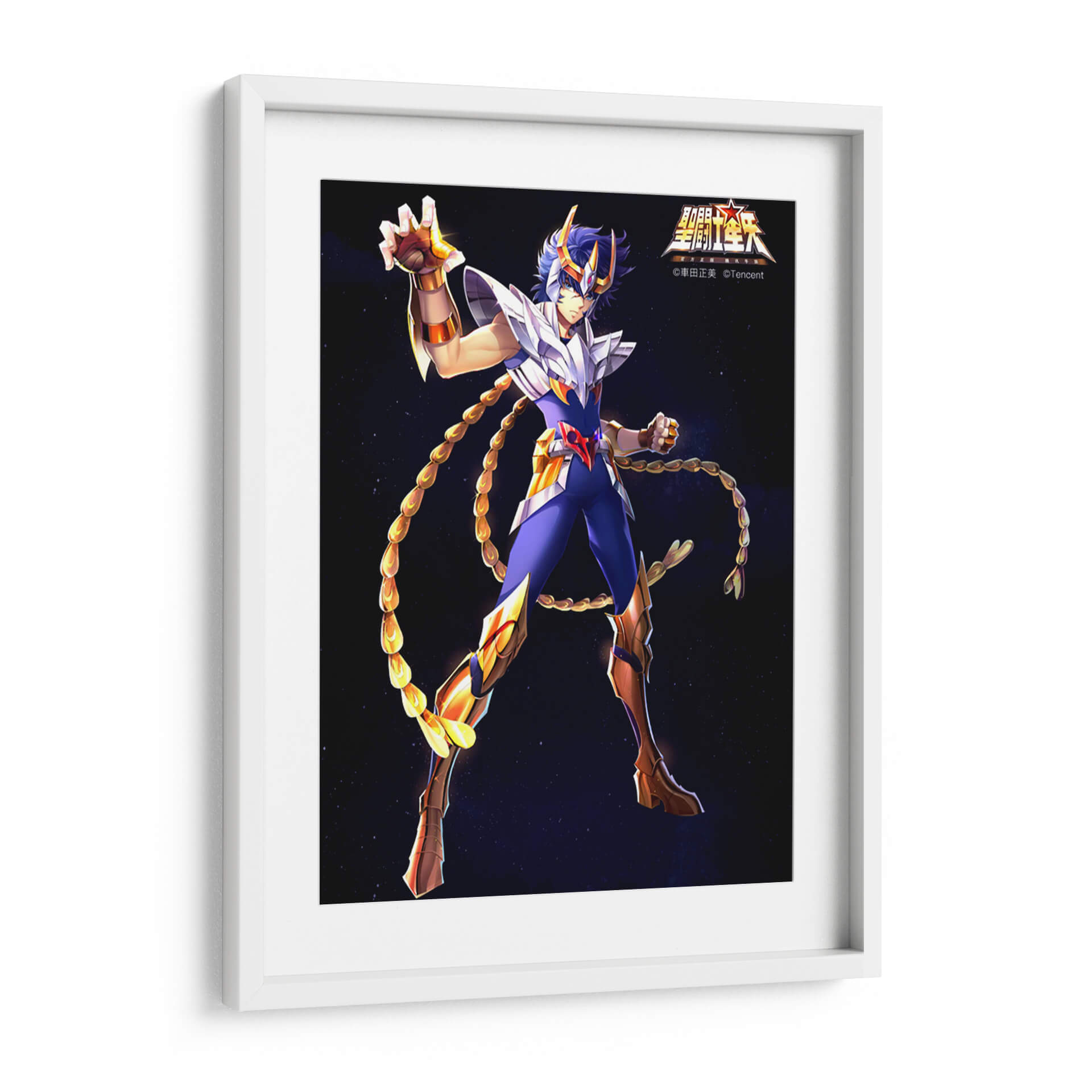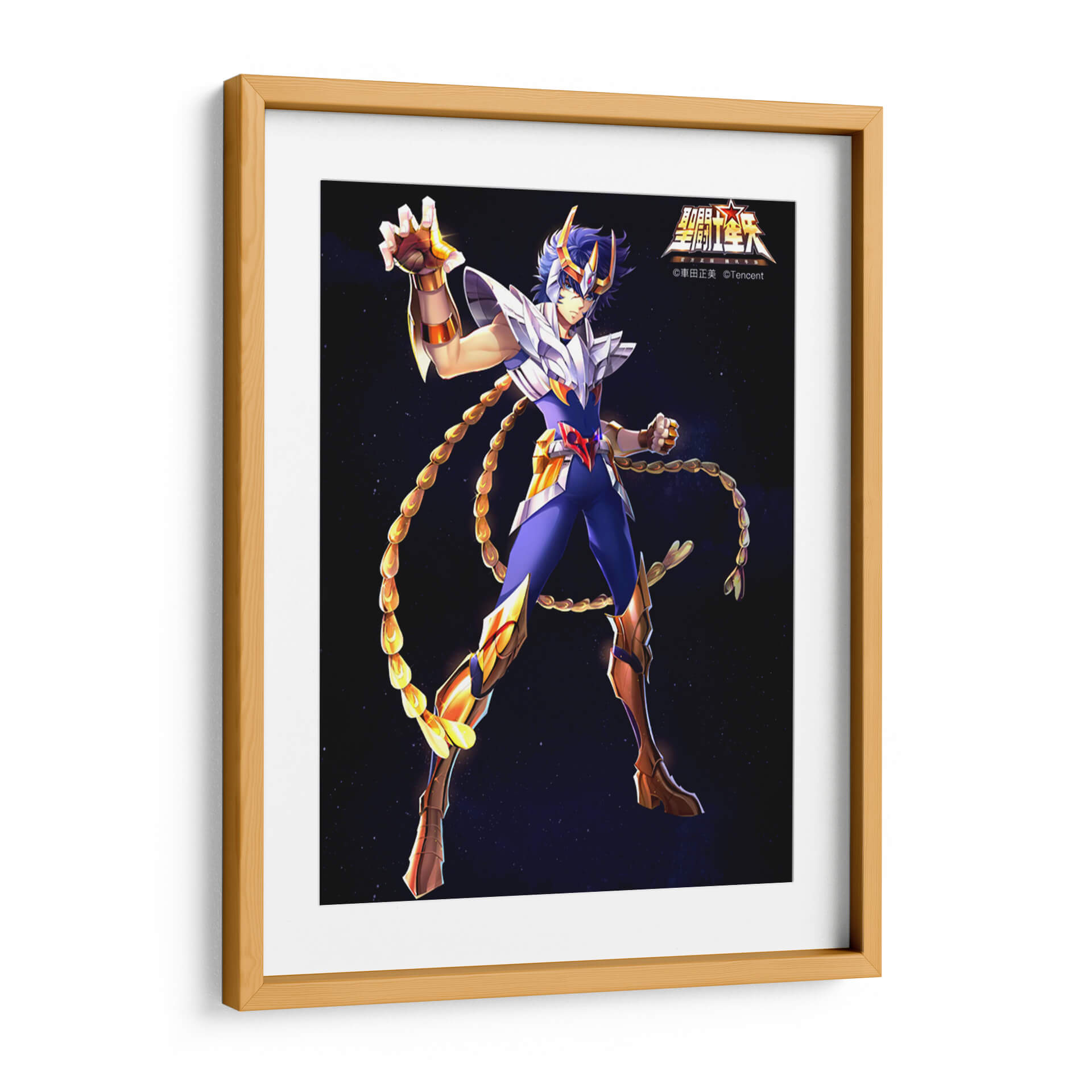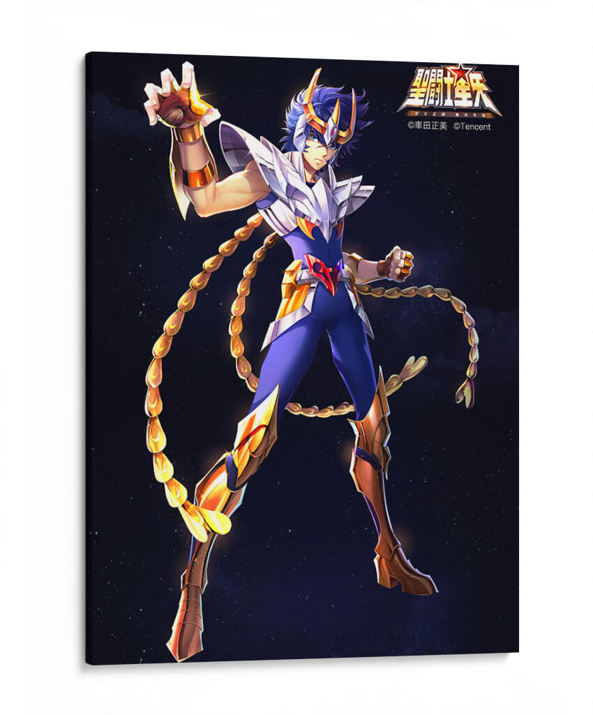 Sumérgete en el universo de la fuerza y la determinación con este impactante cuadro decorativo 'Ikki de Fénix con armadura'. Esta obra captura la esencia de un guerrero icónico, representado con una armadura detallada en tonos dorados y blancos que contrastan con el profundo azul de su traje y el misterioso fondo estrellado. Los colores vibrantes y la pose dinámica del personaje transmiten una energía inigualable, ideal para quienes buscan infundir poder y pasión en sus espacios. La composición se centra en la figura imponente, invitando a admirar cada detalle de su diseño, desde el casco majestuoso hasta las cadenas que fluyen a su alrededor, simulando el renacer del fénix. Este cuadro decorativo es perfecto para añadir un toque épico y audaz a cualquier habitación, ya sea una sala de estar moderna, un estudio de gaming o una oficina. Transforma tu entorno con este símbolo de resiliencia y coraje, una pieza que no solo decora, sino que inspira y evoca historias de valentía y victoria.
