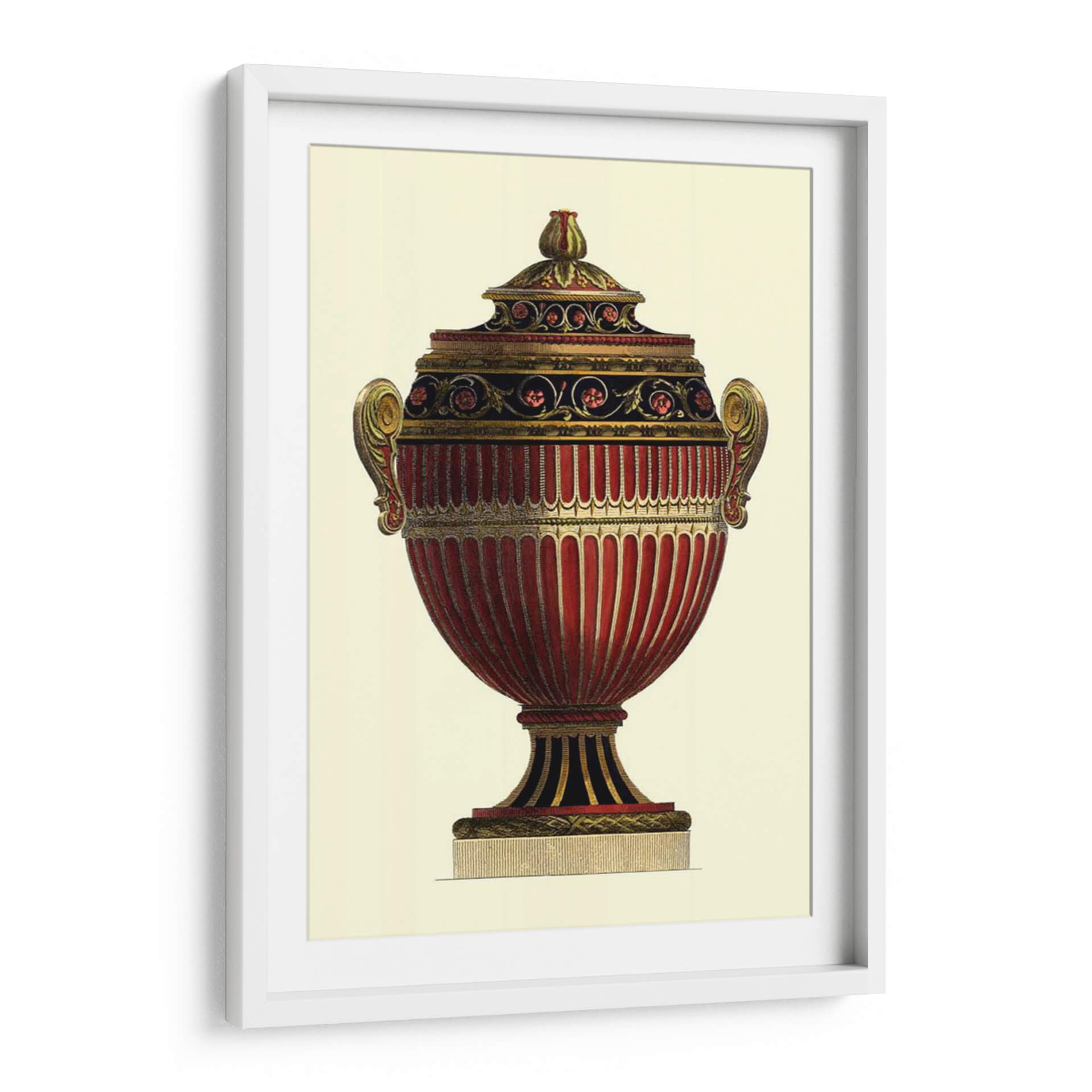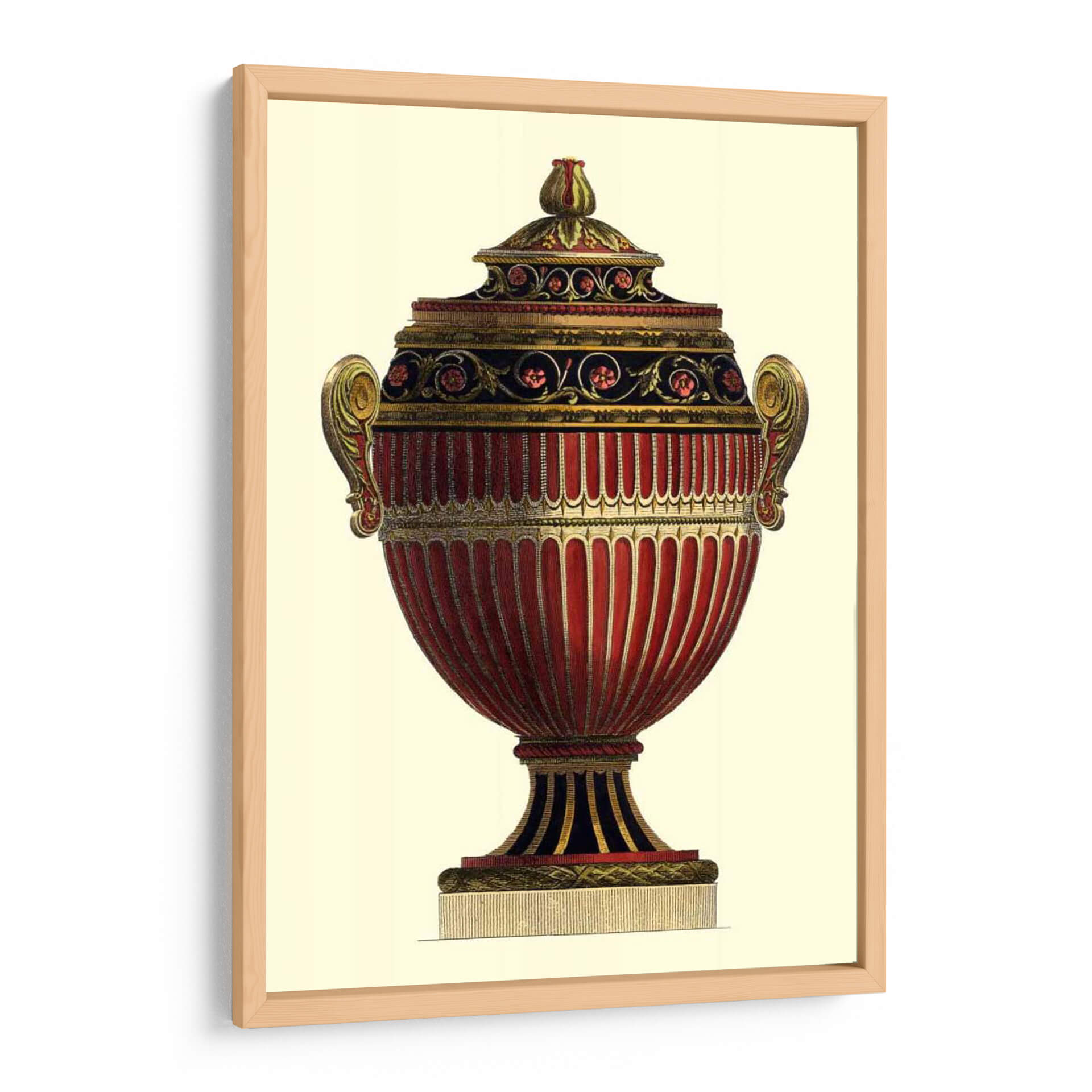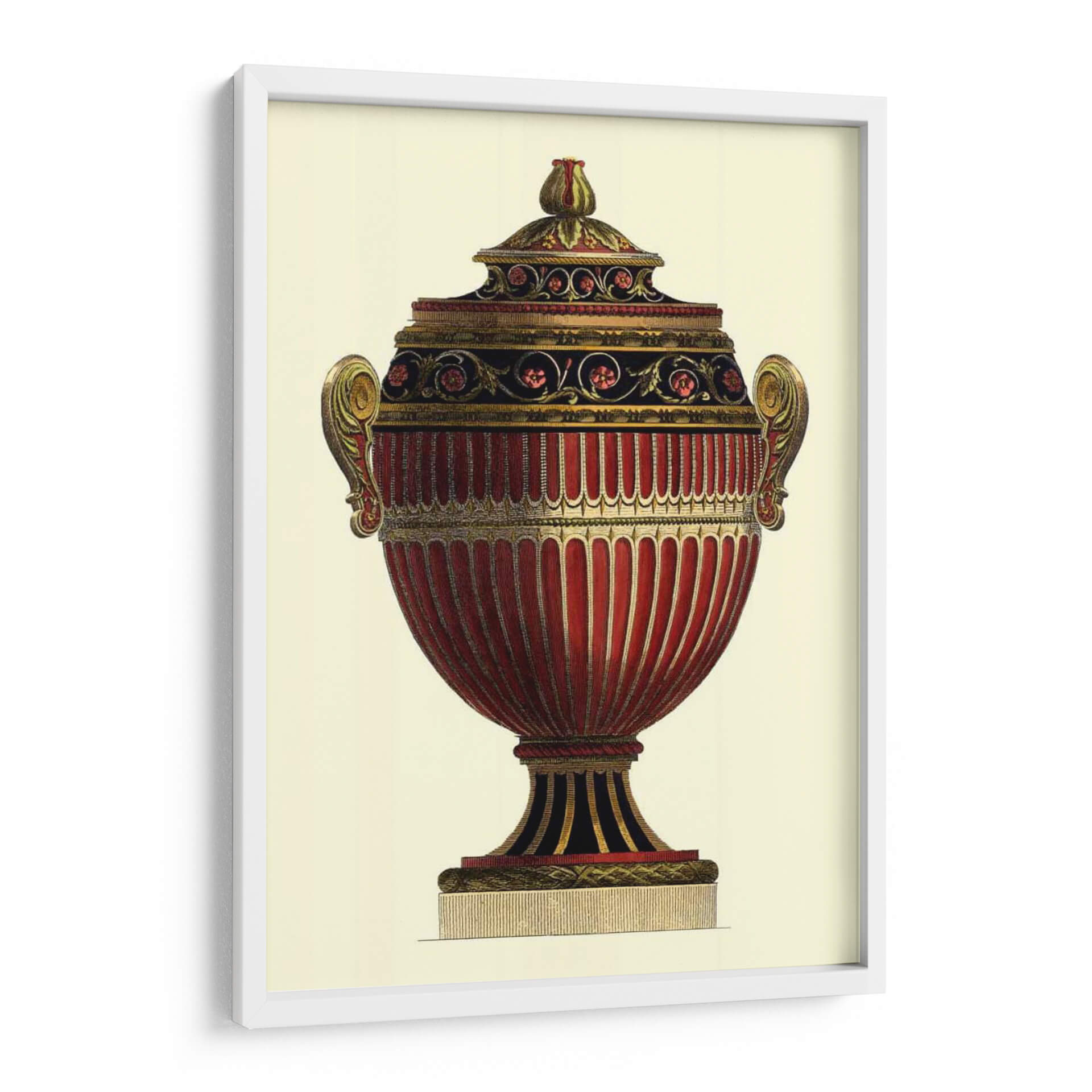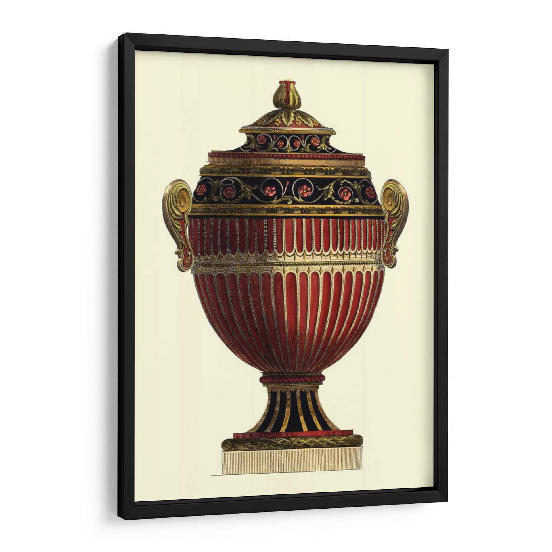 Sumérgete en la majestuosidad del "Imperio Urna I" de Vision Studio, un cuadro decorativo que evoca la grandeza y el detalle de épocas pasadas. Esta obra de arte presenta una representación intrincada de una urna clásica, adornada con ribetes dorados y detalles florales en tonos rojizos sobre un fondo azul oscuro. La vibrante sección central en rojo intenso, estriada y bañada en oro, contrasta elegantemente con las volutas doradas de las asas y la tapa ornamentada. La composición simétrica y la rica paleta de colores, dominada por el rojo, dorado, azul y toques de rosa, confieren a esta pieza una atmósfera de lujo y sofisticación atemporal. Ideal para espacios que buscan un toque de clasicismo moderno o un punto focal de elegancia. El "Imperio Urna I" es una pieza de arte que no solo embellece, sino que también cuenta una historia de arte y diseño, perfecta para salones, comedores o estudios que aprecian la belleza de los objetos históricos reimaginados en un formato contemporáneo. Añade un aire de refinamiento y poder a tu decoración con este impresionante cuadro decorativo.
