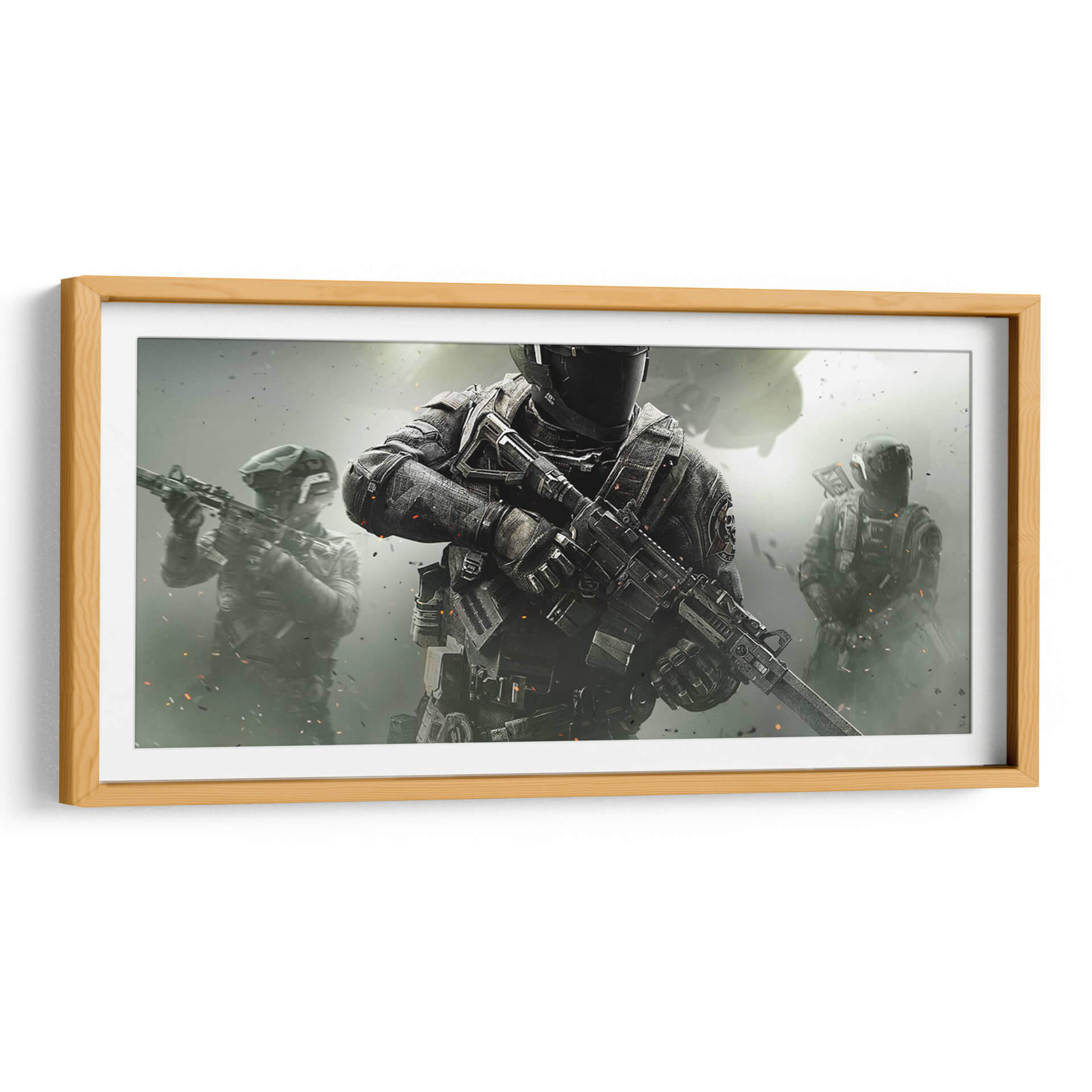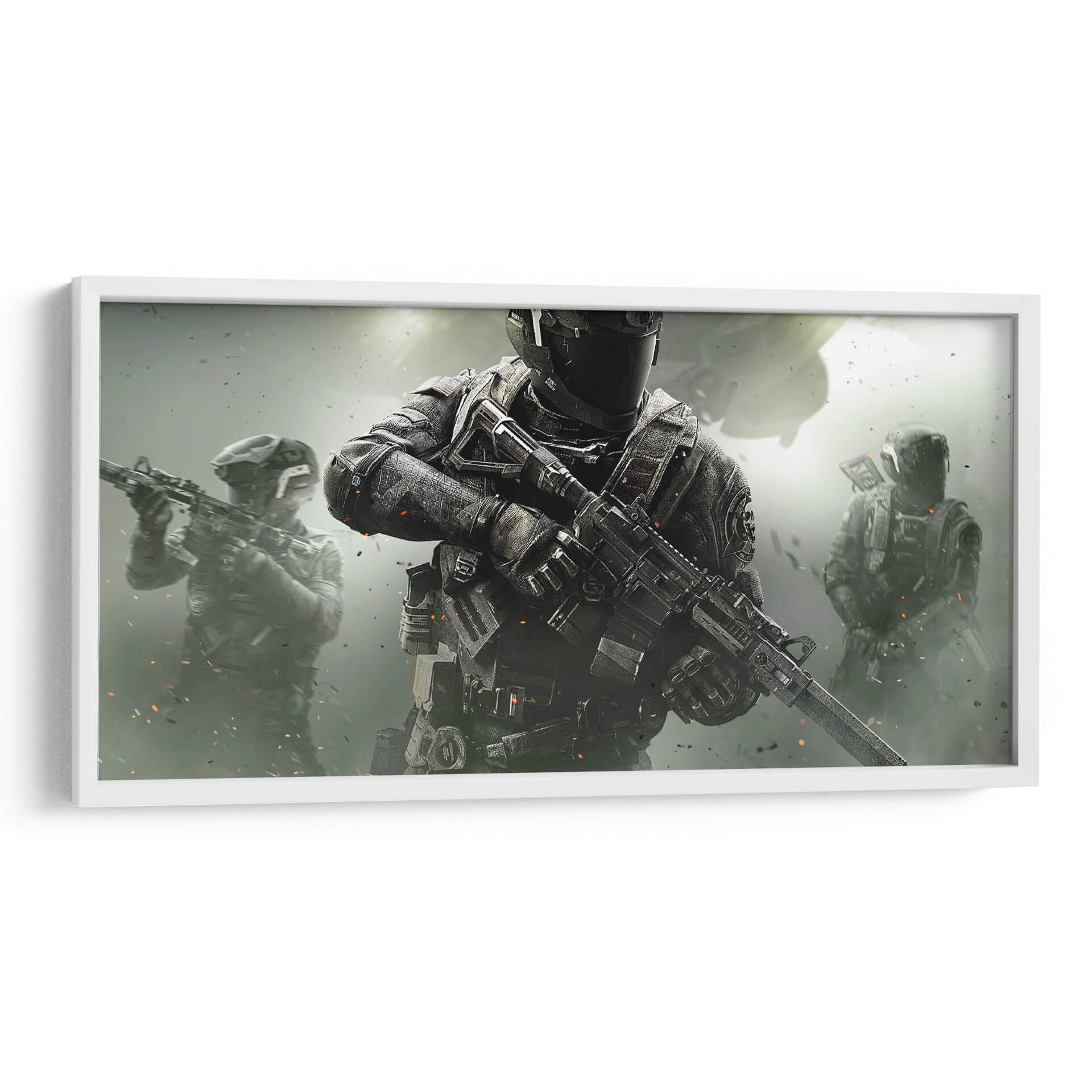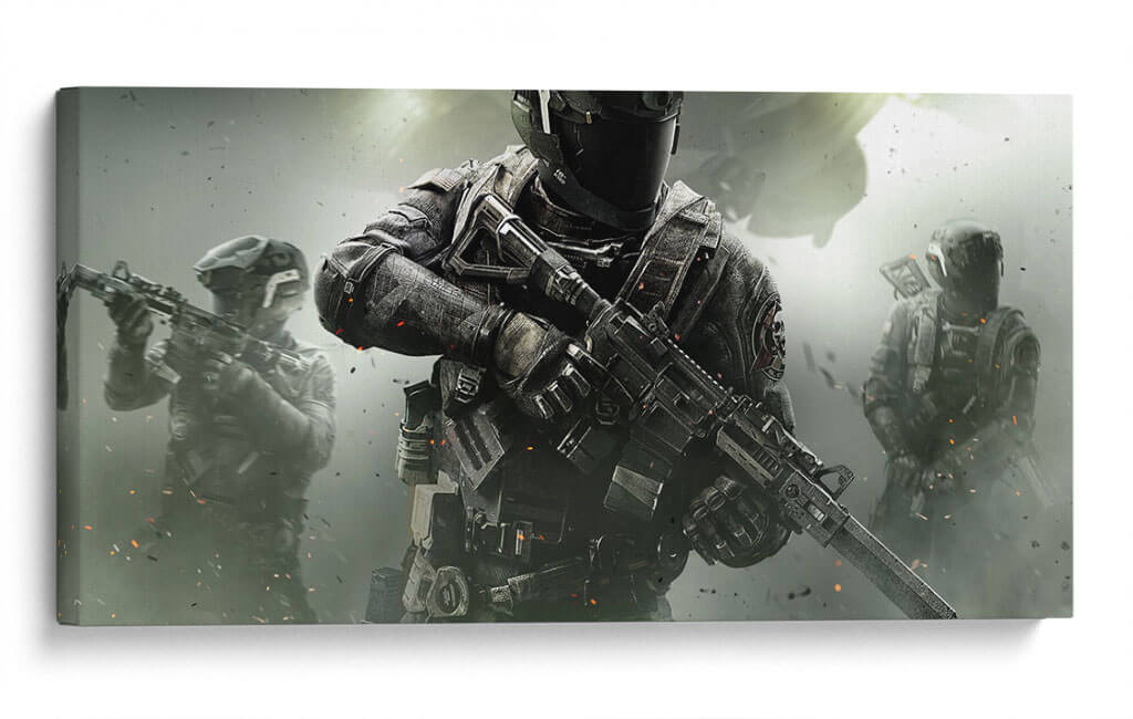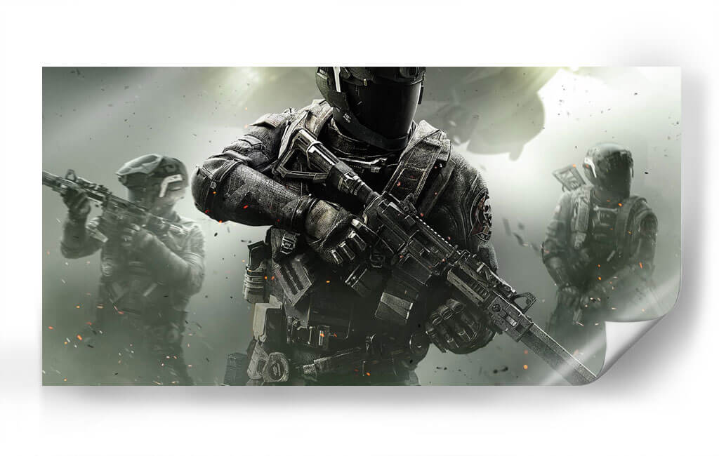 Sumérgete en la acción intensa y el realismo crudo con esta obra de arte digital inspirada en el mundo de los videojuegos de disparos. "It's a Call of Duty" presenta una composición dinámica centrada en un soldado de élite, equipado con armamento moderno y armadura táctica, listo para la batalla. El fondo, envuelto en una atmósfera de humo y partículas, evoca un escenario de combate activo, con figuras adicionales de soldados en la distancia que refuerzan la sensación de operación militar coordinada. La paleta de colores se inclina hacia tonos grises, negros y ocres, con sutiles toques de naranja que sugieren explosiones o efectos de fuego, creando un ambiente sombrío pero lleno de energía. Este cuadro decorativo es perfecto para los entusiastas de los videojuegos, coleccionistas de arte inspirado en la cultura pop y aquellos que buscan añadir un toque de dramatismo y fuerza a su espacio personal, como una sala de juegos, una oficina o un dormitorio temático. Su estilo realista y detallado captura la esencia de la adrenalina y la estrategia, convirtiéndolo en una pieza impactante que resuena con la emoción de la acción.