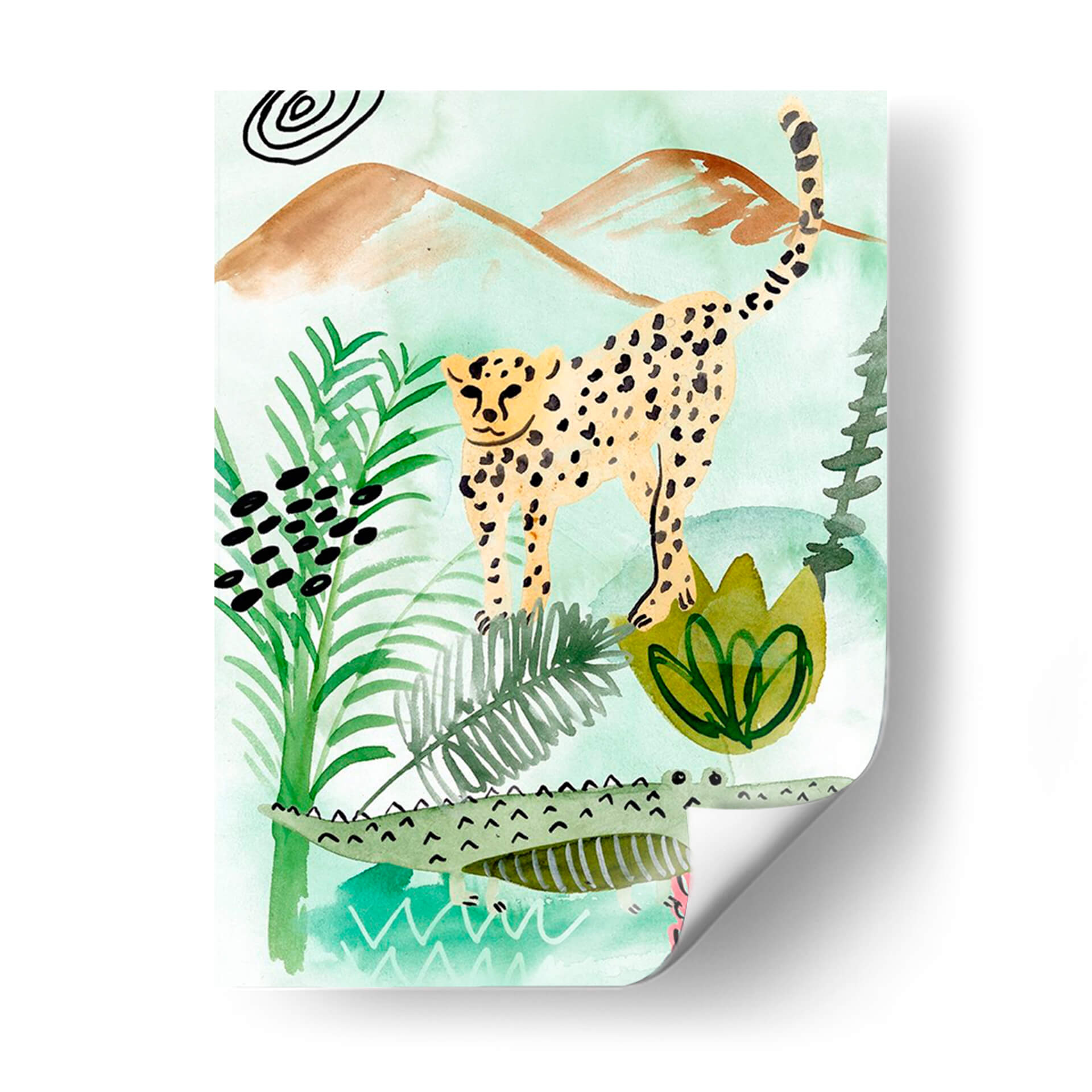 Sumérgete en la exuberante y vibrante 'Jungla de la Vida I', una obra de arte cautivadora de Melissa Wang. Esta pieza captura la esencia de un ecosistema salvaje con un toque juguetón y moderno. La composición presenta un guepardo vigilante de pie entre follaje exuberante y colinas suaves, mientras que un cocodrilo descansa pacíficamente en la parte inferior, rodeado de vibrante vegetación. La paleta de colores, dominada por tonos verdes frescos, marrones terrosos y toques de rosa vibrante, crea una atmósfera de vitalidad y tranquilidad. El estilo distintivo de acuarela, con pinceladas sueltas y expresivas, aporta una sensación de movimiento y vida a la escena. "Jungla de la Vida I" es ideal para añadir un toque de naturaleza y exotismo a cualquier espacio, ya sea una sala de estar, un dormitorio o una oficina. Su estilo contemporáneo y su tema universal la convierten en una adición perfecta para aquellos que buscan infundir sus hogares con energía y un sentido de aventura. Este cuadro decorativo es una celebración de la biodiversidad y la belleza indómita del mundo natural, invitando a la contemplación y añadiendo un punto focal único a tu decoración.