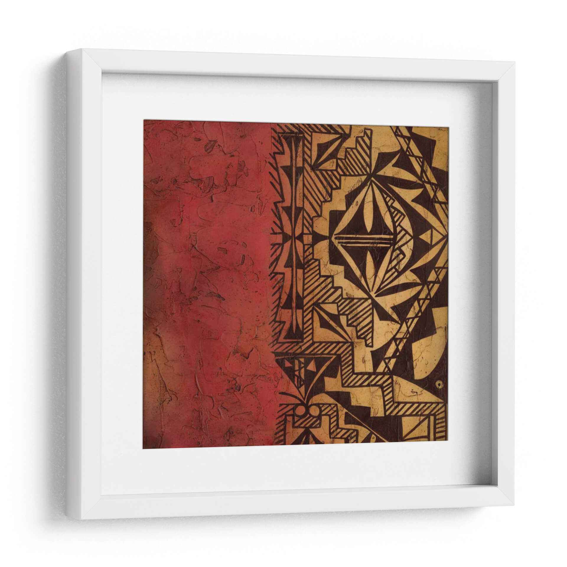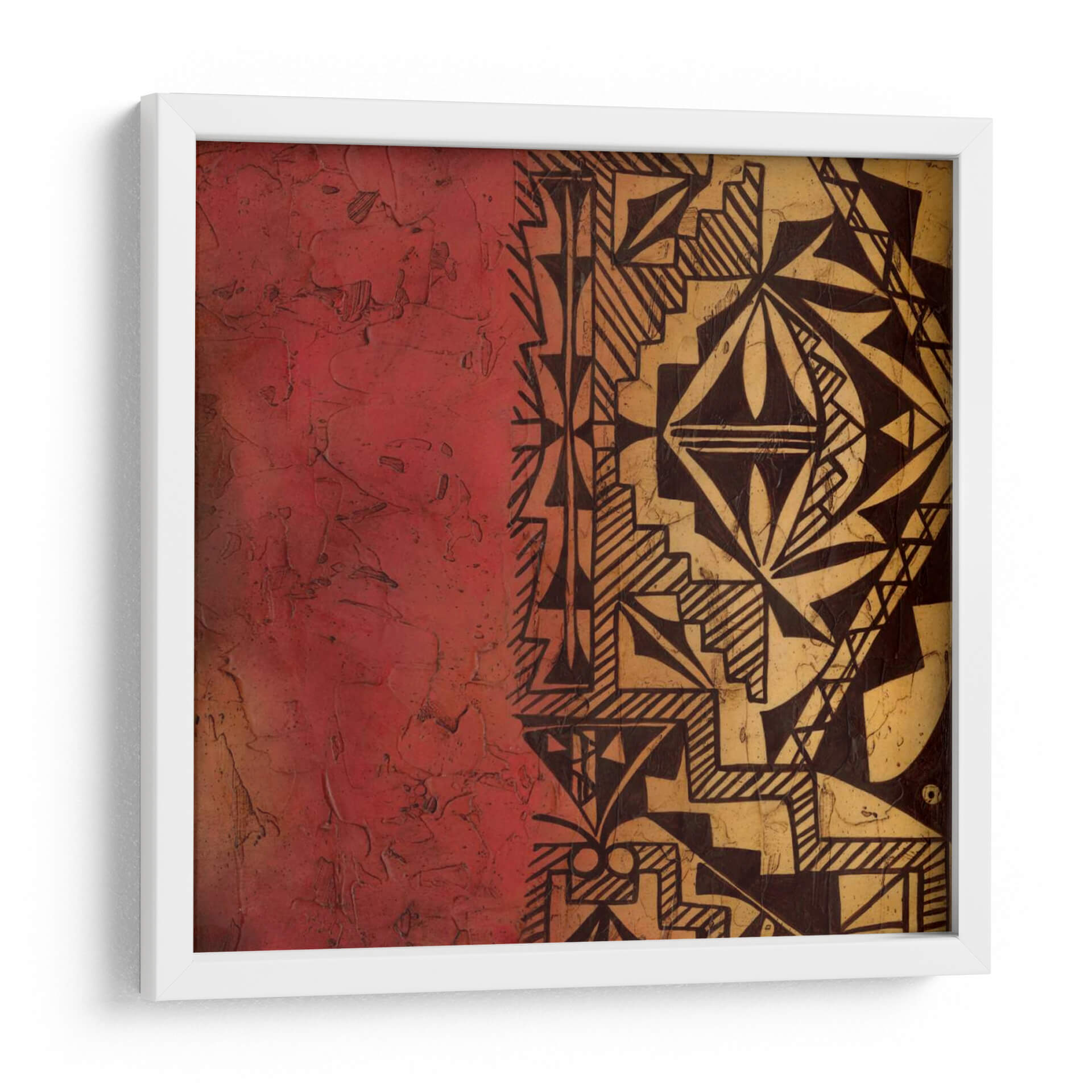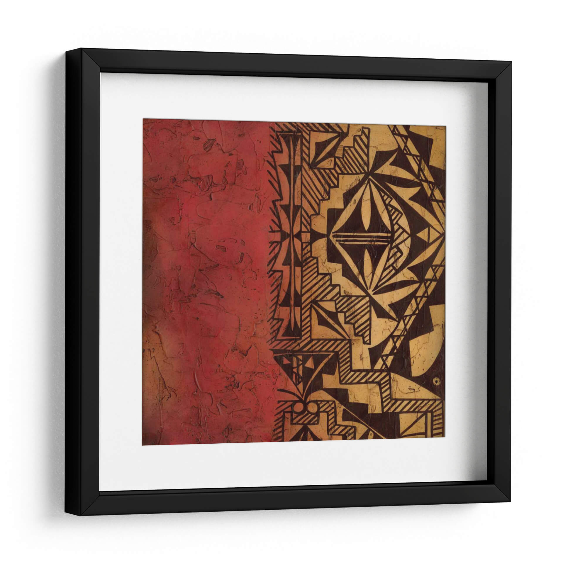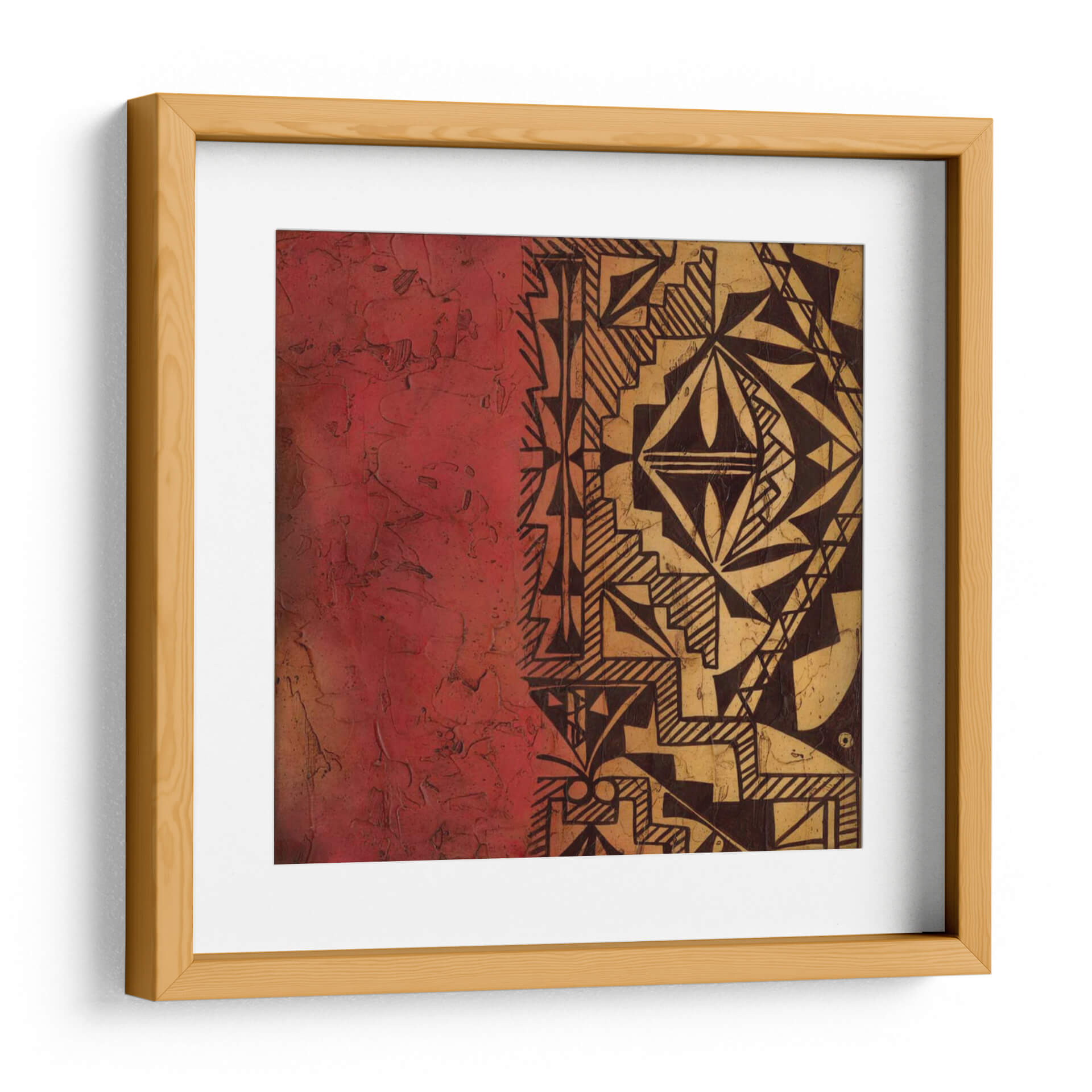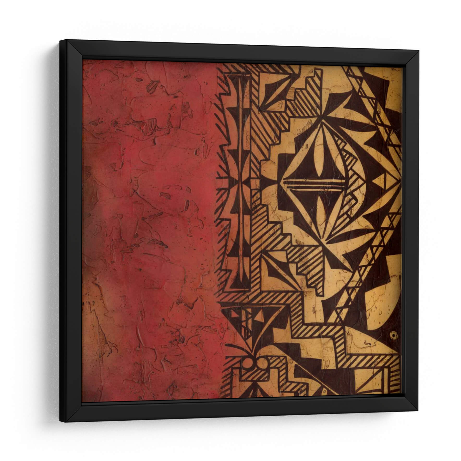 Sumérgete en la rica herencia cultural con "La Tradición Nativa I", una obra de arte de Chariklia Zarris que captura la esencia de las antiguas narrativas y el simbolismo. Esta pieza presenta una cautivadora yuxtaposición de texturas, donde una vibrante franja de color rojo texturizado se encuentra con un intrincado patrón geométrico en tonos dorados y marrones oscuros. Los motivos gráficos evocan la artesanía tribal y los diseños ancestrales, creando una conexión profunda con las raíces y la historia. La composición, dividida claramente entre la zona abstracta y la zona ornamental, ofrece un equilibrio visual dinámico que atrae la mirada. El contraste entre la audacia del rojo y la complejidad detallada del patrón geométrico genera una atmósfera de fuerza y elegancia. Ideal para espacios que buscan un toque de carácter y profundidad cultural, este cuadro decorativo es perfecto para añadir un punto focal distintivo a tu sala de estar, comedor o estudio. "La Tradición Nativa I" no es solo una decoración; es una ventana a un mundo de tradición, arte y significado, invitando a la reflexión y al aprecio por las culturas originarias.