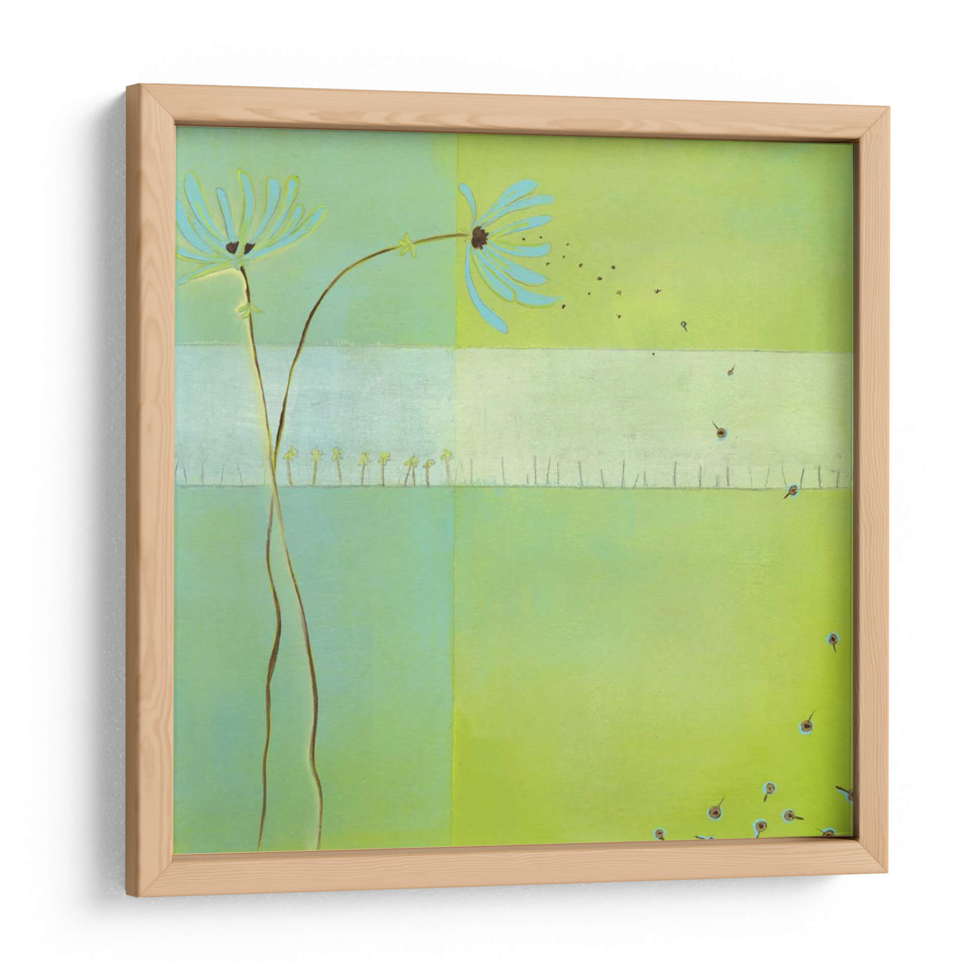 Sumérgete en la serenidad y el encanto botánico de "Las Plantas De Semillero Azul III", una obra de arte contemporáneo que captura la delicadeza de la naturaleza con un toque moderno. Esta pieza, creada por la artista June Erica Vess, presenta un cautivador uso del color, con tonos verdes vibrantes y azules suaves que se entrelazan para evocar una atmósfera de calma y frescura. Las líneas orgánicas de las flores de semillero, representadas con un estilo estilizado y casi etéreo, atraen la mirada y sugieren un movimiento sutil, como si el viento jugara con sus pétalos. La composición, dividida en bloques de color y adornada con pequeños detalles orgánicos dispersos, crea un equilibrio visual armonioso y una sensación de profundidad. "Las Plantas De Semillero Azul III" es una adición perfecta para cualquier espacio que busque un toque de vitalidad natural y serenidad, ideal para salones, dormitorios o estudios que deseen infundir un ambiente relajante y estético. Este cuadro decorativo es una invitación a la contemplación, perfecto para quienes aprecian el arte moderno con influencias botánicas.