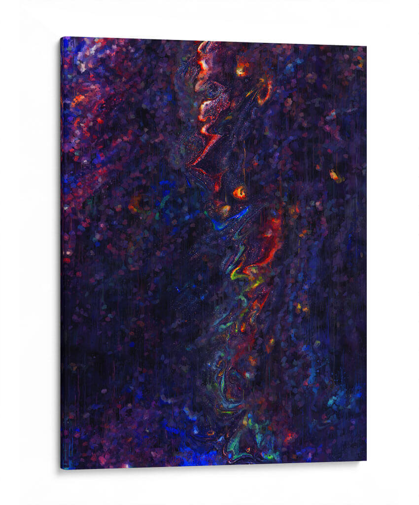 Sumérgete en la intensidad de "Lava", una obra de arte abstracta del aclamado artista Raúl Bermúdez. Esta pieza cautiva con una paleta de colores profunda y vibrante, donde oscuros tonos de púrpura y azul se entrelazan con explosiones de rojo, naranja y verde. La composición evoca la fuerza elemental de la naturaleza, similar a un río de lava fluyendo a través de un paisaje nocturno o una nebulosa cósmica en expansión. Las pinceladas, ricas en textura y detalle, crean un efecto visual dinámico que atrae la mirada hacia el centro de la obra, donde la energía parece concentrarse y desbordarse. "Lava" es una invitación a la contemplación, ideal para espacios que buscan un toque de drama y sofisticación. Perfecta como cuadro decorativo para salas de estar modernas, estudios o como punto focal en una oficina, esta obra añadirá profundidad y carácter a cualquier ambiente. Permite que la energía cruda y la belleza abstracta de "Lava" transformen tu espacio y estimulen la conversación.