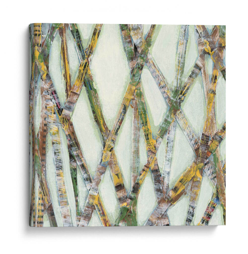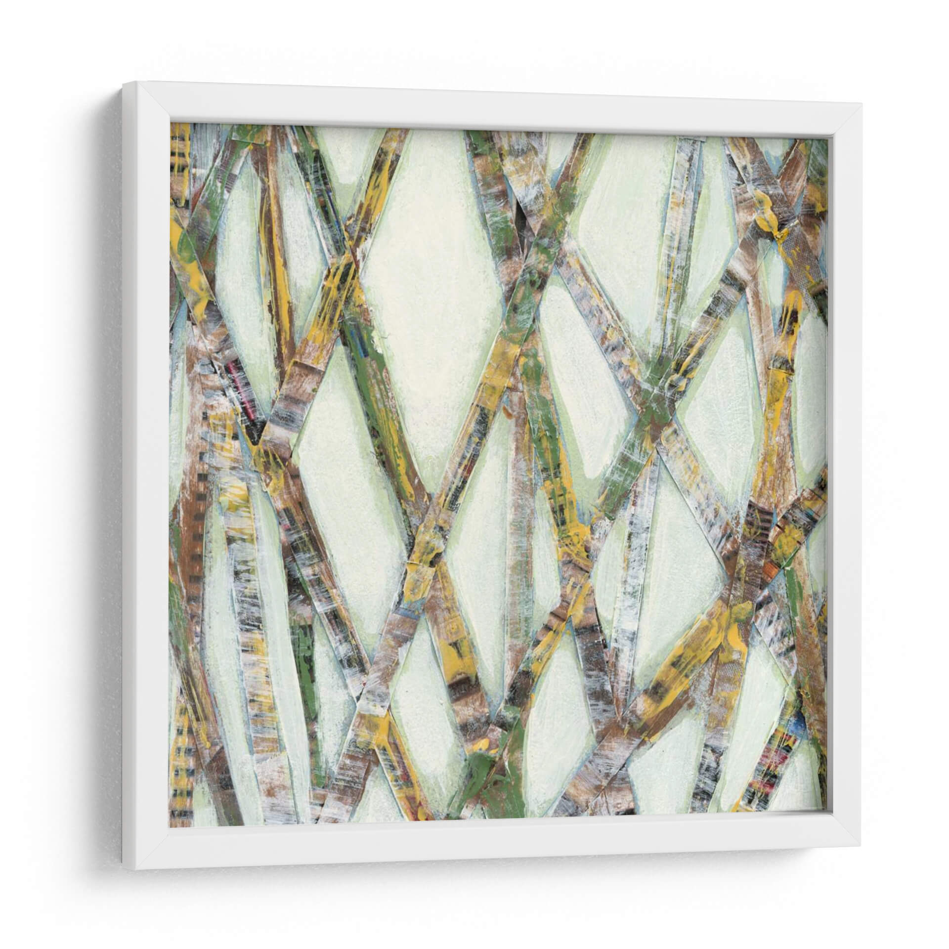 Sumérgete en la cautivadora obra de arte abstracta 'Limoncillo II' de Jarman Fagalde, una pieza que evoca la complejidad y belleza de las estructuras naturales. Este cuadro decorativo presenta una intrincada red de líneas diagonales que se entrelazan, creando una sensación de profundidad y movimiento. Los colores, una rica paleta de verdes terrosos, amarillos vibrantes y marrones cálidos, se mezclan con toques de blanco y gris, aportando una textura visual dinámica y un ambiente orgánico. La composición, aunque abstracta, sugiere la arquitectura de tallos o ramas, invitando a la contemplación de la naturaleza de una manera única y moderna. 'Limoncillo II' es ideal para añadir un toque de sofisticación natural a cualquier espacio, ya sea una sala de estar contemporánea, un estudio o un dormitorio tranquilo. Su estilo abstracto y su paleta de colores terrosos lo convierten en una adición versátil que complementa una variedad de decoraciones, desde lo minimalista hasta lo bohemio. Transforma tu hogar u oficina con este vibrante cuadro decorativo que captura la esencia del arte contemporáneo y la serenidad de la naturaleza.