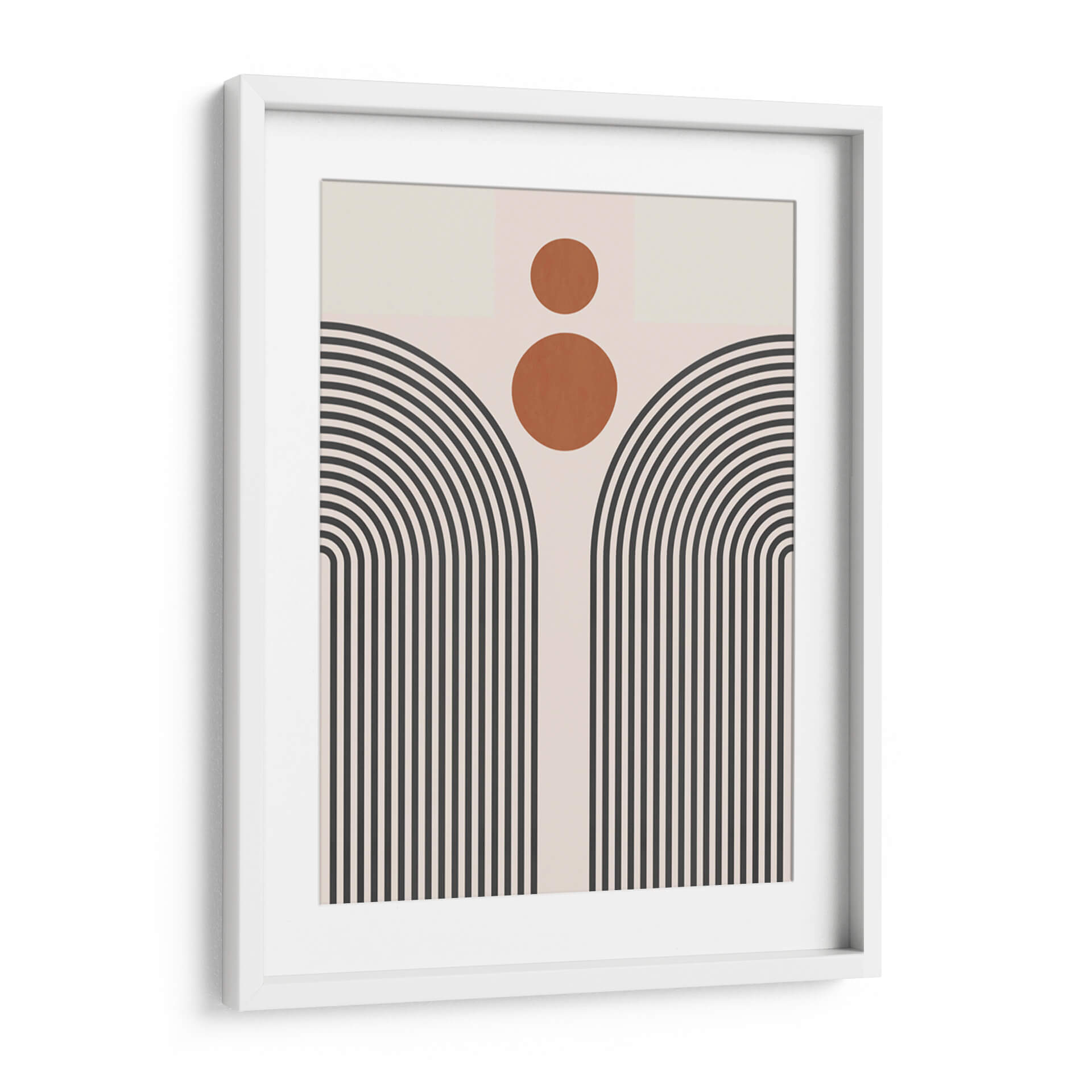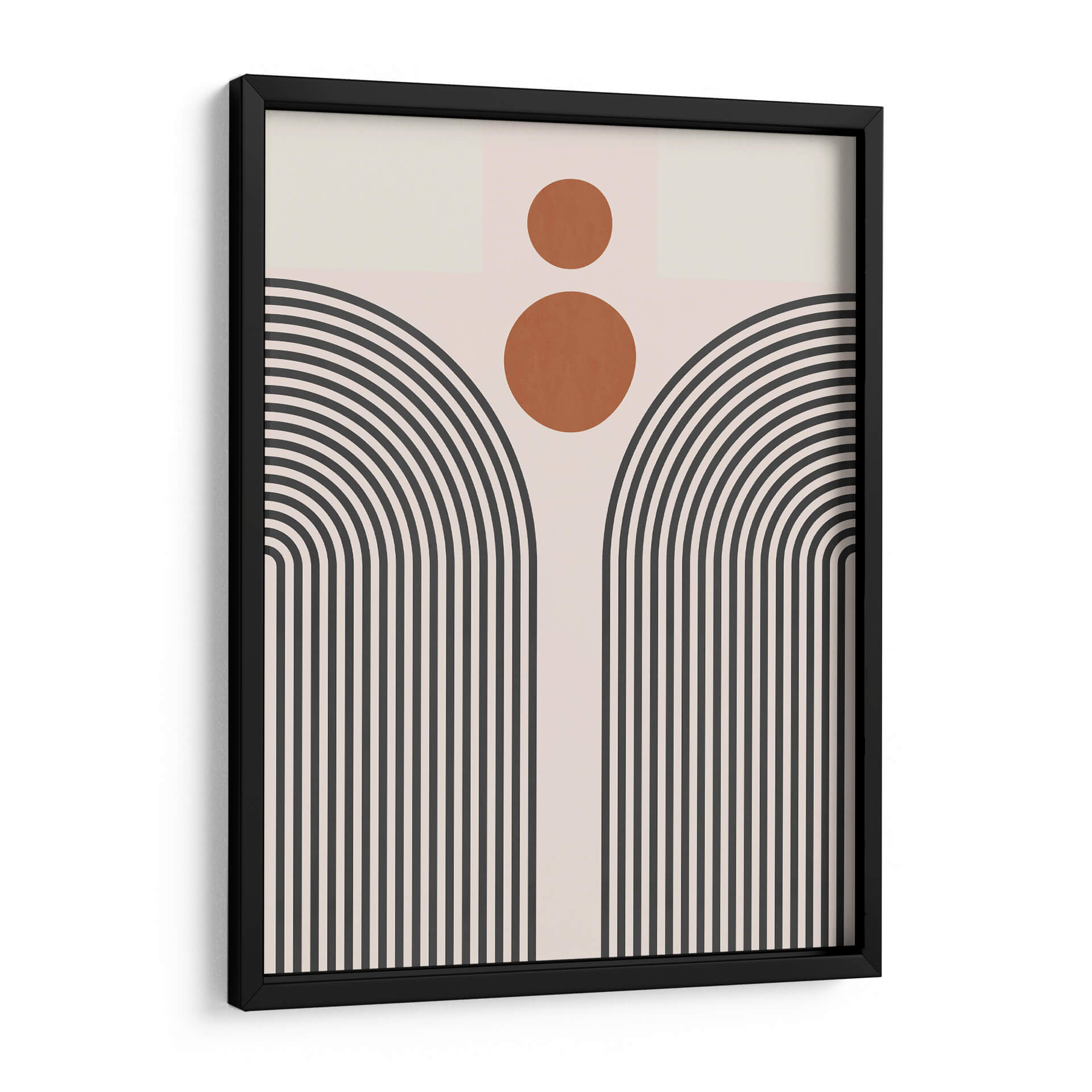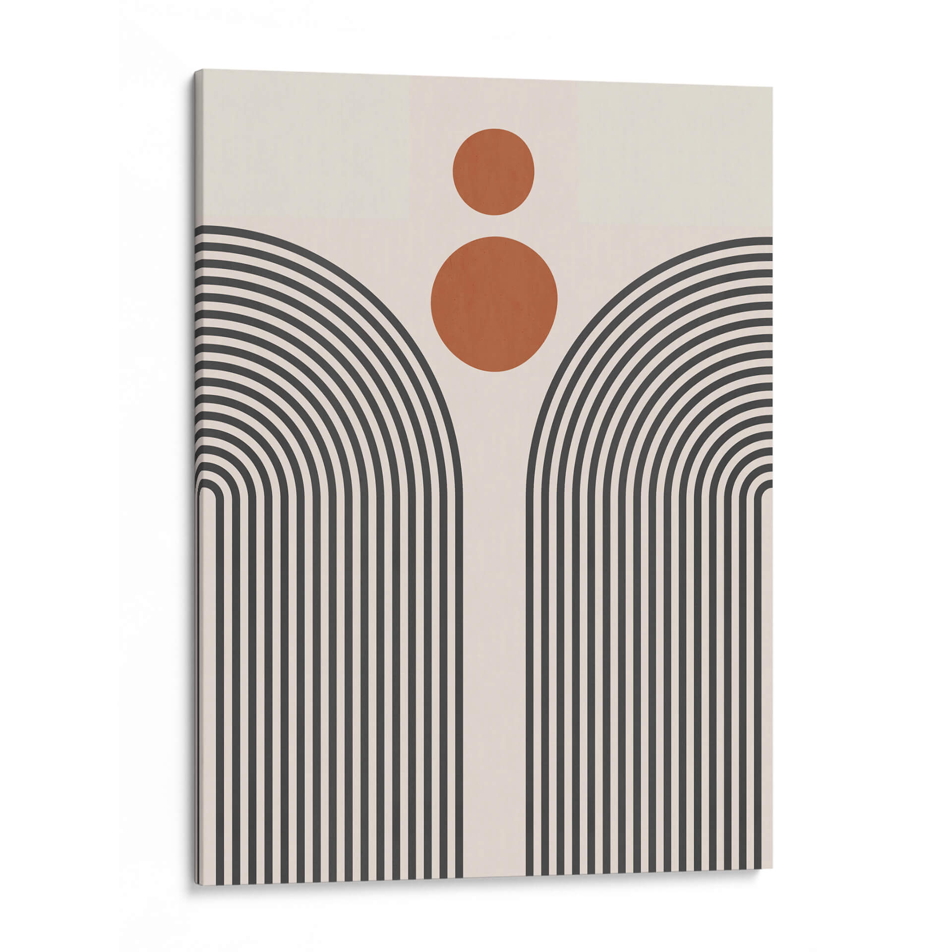 Sumérgete en la serenidad geométrica de "Líneas y Círculos 11", una obra de arte contemporáneo del artista Vitor Costa. Esta pieza cautiva con su audaz uso de líneas curvas y círculos, creando una composición abstracta que evoca tanto la modernidad como una sensación de calma. La paleta de colores, dominada por tonos neutros y acentos cálidos de terracota, se combina para formar una atmósfera visualmente equilibrada y atractiva. Las líneas paralelas que se curvan hacia arriba, reminiscentes de arcos o un sol naciente estilizado, invitan a la contemplación, mientras que los círculos superpuestos añaden un toque de dinamismo y misterio. Este cuadro decorativo abstracto es una elección perfecta para quienes buscan infundir elegancia y un toque artístico distintivo en su hogar u oficina. Su diseño minimalista pero impactante lo convierte en un punto focal ideal para salas de estar, dormitorios o espacios de trabajo que buscan una decoración de pared sofisticada. "Líneas y Círculos 11" no es solo una pieza decorativa, sino una invitación a experimentar la belleza de la forma y el color en su máxima expresión, transformando cualquier ambiente en una galería personal.
