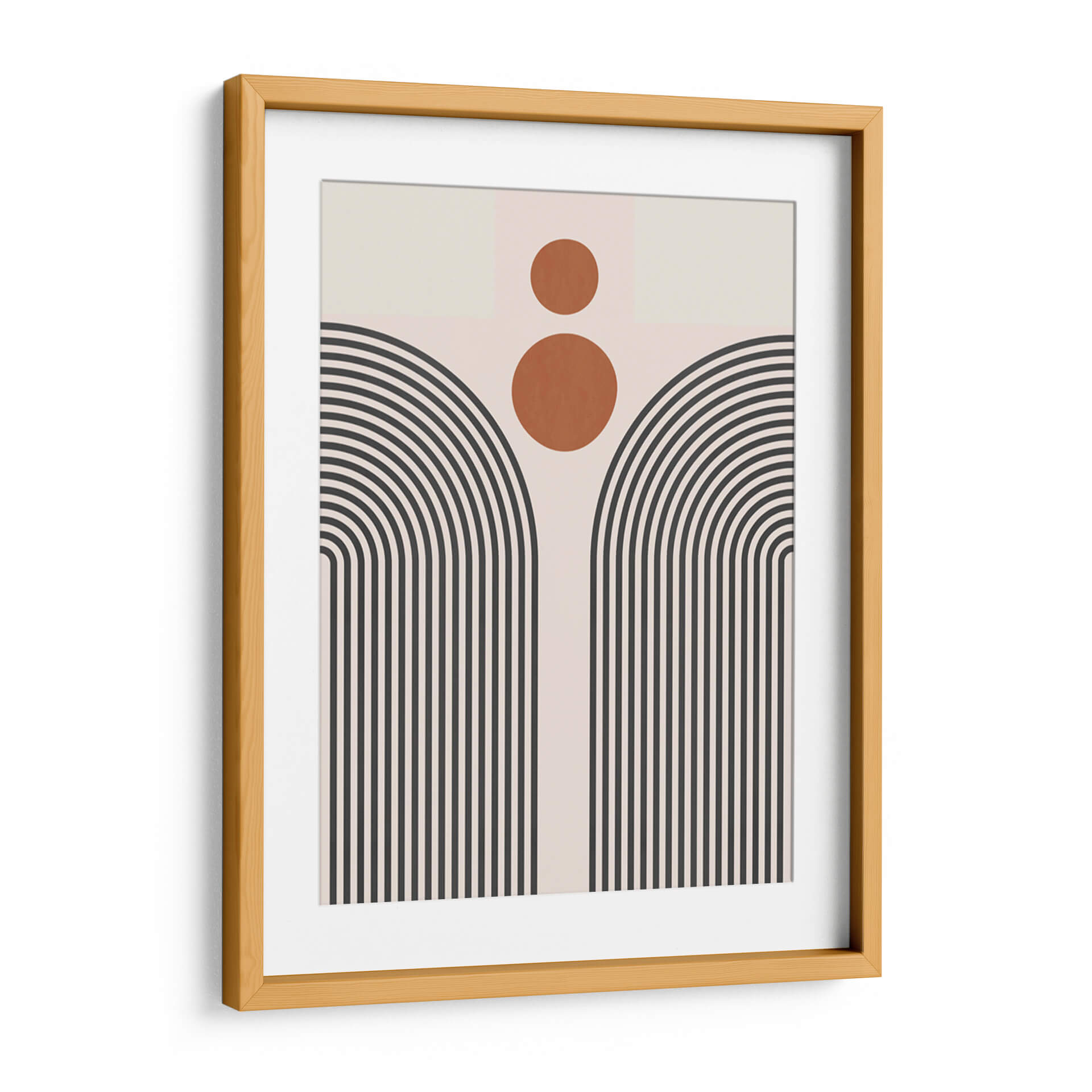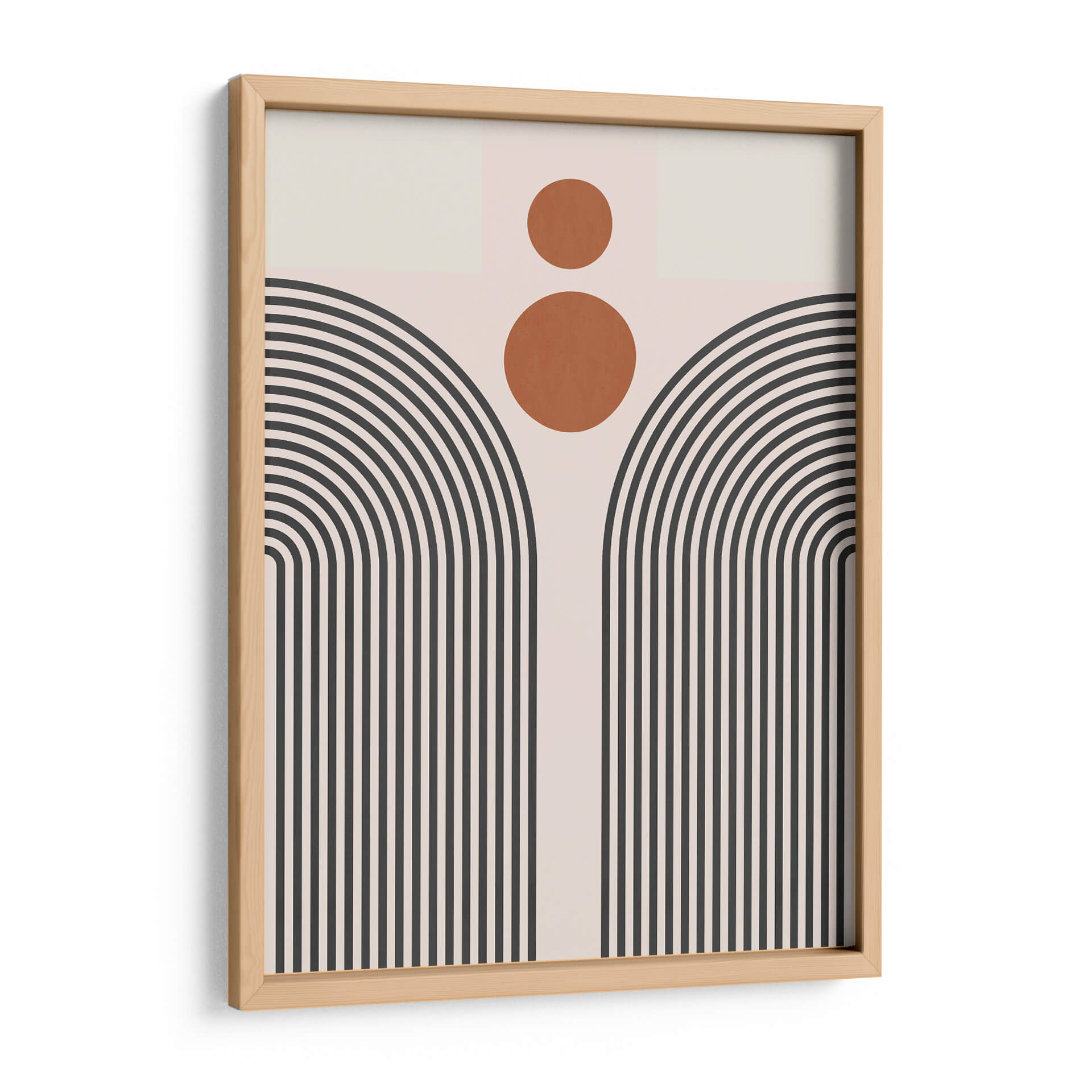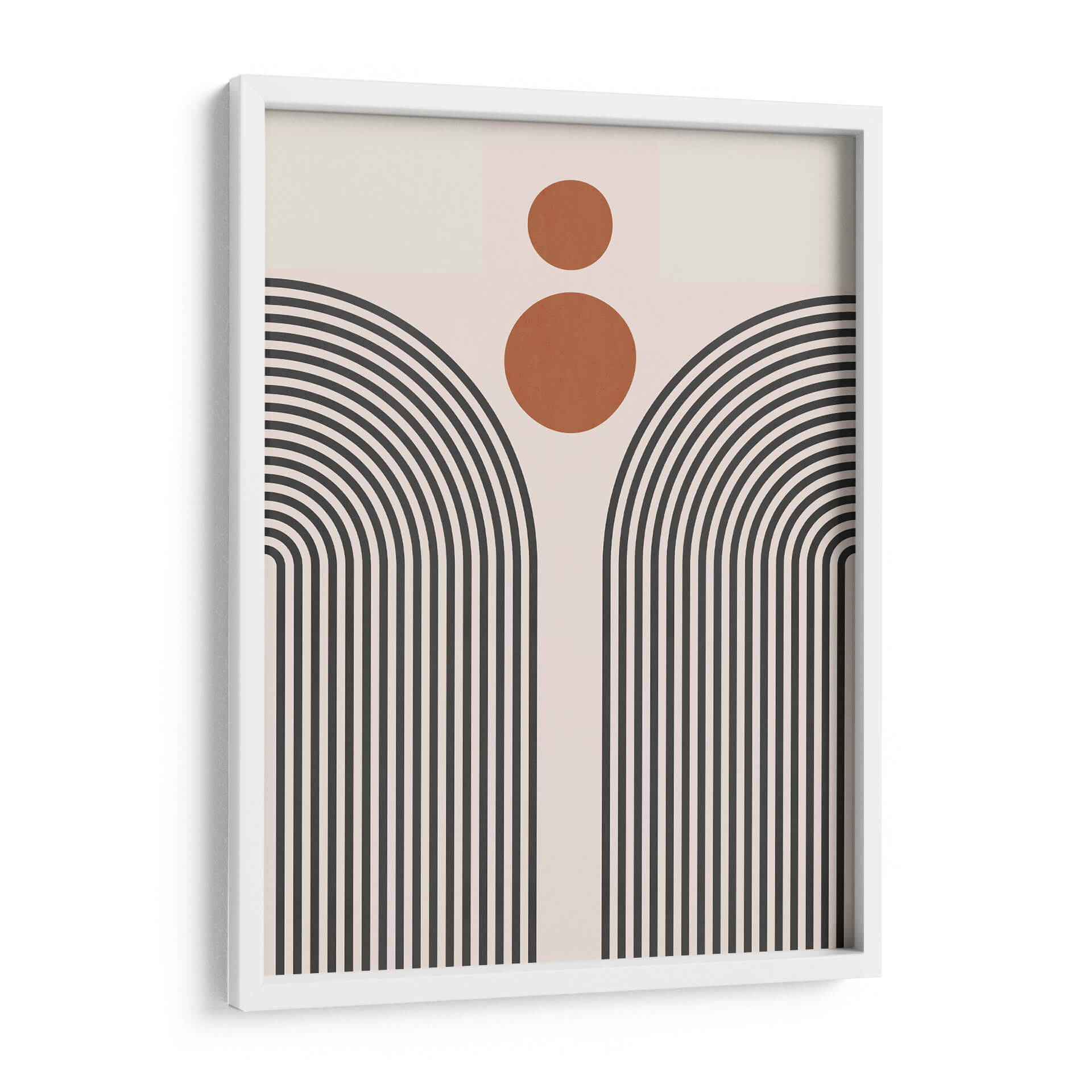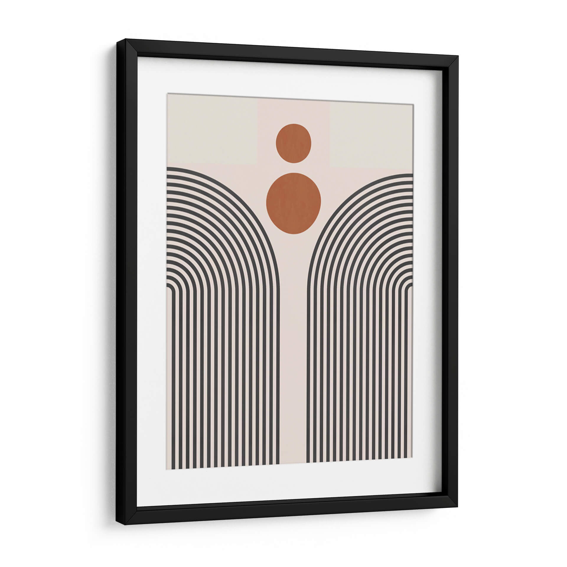 Sumérgete en la serenidad geométrica de "Líneas y Círculos 11", una obra de arte contemporáneo del artista Vitor Costa. Esta pieza cautiva con su audaz uso de líneas curvas y círculos, creando una composición abstracta que evoca tanto la modernidad como una sensación de calma. La paleta de colores, dominada por tonos neutros y acentos cálidos de terracota, se combina para formar una atmósfera visualmente equilibrada y atractiva. Las líneas paralelas que se curvan hacia arriba, reminiscentes de arcos o un sol naciente estilizado, invitan a la contemplación, mientras que los círculos superpuestos añaden un toque de dinamismo y misterio. Este cuadro decorativo abstracto es una elección perfecta para quienes buscan infundir elegancia y un toque artístico distintivo en su hogar u oficina. Su diseño minimalista pero impactante lo convierte en un punto focal ideal para salas de estar, dormitorios o espacios de trabajo que buscan una decoración de pared sofisticada. "Líneas y Círculos 11" no es solo una pieza decorativa, sino una invitación a experimentar la belleza de la forma y el color en su máxima expresión, transformando cualquier ambiente en una galería personal.