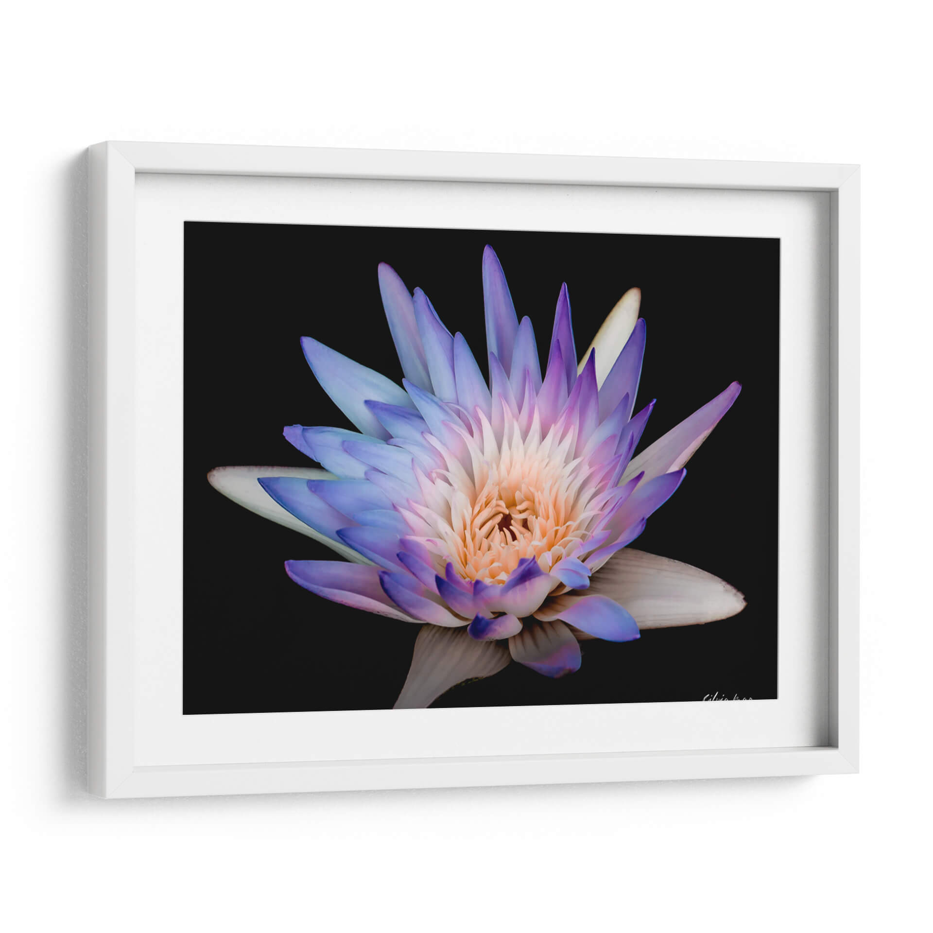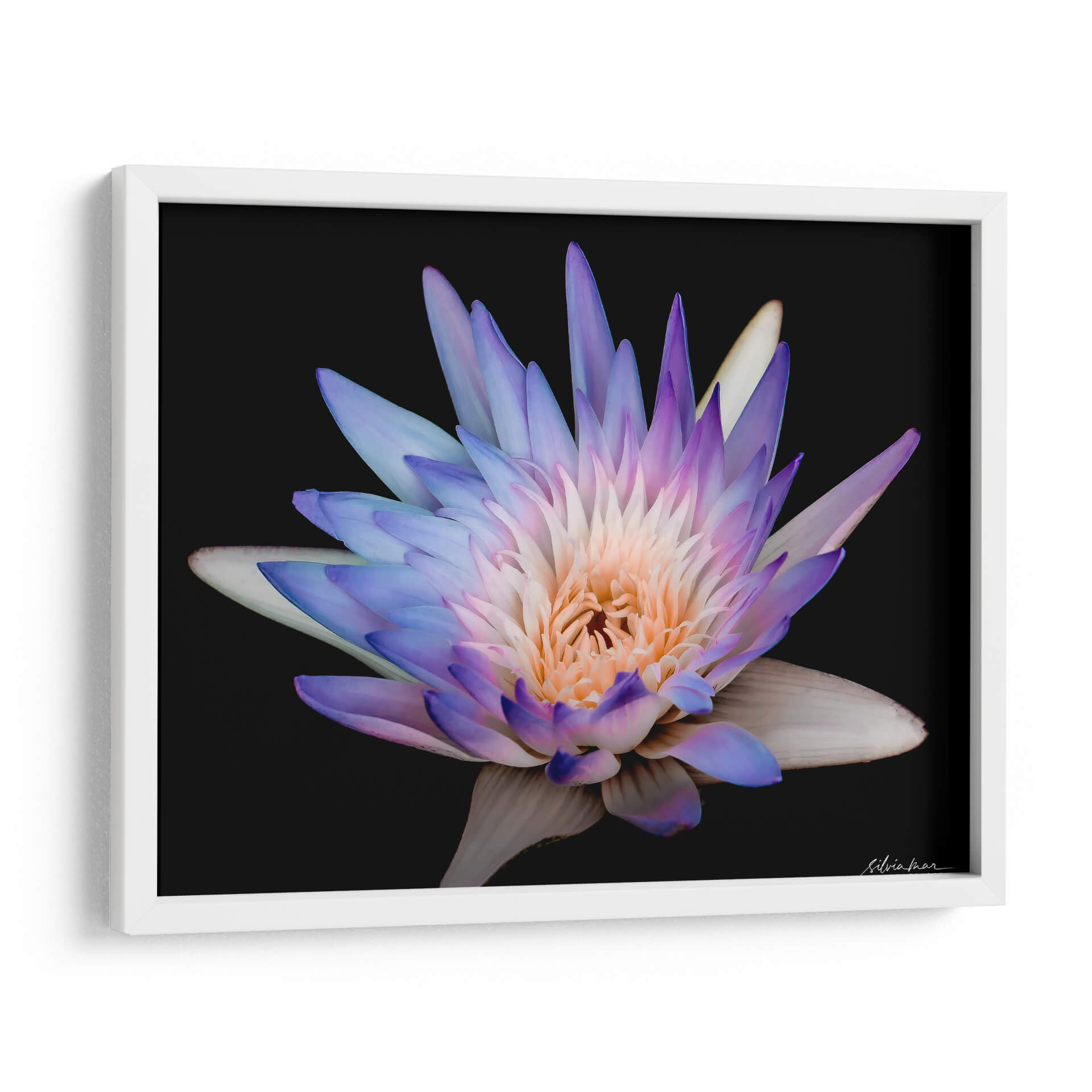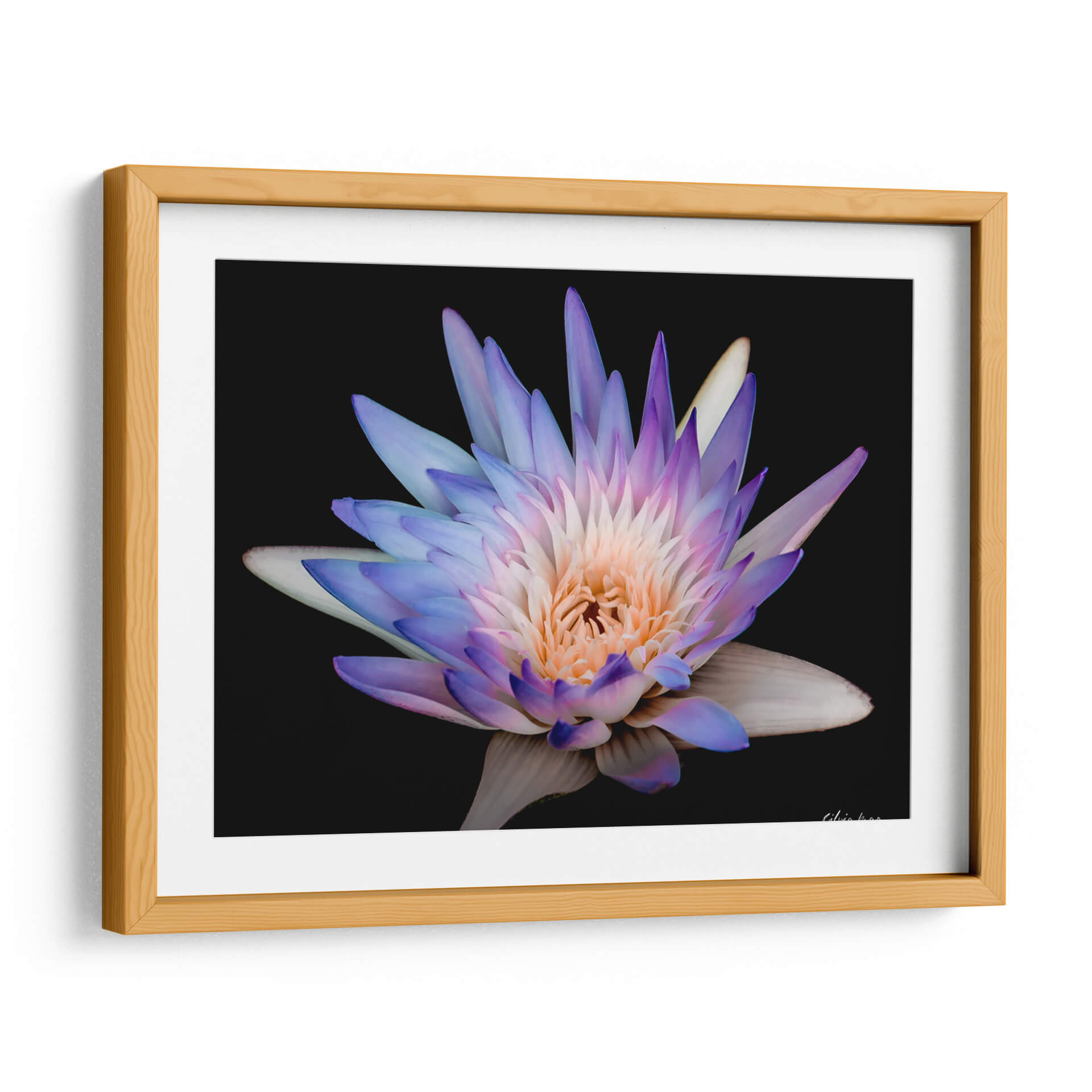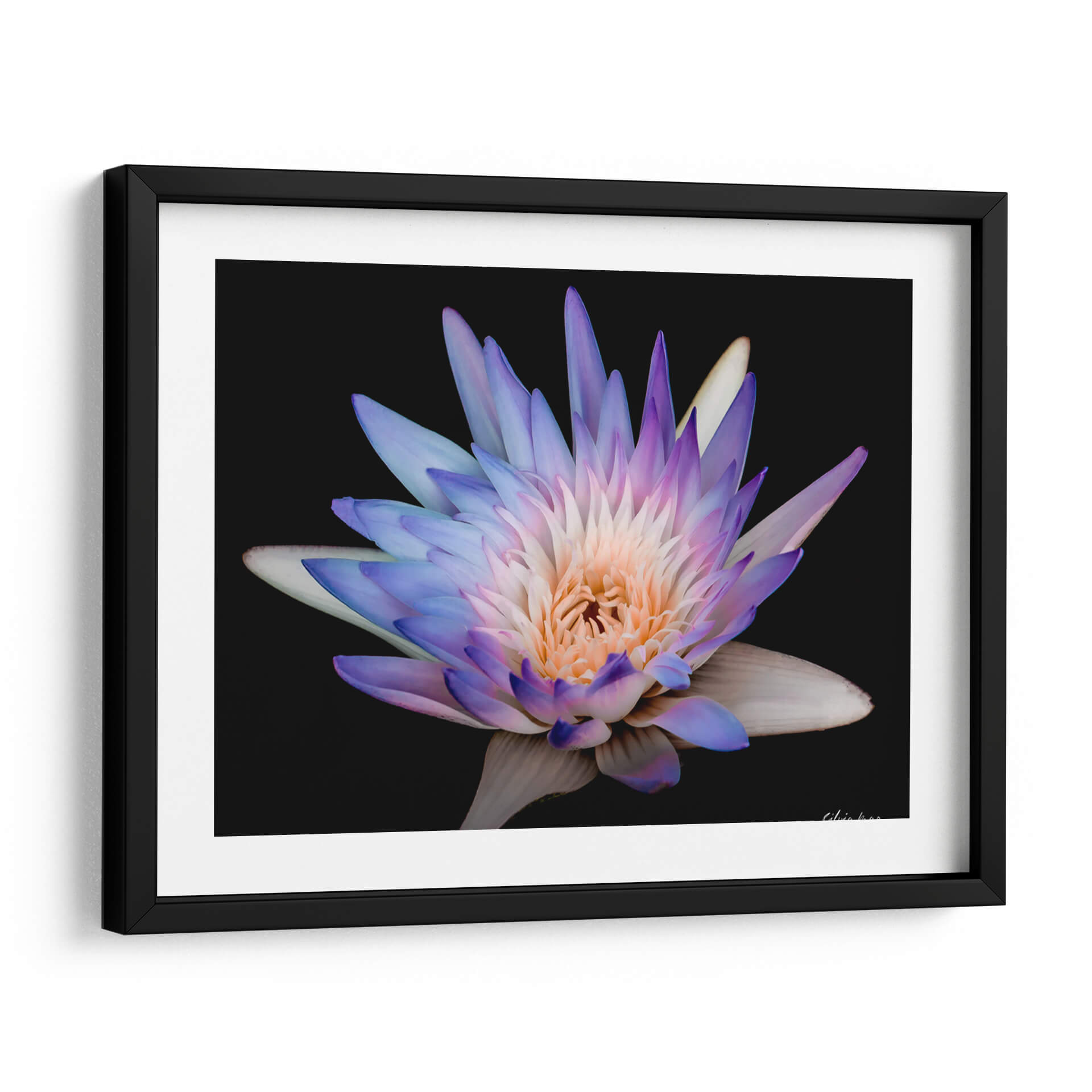 Sumérgete en la serenidad y la belleza etérea de nuestro cuadro decorativo "Lirio rosa y azul de Chicago", una obra maestra capturada por Silviamarphotography. Esta impresionante pieza presenta un lirio de agua en un primer plano cautivador, donde los delicados pétalos se despliegan en una sinfonía de colores. La paleta cromática transita desde suaves tonos de rosa y melocotón en el centro, hacia vibrantes azules y púrpuras en los bordes exteriores, creando un contraste fascinante con el profundo fondo negro. La composición, centrada y detallada, resalta la intrincada simetría y la delicadeza de la flor, invitando a la contemplación y a la calma. Este cuadro decorativo es ideal para añadir un toque de elegancia natural y sofisticación a cualquier espacio, ya sea en un dormitorio que busca tranquilidad, una sala de estar que anhela un punto focal natural, o una oficina que necesita una dosis de inspiración serena. Su estilo fotográfico y la calidad de la imagen la convierten en una adición perfecta para amantes de la botánica y el arte contemporáneo. Transforma tu hogar u oficina con esta pieza que evoca paz, belleza y la maravilla de la naturaleza.