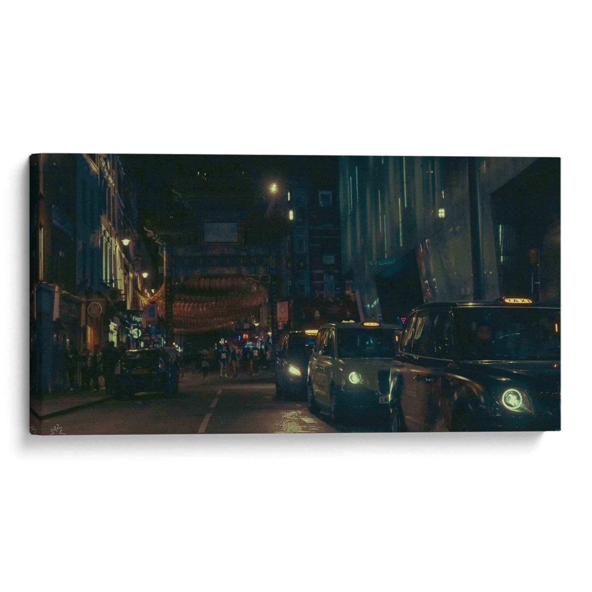 Captura la esencia vibrante de la noche londinense con "LONDRES: A GLIMPSE INTO THE NIGHT" de Zuriel Halal. Este cuadro decorativo transporta al espectador a las bulliciosas calles de la capital británica, inmortalizando un momento fugaz de su efervescencia nocturna. La obra presenta una perspectiva de calle con taxis negros icónicos y luces de neón que se reflejan en el asfalto mojado, creando una atmósfera urbana inmersiva y llena de vida. Los tonos profundos, azules nocturnos, negros y los destellos cálidos de las luces urbanas, se combinan para evocar la energía y el misterio de la ciudad después del anochecer. El estilo fotográfico, con un toque cinematográfico, añade profundidad y realismo, invitando a sentir el pulso de Londres. Ideal para salones modernos, oficinas o cualquier espacio que busque un toque de sofisticación cosmopolita y un recordatorio del encanto de la vida urbana. Este lienzo es perfecto para los amantes de las ciudades, la fotografía urbana y aquellos que buscan una pieza de arte que cuente una historia y genere conversación, aportando carácter y una narrativa visual cautivadora a tu decoración.