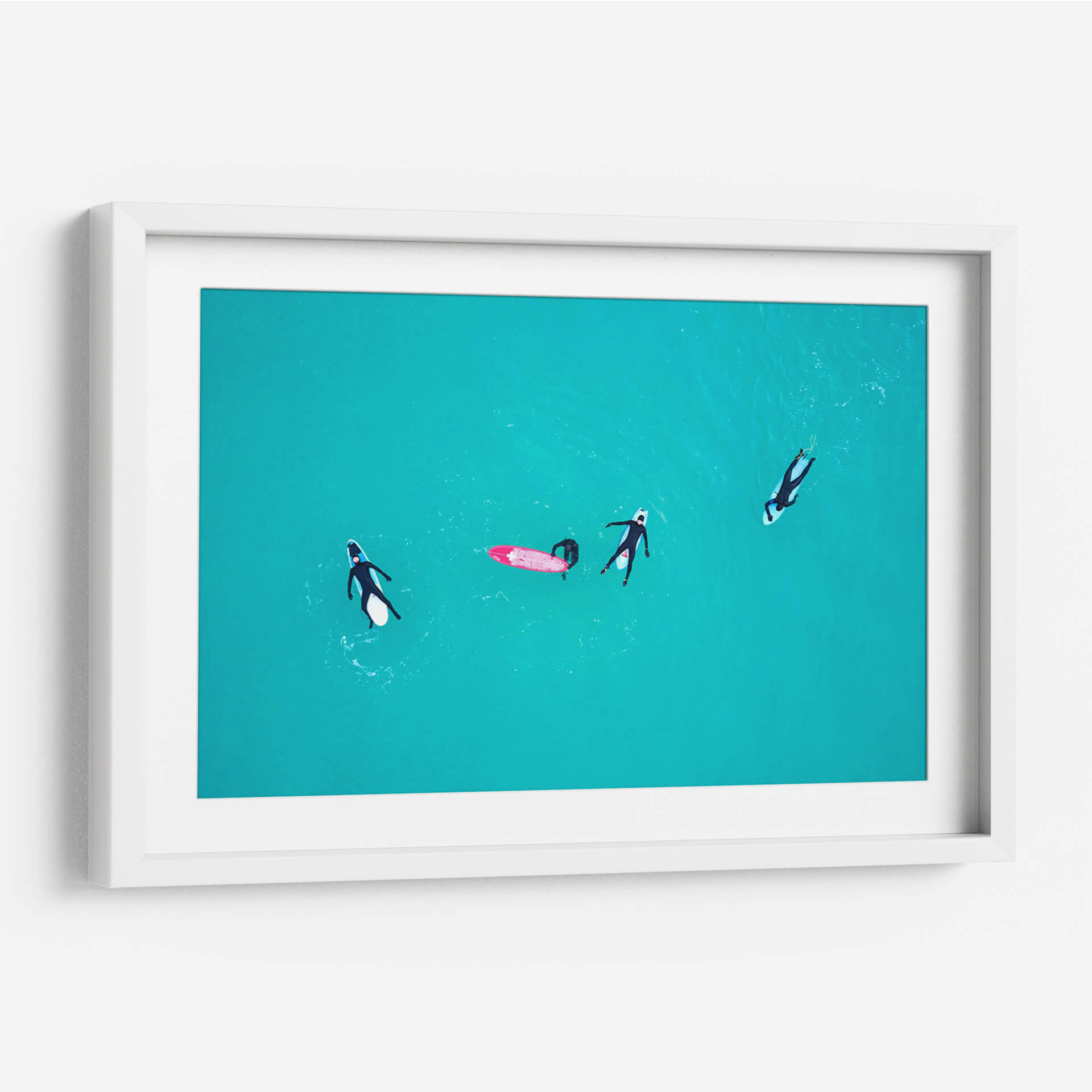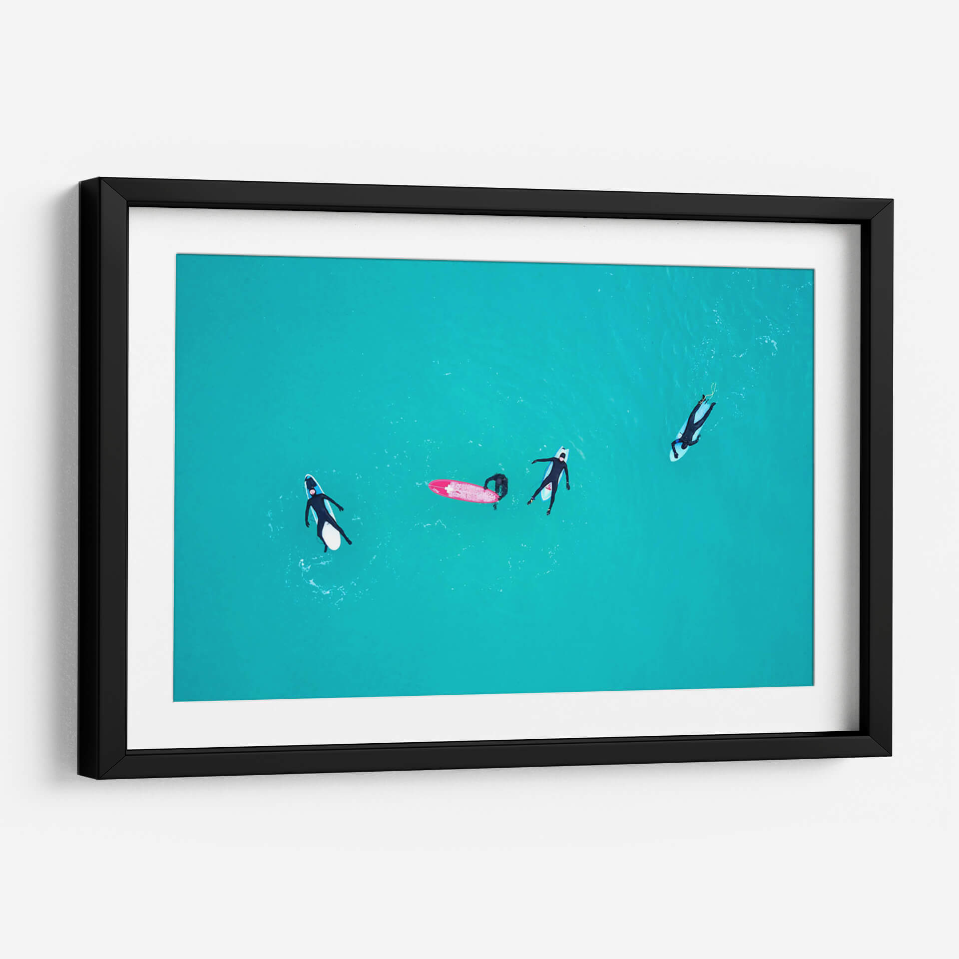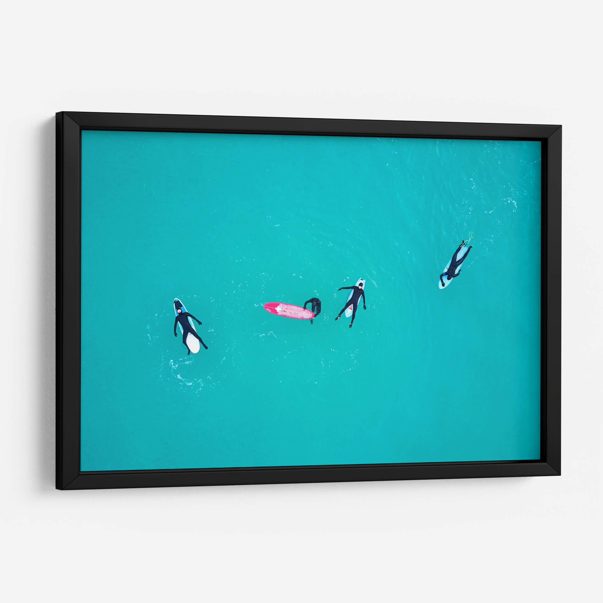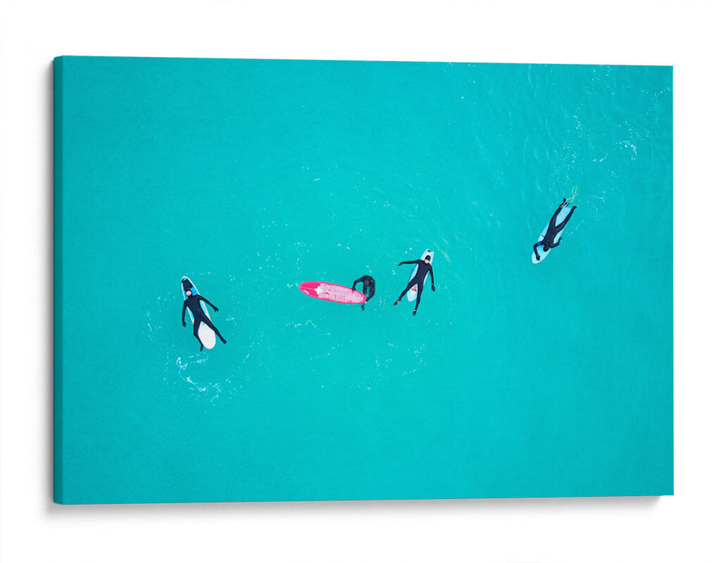 Sumérgete en la serenidad del océano con "Los Cuatro Surfers", una cautivadora obra de arte que captura la esencia de la aventura y la calma marina. Desde una perspectiva aérea, esta pieza muestra a cuatro surfistas flotando sobre un vasto mar de un vibrante color turquesa. La composición minimalista resalta la inmensidad del océano y la conexión íntima entre los deportistas y la naturaleza. Los surfistas, vestidos con trajes de neopreno oscuros, se distinguen claramente contra el agua cristalina, cada uno en su propia embarcación, transmitiendo una sensación de paz y anticipación. La paleta de colores, dominada por el azul y turquesa, evoca tranquilidad, frescura y la libertad del mar abierto. Este lienzo es perfecto para aquellos que buscan añadir un toque de inspiración costera y energía serena a su hogar u oficina. Imagina esta pieza como un punto focal en tu sala de estar, un recordatorio diario de la belleza del mundo natural y la emoción de la exploración. "Los Cuatro Surfers" es más que una imagen; es una invitación a soñar con olas y cielos abiertos, ideal para espacios que buscan una estética moderna y relajante.