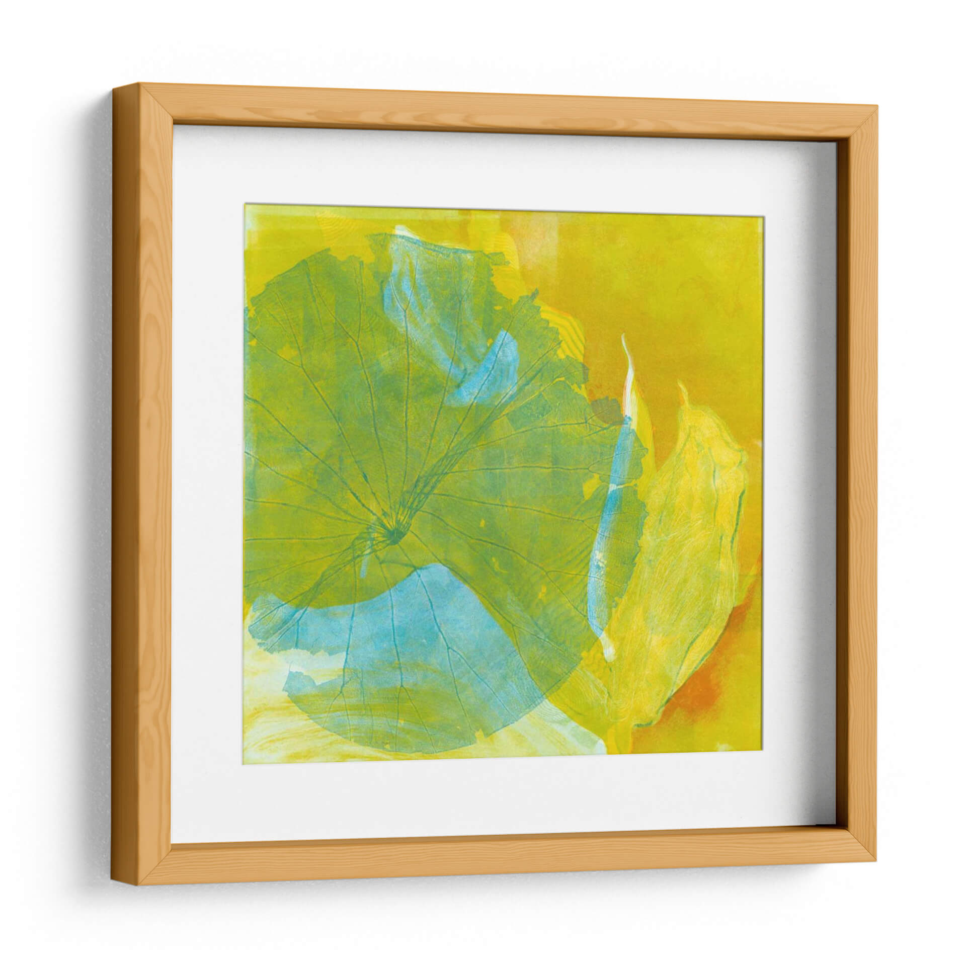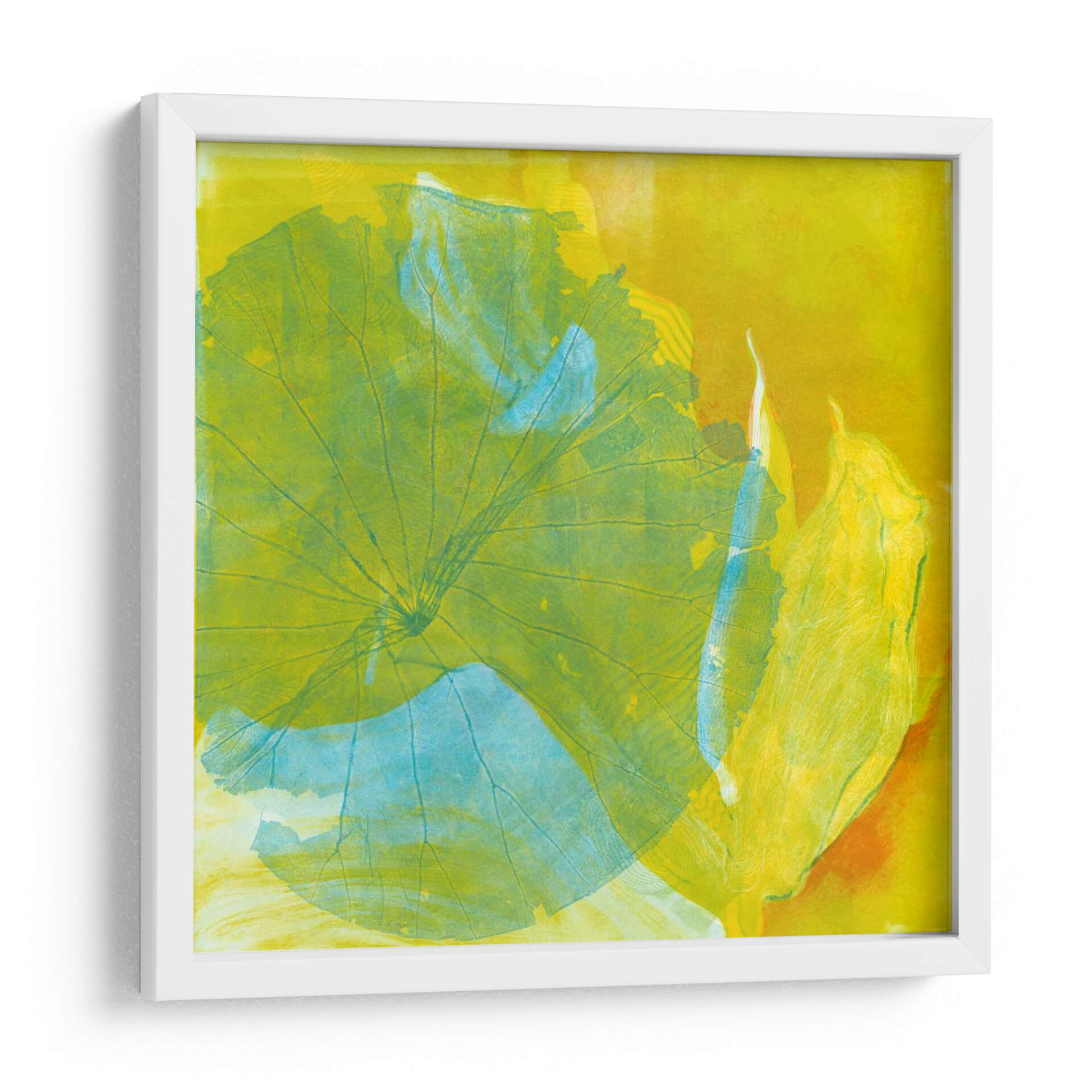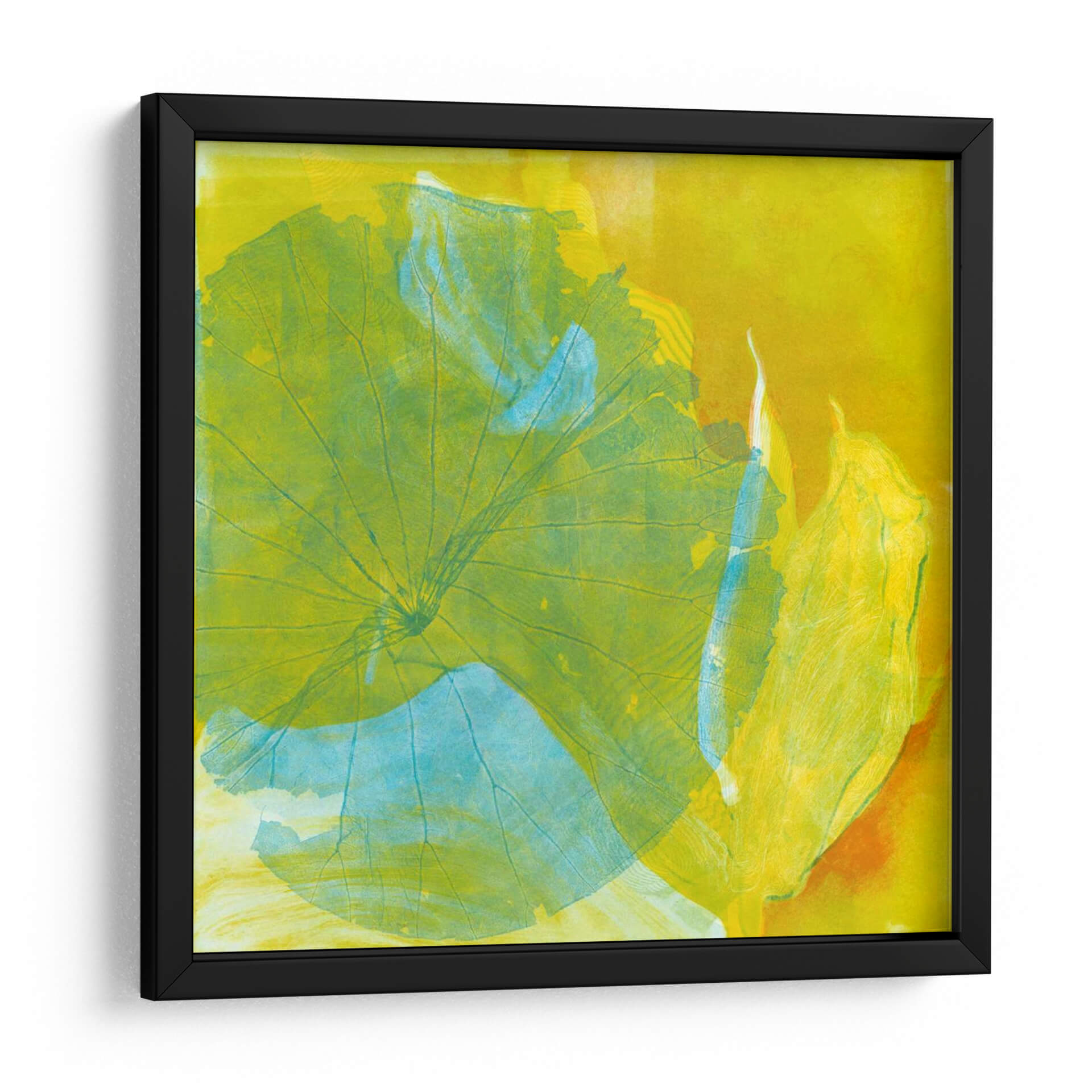 Sumérgete en la vibrante serenidad de "Lotus Monotype I", una obra de arte contemporáneo de Carolyn Roth que captura la esencia etérea de la naturaleza. Este cuadro decorativo despliega una paleta de colores cálidos y energéticos, dominada por intensos amarillos y toques de verde lima y azul aguamarina, creando una atmósfera de vitalidad y calma a la vez. La composición abstracta, inspirada en las delicadas formas de las hojas de loto, se caracteriza por sus texturas superpuestas y sus líneas orgánicas que guían la mirada a través de la pieza. El estilo evoca la técnica del monotipo, otorgando a la obra una cualidad única y artesanal. "Lotus Monotype I" es perfecto para infundir vida y un toque de sofisticación natural en cualquier espacio, ya sea una sala de estar moderna, un dormitorio acogedor o una oficina que busca un acento inspirador. Transforma tu hogar en un oasis de color y tranquilidad con este cautivador cuadro decorativo.