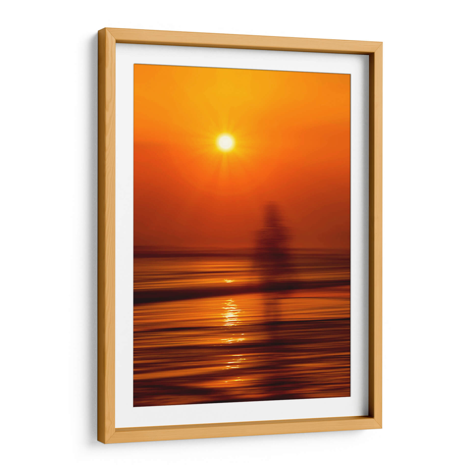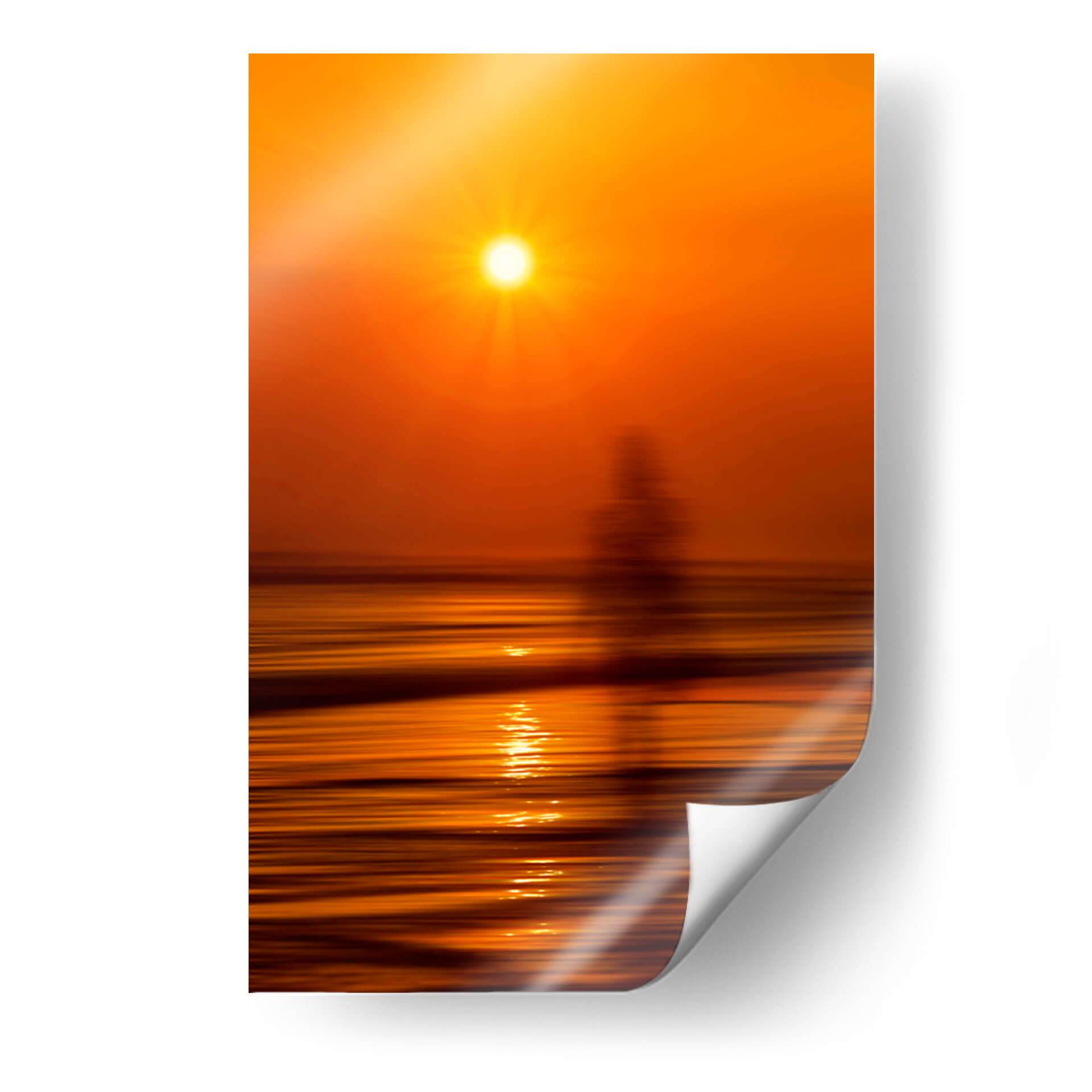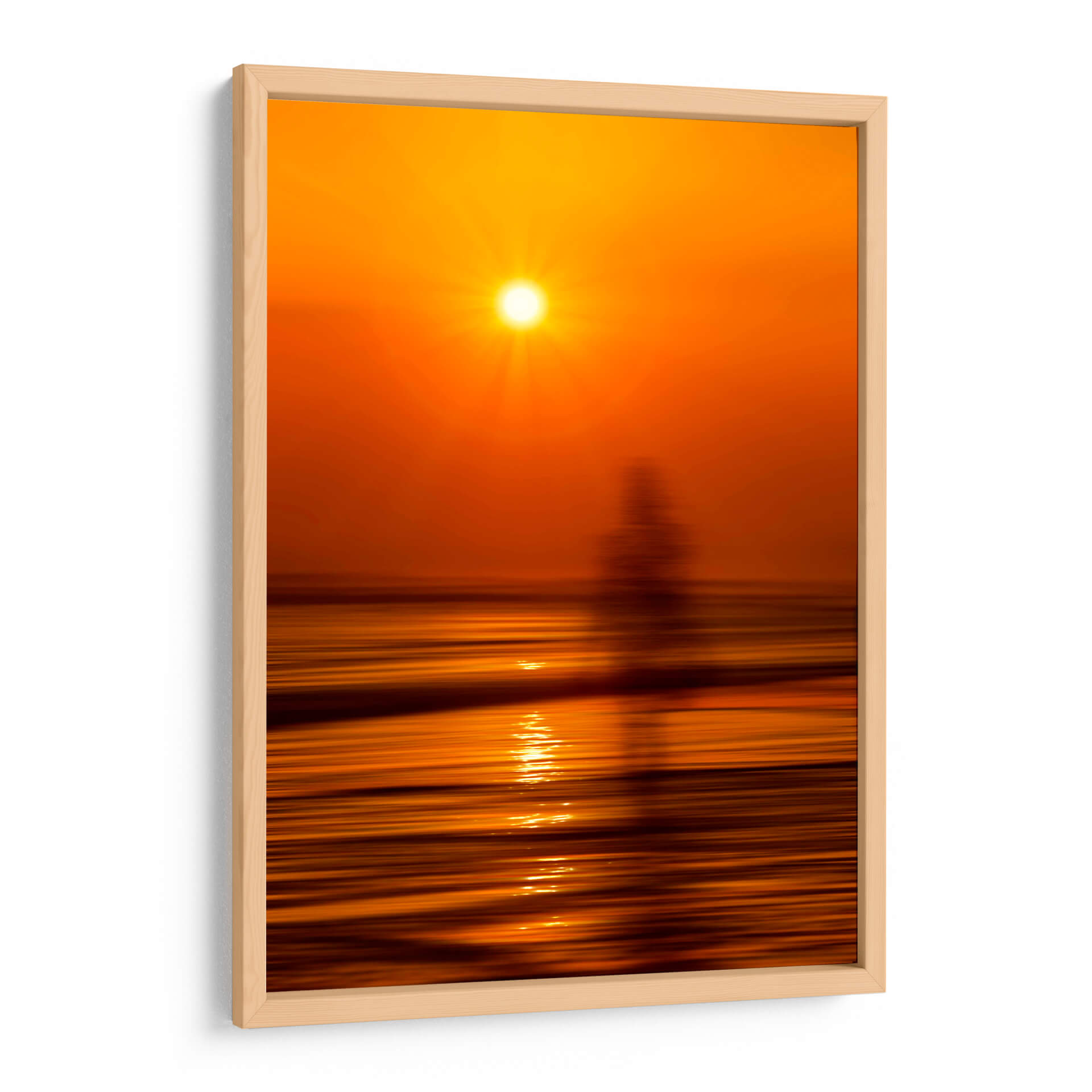 Sumérgete en la atmósfera hipnótica de "Mar de Espejismos", una obra de arte contemporáneo que captura la esencia etérea de un atardecer junto al mar. Los vibrantes tonos anaranjados y dorados se fusionan en un gradiente cálido, dominado por el resplandor del sol que se refleja en las aguas tranquilas. Una figura sombreada, apenas discernible, se adentra en el paisaje, evocando una sensación de introspección y misterio. La técnica pictórica, con sus líneas horizontales fluidas y la suave difuminación, crea una ilusión de movimiento y profundidad, transportando al espectador a un momento de serena contemplación. Este cuadro decorativo es ideal para infundir calidez y un toque de ensoñación a tu salón, dormitorio o cualquier espacio que busque transmitir paz y una conexión profunda con la naturaleza. Su estilo abstracto y su paleta de colores cálidos lo convierten en una pieza versátil, capaz de complementar tanto decoraciones modernas como rústicas, añadiendo un punto focal cautivador que invita a la reflexión. Deja que "Mar de Espejismos" sea tu ventana a un mundo de serenidad y belleza efímera.