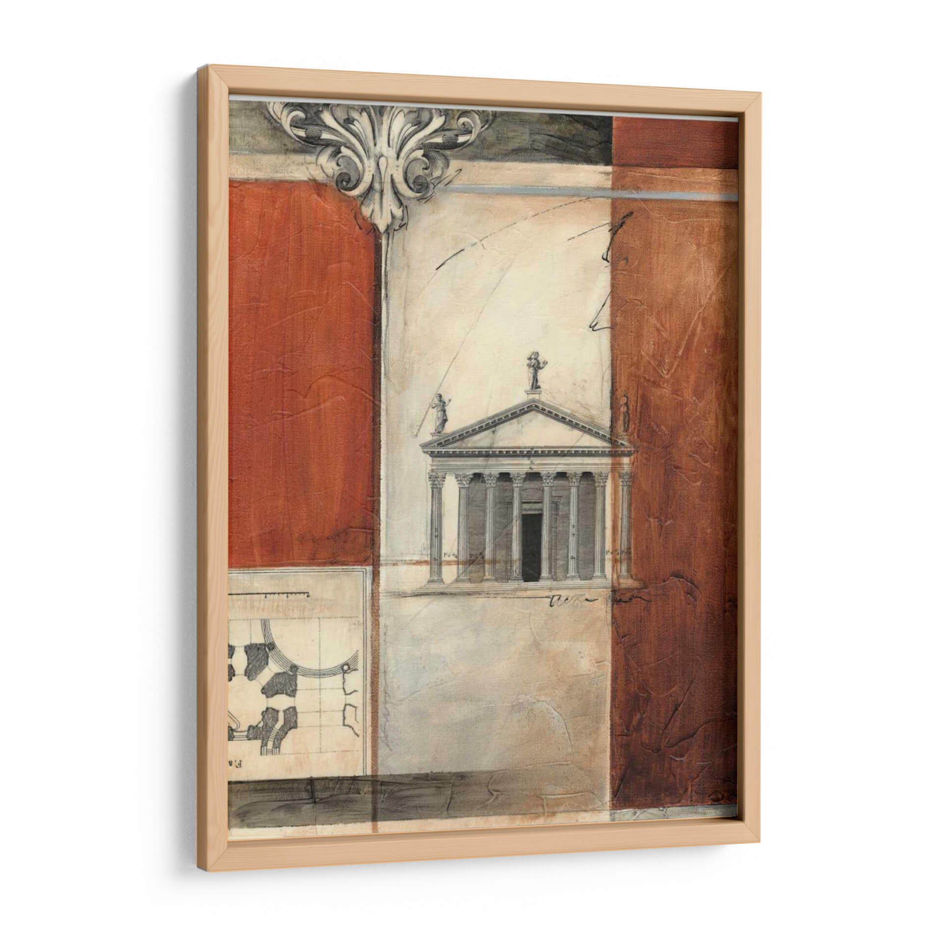 Sumérgete en la elegancia atemporal de "Medida Arquitectónicas I", una obra de arte que fusiona la arquitectura clásica con una sensibilidad contemporánea. Este cuadro decorativo presenta una detallada representación de un templo griego, con sus imponentes columnas dóricas y estatuillas que evocan un sentido de historia y grandeza. La paleta de colores, dominada por tonos tierra como el terracota y el beige, se complementa con sutiles grises y blancos, creando una atmósfera sofisticada y serena. Las texturas ricas y el uso de bocetos arquitectónicos como elemento compositivo añaden profundidad y un toque intelectual a la pieza. Ideal para espacios que buscan un carácter distintivo y una conexión con el arte clásico, este cuadro es perfecto para salones, estudios o despachos que deseen transmitir refinamiento y cultura. "Medida Arquitectónicas I" no es solo una decoración, sino una ventana a la historia y la belleza del diseño arquitectónico, diseñada para inspirar y enriquecer cualquier ambiente.
