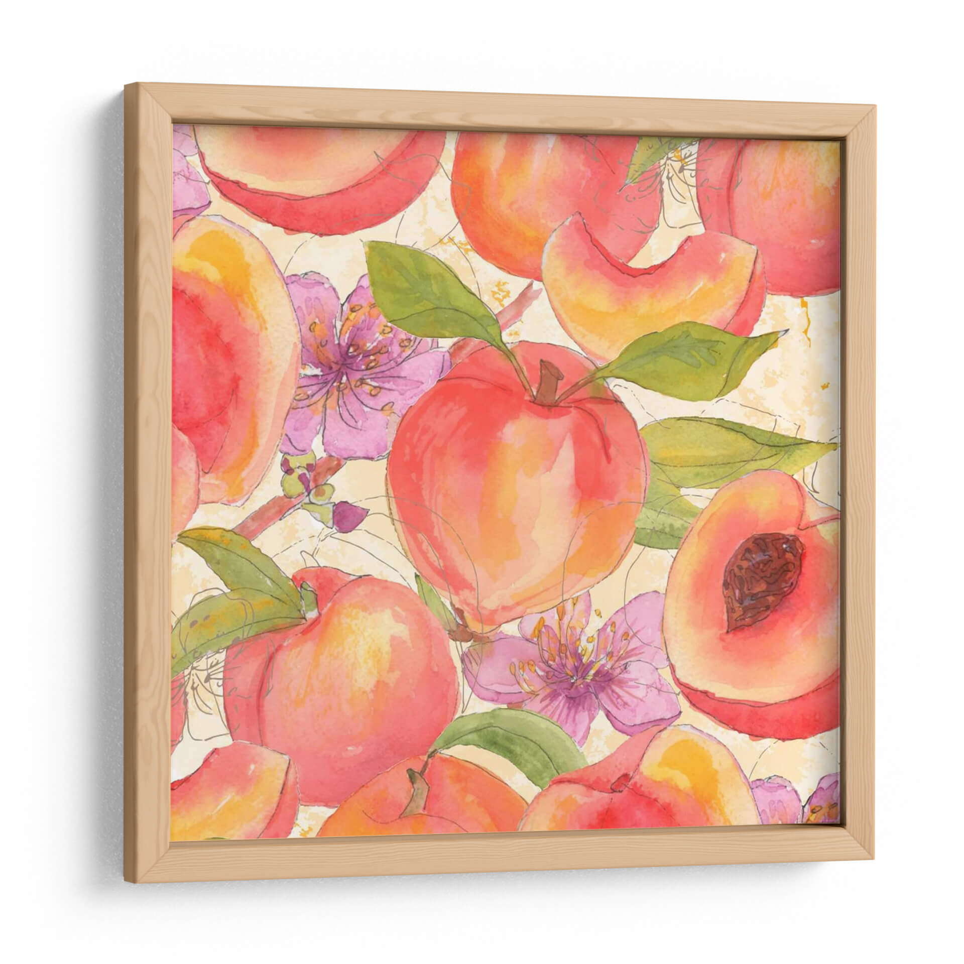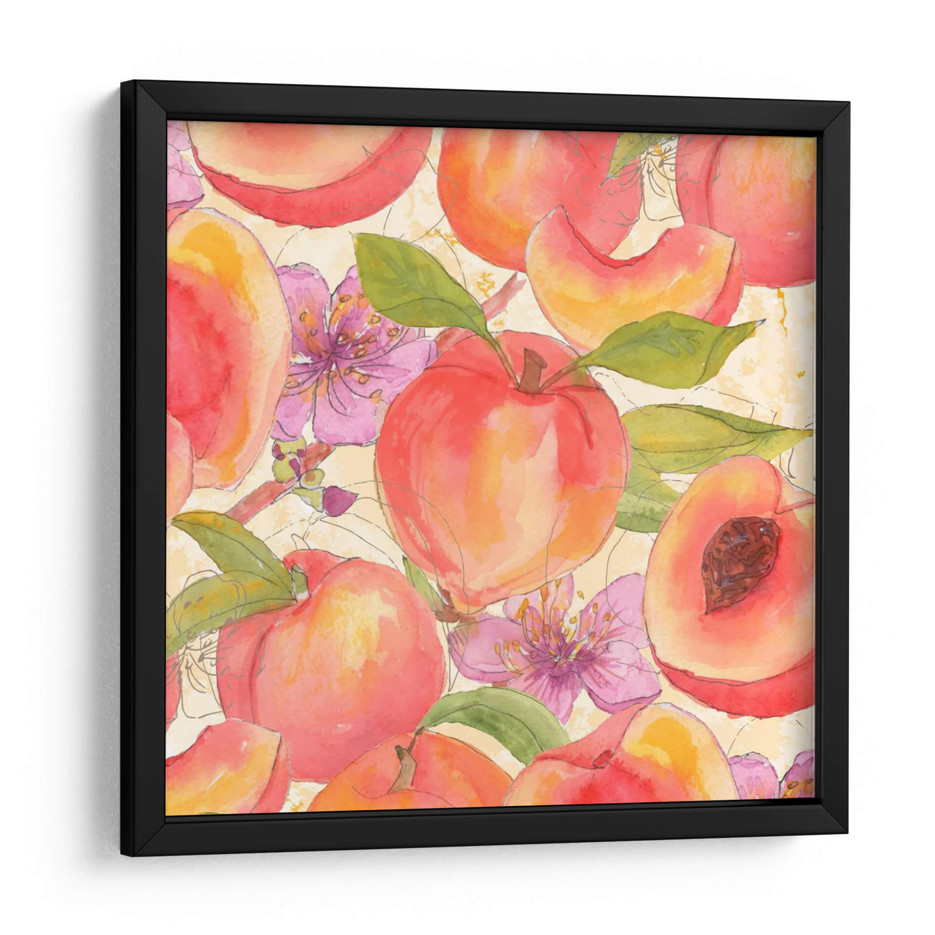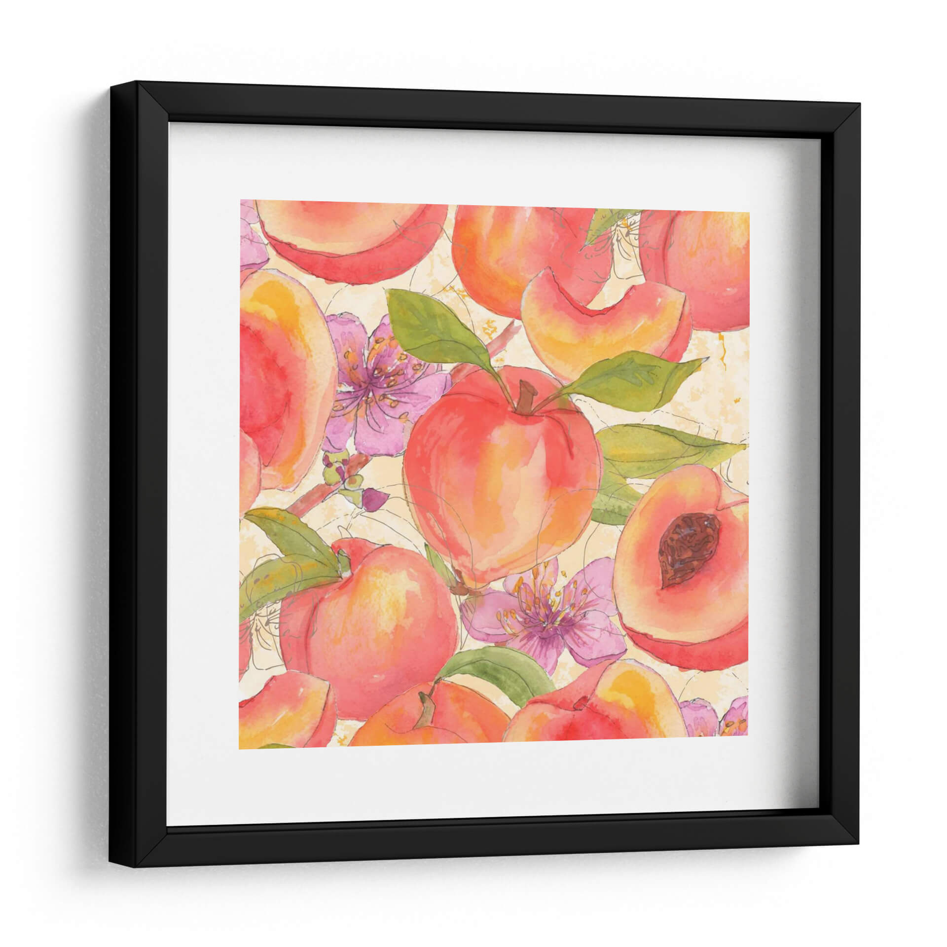 Adéntrate en un jardín de frescura y color con "Melocotón Mexy I", una obra de arte vibrante del artista Leslie Mark. Esta pieza evoca la dulzura y la vitalidad del verano a través de una representación delicada de melocotones jugosos y flores rosadas, capturadas con la técnica de acuarela que aporta ligereza y transparencia. La paleta de colores cálidos, dominada por naranjas, rojos y rosados, se complementa con toques de verde en las hojas y el fondo texturizado en tonos crema, creando una atmósfera alegre y acogedora. Las líneas suaves y el estilo semi-abstracto invitan a la contemplación, fusionando la realidad con una interpretación artística y poética. Ideal para iluminar cocinas, comedores o cualquier espacio que busque un toque de frescura natural y un aire de primavera perpetua. "Melocotón Mexy I" no es solo una decoración de pared, sino una invitación a disfrutar de la belleza simple y deliciosa de la naturaleza, transformando tu hogar en un oasis de serenidad y estilo. Añade esta pieza a tu colección y deja que su encanto frutal llene de vida tus ambientes, inspirando momentos de alegría y conexión con la naturaleza.