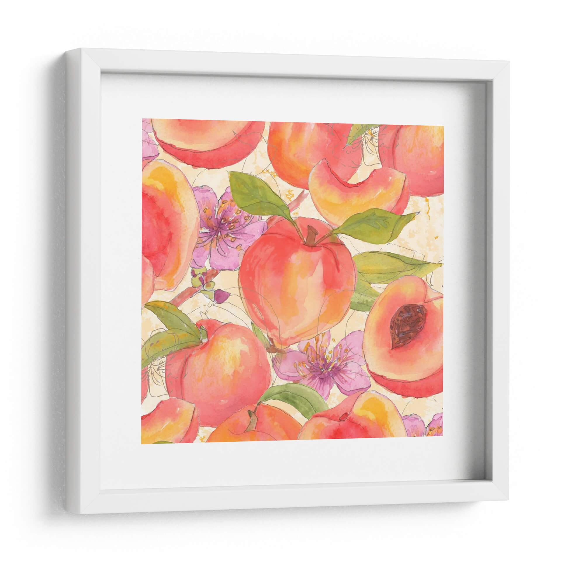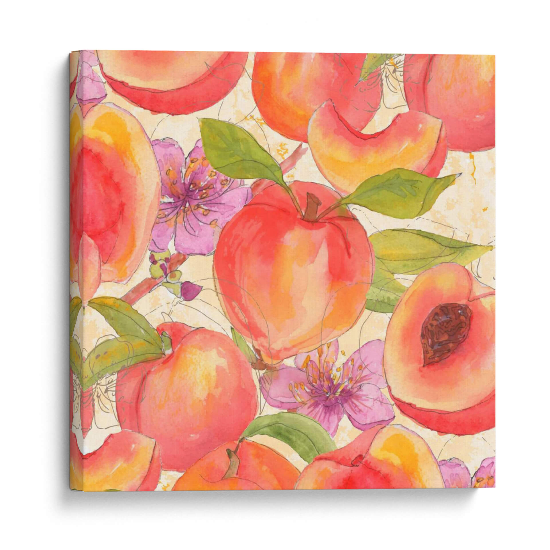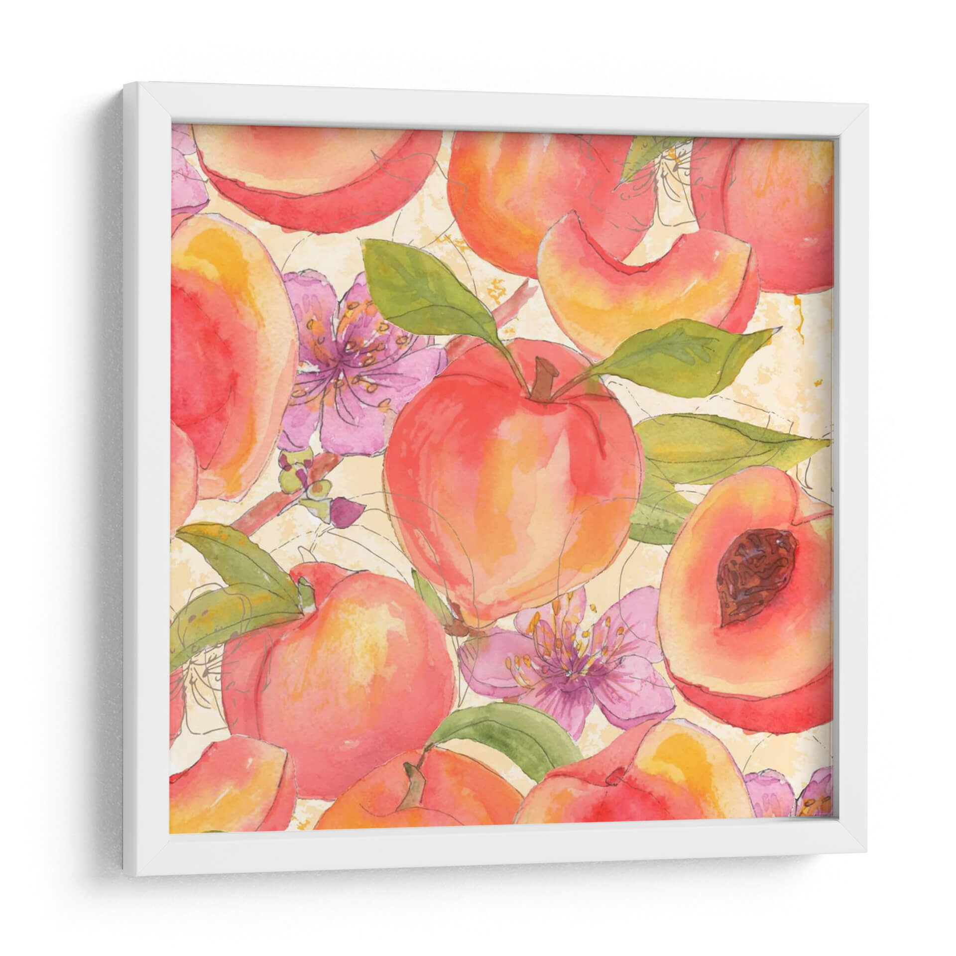 Adéntrate en un jardín de frescura y color con "Melocotón Mexy I", una obra de arte vibrante del artista Leslie Mark. Esta pieza evoca la dulzura y la vitalidad del verano a través de una representación delicada de melocotones jugosos y flores rosadas, capturadas con la técnica de acuarela que aporta ligereza y transparencia. La paleta de colores cálidos, dominada por naranjas, rojos y rosados, se complementa con toques de verde en las hojas y el fondo texturizado en tonos crema, creando una atmósfera alegre y acogedora. Las líneas suaves y el estilo semi-abstracto invitan a la contemplación, fusionando la realidad con una interpretación artística y poética. Ideal para iluminar cocinas, comedores o cualquier espacio que busque un toque de frescura natural y un aire de primavera perpetua. "Melocotón Mexy I" no es solo una decoración de pared, sino una invitación a disfrutar de la belleza simple y deliciosa de la naturaleza, transformando tu hogar en un oasis de serenidad y estilo. Añade esta pieza a tu colección y deja que su encanto frutal llene de vida tus ambientes, inspirando momentos de alegría y conexión con la naturaleza.
