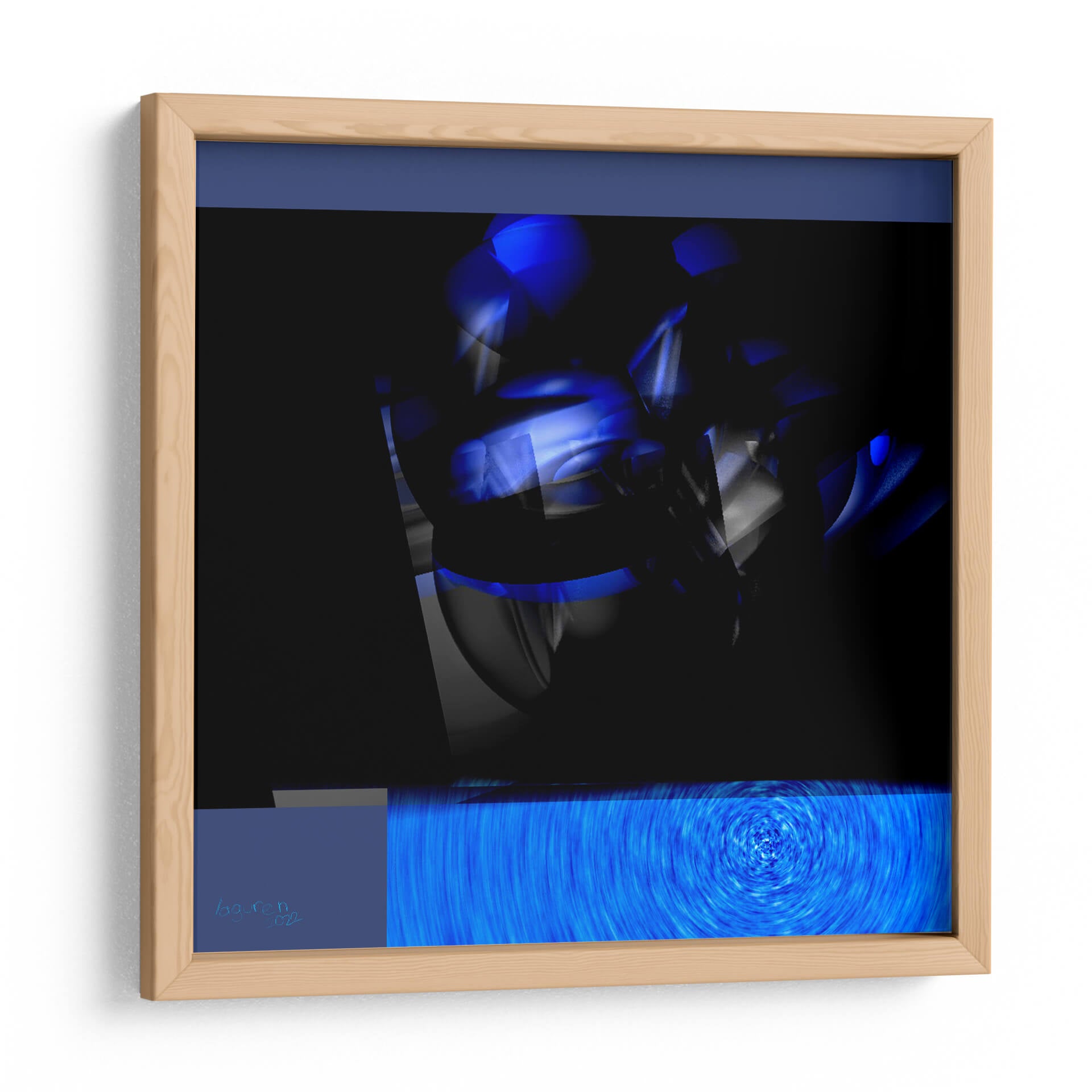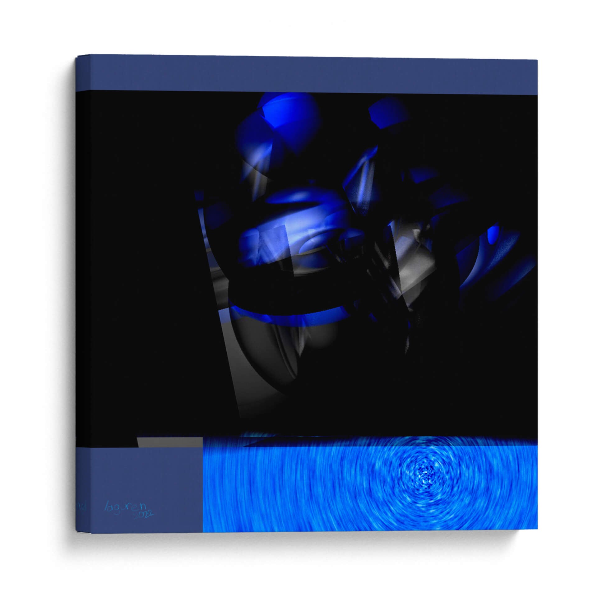 Sumérgete en la dinámica y cautivadora obra "movimiento # 14" del artista LAGUREN, una pieza que redefine la abstracción contemporánea. Este cuadro decorativo irradia una energía vibrante a través de su audaz uso del color azul eléctrico, contrastando con profundos negros y sutiles grises. Las formas geométricas fragmentadas y las luces translúcidas crean una sensación de profundidad y misterio, invitando a la contemplación. La composición, que fusiona elementos nítidos con texturas etéreas, sugiere un flujo constante y una transformación continua, como si capturara un instante fugaz de un proceso dinámico. La parte inferior de la obra presenta un vórtice hipnótico de líneas azules, que evoca movimiento y profundidad, añadiendo una capa adicional de intriga visual. "movimiento # 14" es ideal para espacios que buscan un toque de modernidad y sofisticación, ya sea en una sala de estar, un estudio o una oficina. Su impacto visual lo convierte en un punto focal excepcional, capaz de inspirar conversaciones y añadir personalidad a cualquier ambiente.