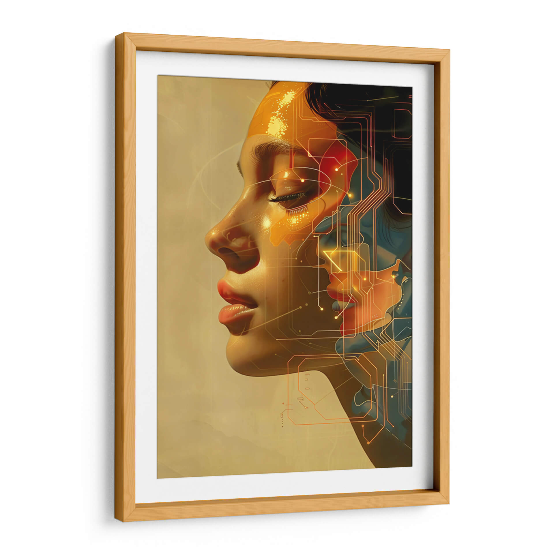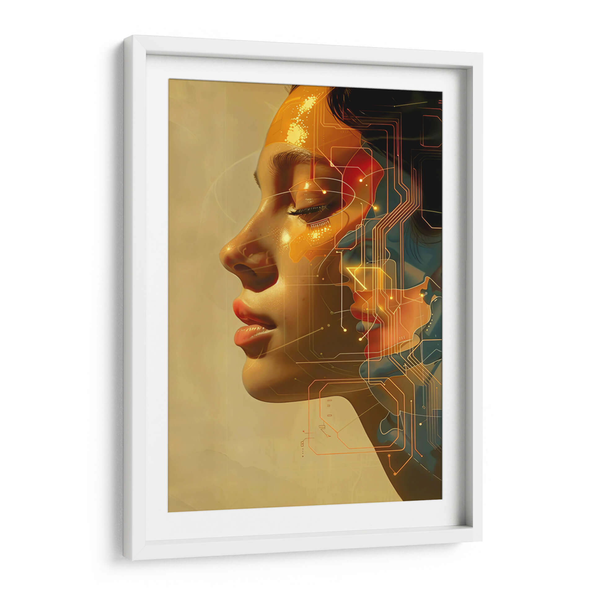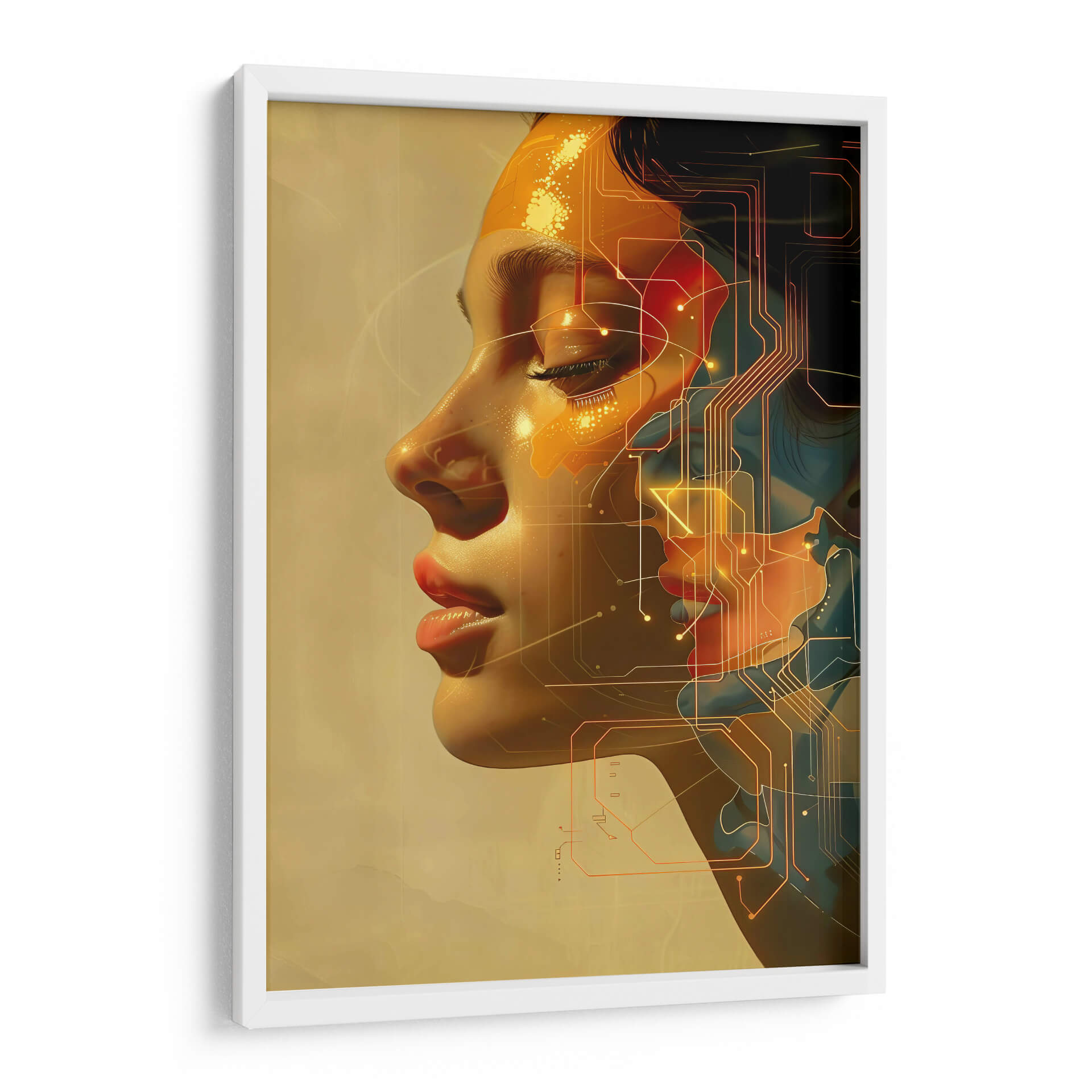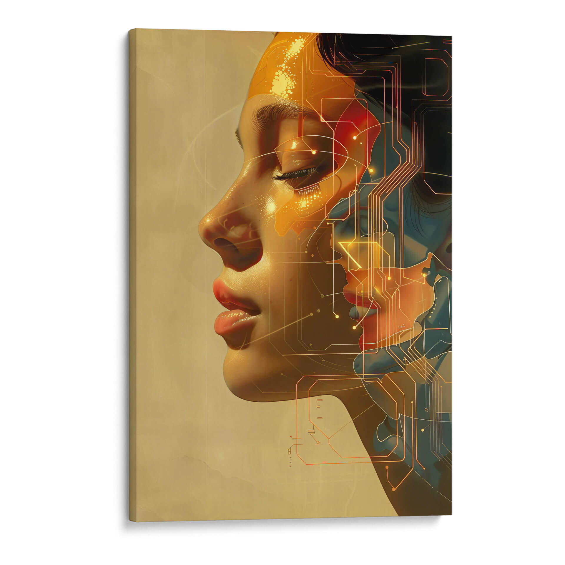 Sumérgete en la fascinante intersección de la humanidad y la tecnología con este cautivador cuadro decorativo "Mujer y tecnología" de Paltik Arte Digital. La obra presenta un perfil femenino sereno, cuyos rasgos delicados contrastan sutilmente con intrincados circuitos digitales que se entrelazan en su mente, evocando una profunda reflexión sobre la conexión entre el ser humano y el mundo digital en el que vivimos. La paleta de colores, dominada por tonos cálidos dorados y ocres, junto con sutiles toques de azul y rojo en los circuitos, crea una atmósfera envolvente y futurista. El estilo de arte digital fusiona el realismo de la figura humana con elementos abstractos y geométricos de la tecnología, resultando en una composición única y visualmente impactante. Este cuadro decorativo es perfecto para añadir un toque de arte contemporáneo y conceptual a tu sala de estar, estudio u oficina. Su temática invita a la contemplación sobre la evolución, la inteligencia artificial y la identidad en la era moderna, convirtiéndose en un punto focal que genera conversación y admiración. "Mujer y tecnología" no es solo una pieza de decoración, sino una ventana a la simbiosis entre lo orgánico y lo artificial, ideal para quienes buscan arte que desafíe y inspire.